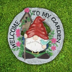 Cheap 😍 Hot Sale 😉 Exhart Welcome To My Garden Gnome Hand Painted Resin Stepping Stone, 10 Inch 🛒 😀