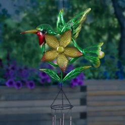 Wholesale ✨ Best deal 🤩 Exhart Solar Metal Bird Spinning Pinwheel Wind Chime, 16 By 41 Inches ✔️ ⭐