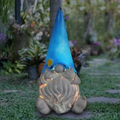 Cheapest 🔔 Wholesale 🛒 Exhart Solar Colorful Hat Grey Garden Gnome Statuary, 10 Inch Blue ✨ 👏