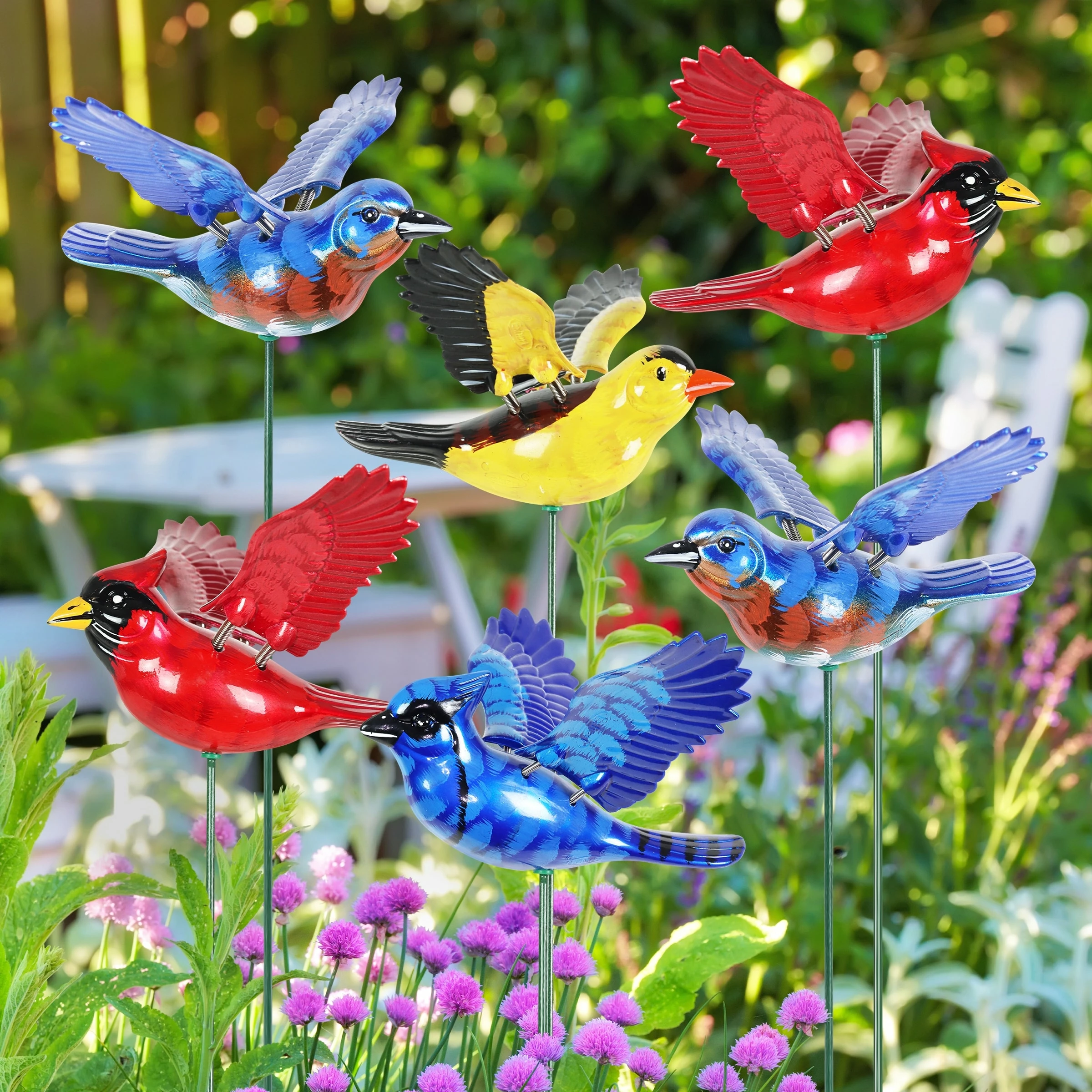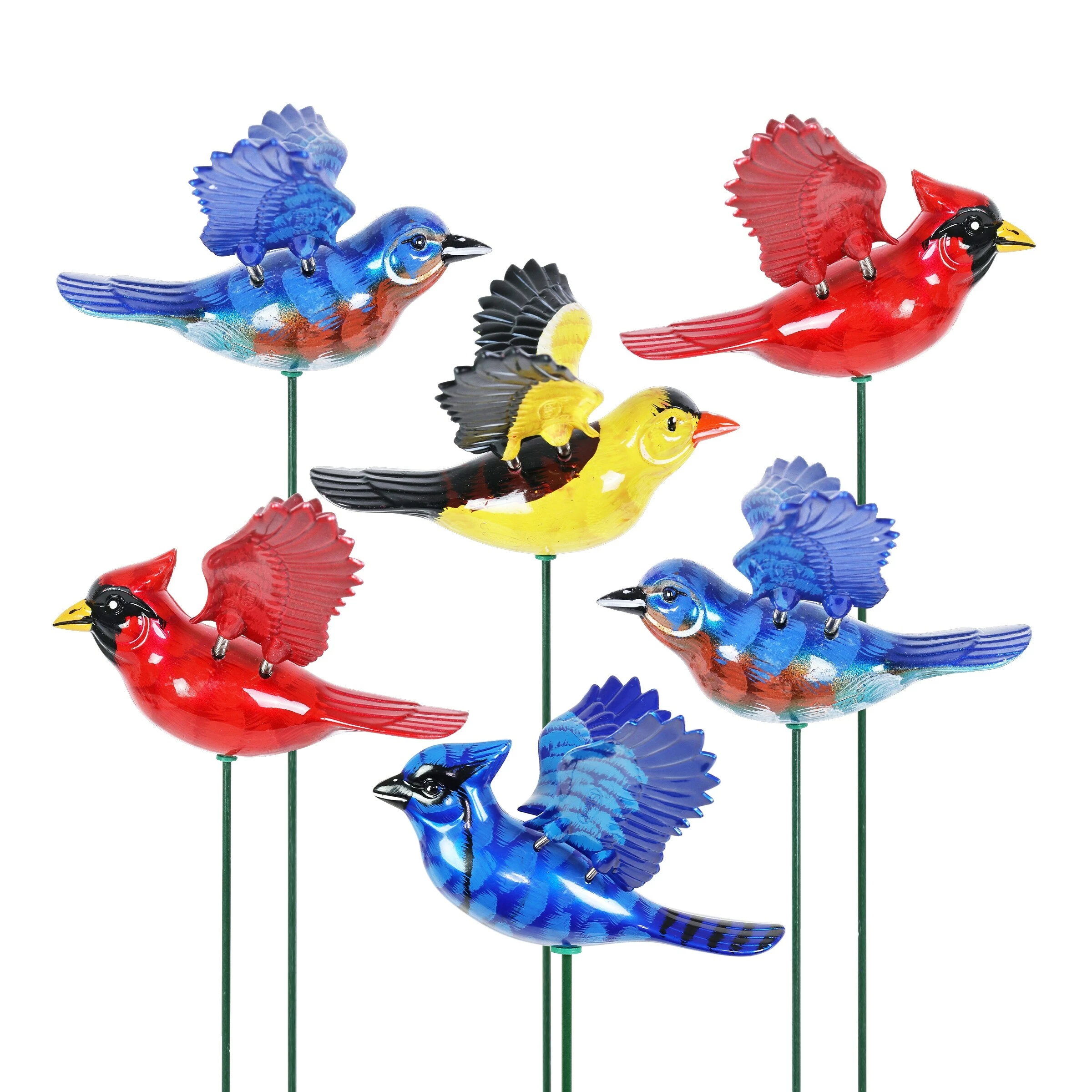 - Beautifully hand painted songbird garden stakes add color and life to your garden