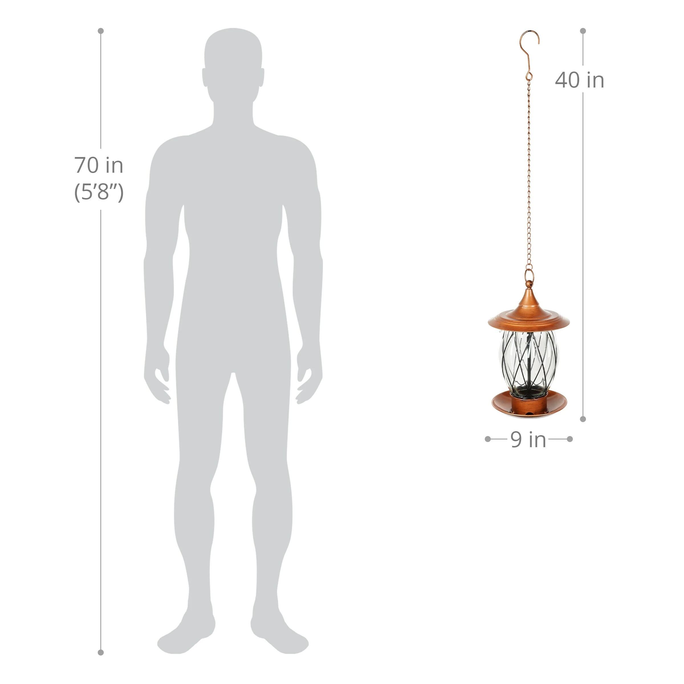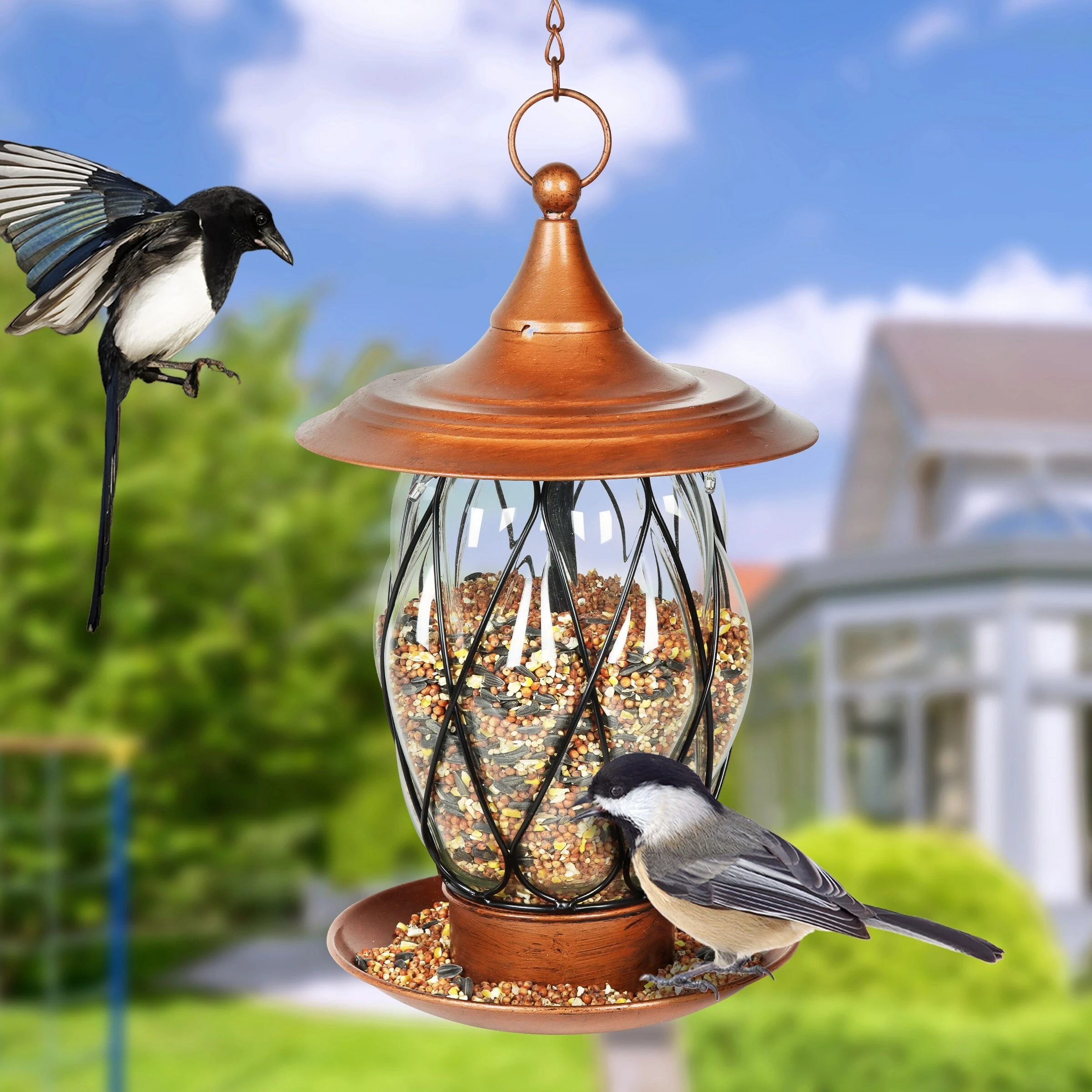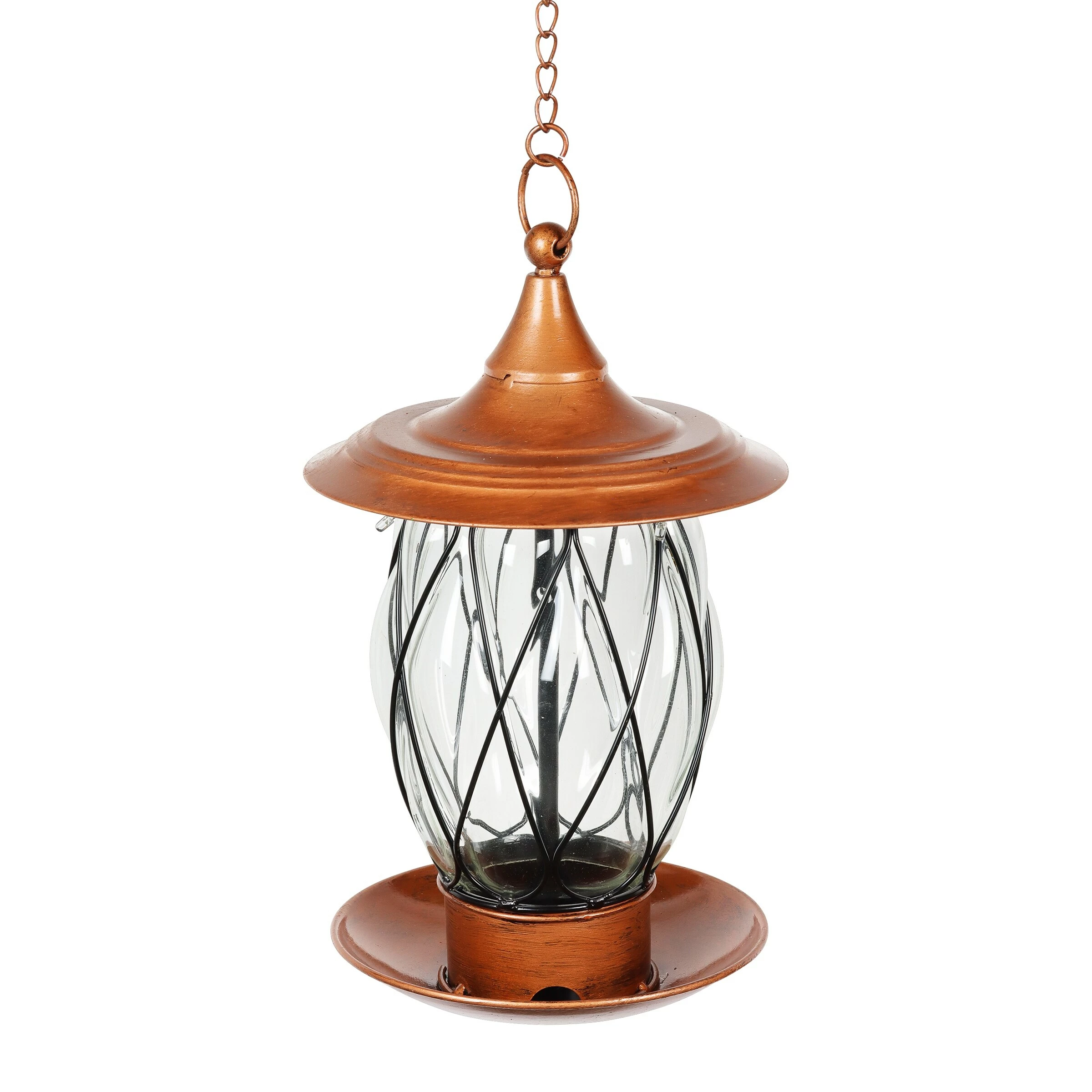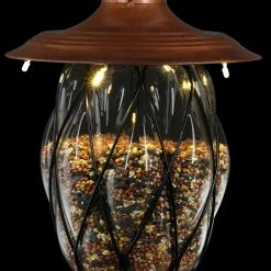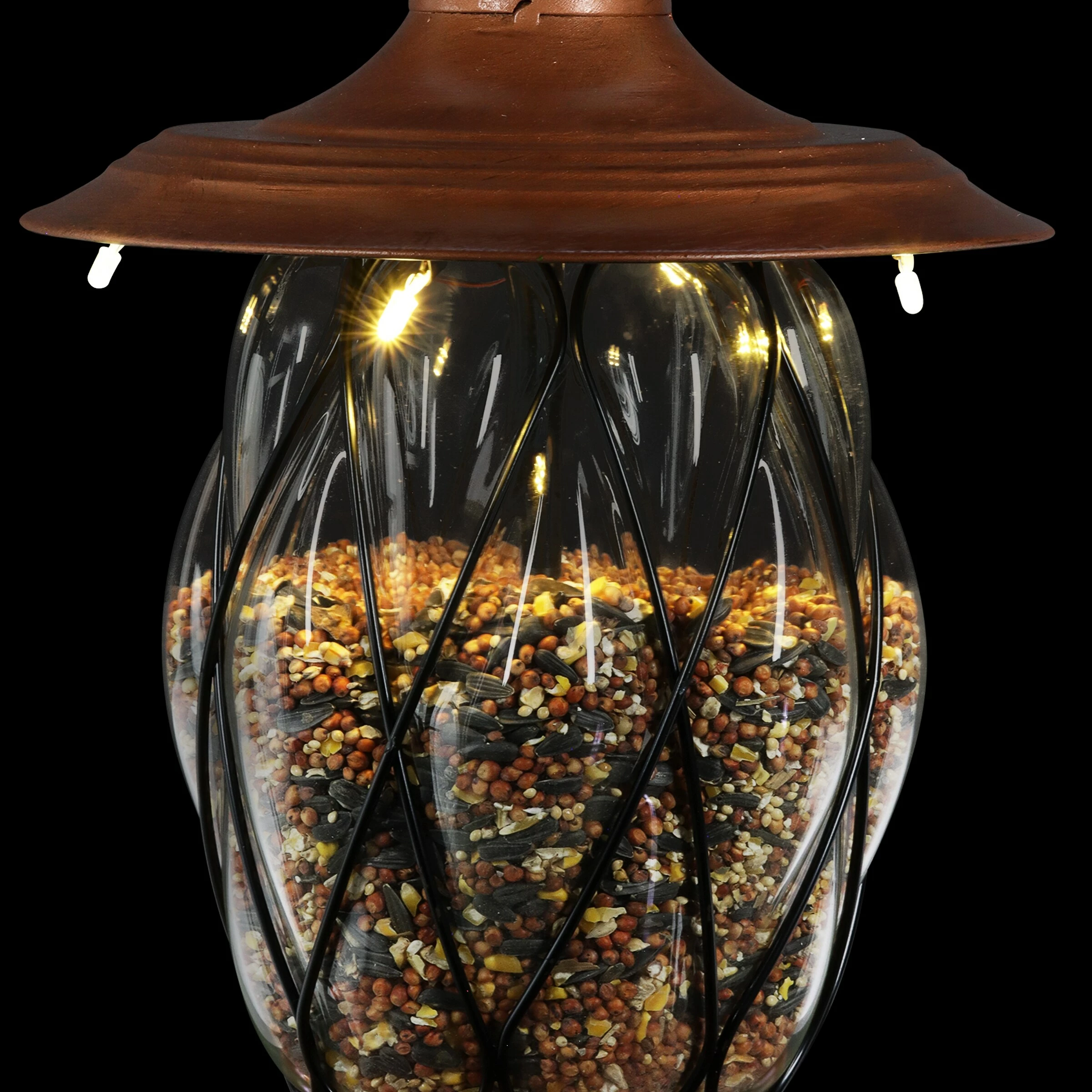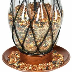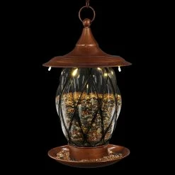 This beautiful Solar Bronze Metal and Glass Bird Feeder illuminates with solar powered LED light, welcoming winged creatures day and night. Birds will love the easy access to seeds at the bottom. You’ll enjoy the touch of elegance this piece art brings to your home. Comes ready to hang and enjoy. The caged glass design makes it easy to notice when it’s time for a refill. Makes a wonderful gift for the bird watcher or nature enthusiast in your life.