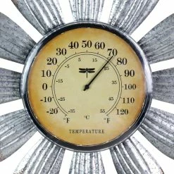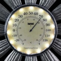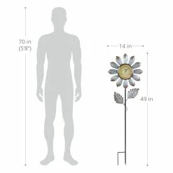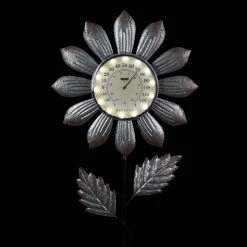 Beauty meets function with this stunning Galvanized Metal Flower Thermometer Garden Stake! The beautiful face at the center illuminates with 14 solar powered LED lights so you can read the temperature day or night! This functional thermometer features an easy to read face in both Celsius and Fahrenheit. Makes a beautiful and practical addition to your home!
