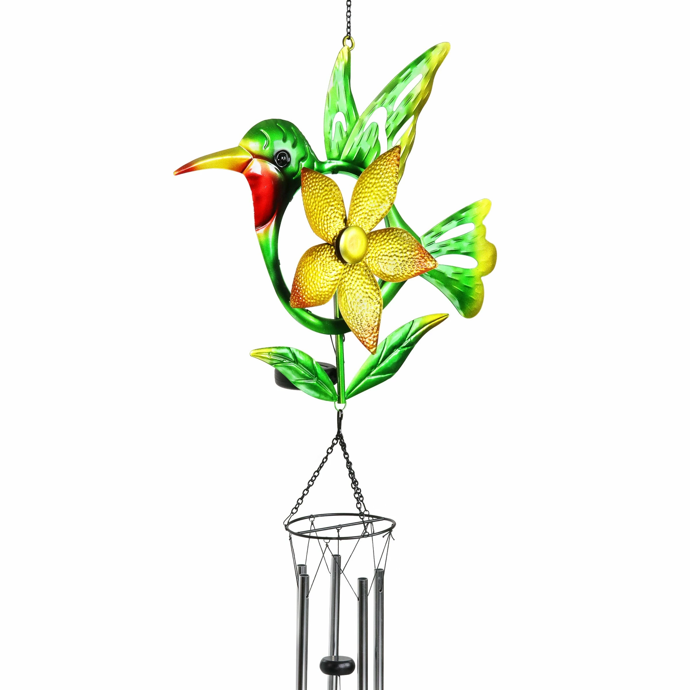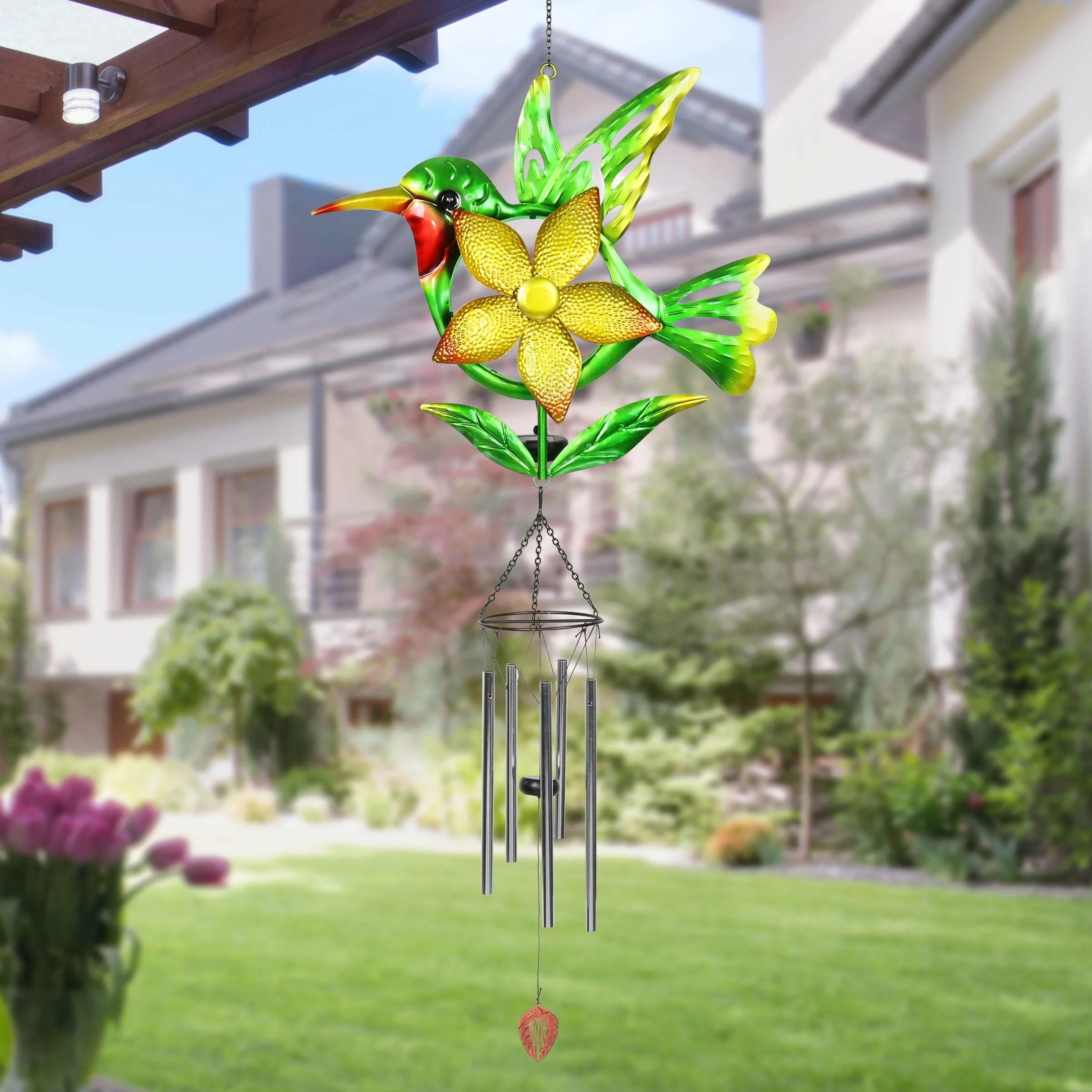 - Beautifully hand painted kinetic hummingbird wind chime adds music and charm to your garden