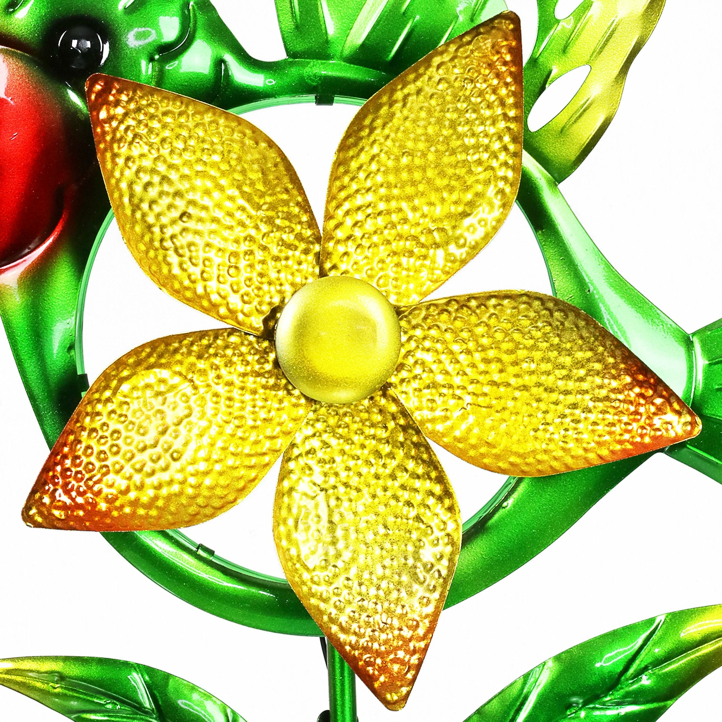 - Solar LED light automatically illuminates every evening from the center of the adorable hummingbird