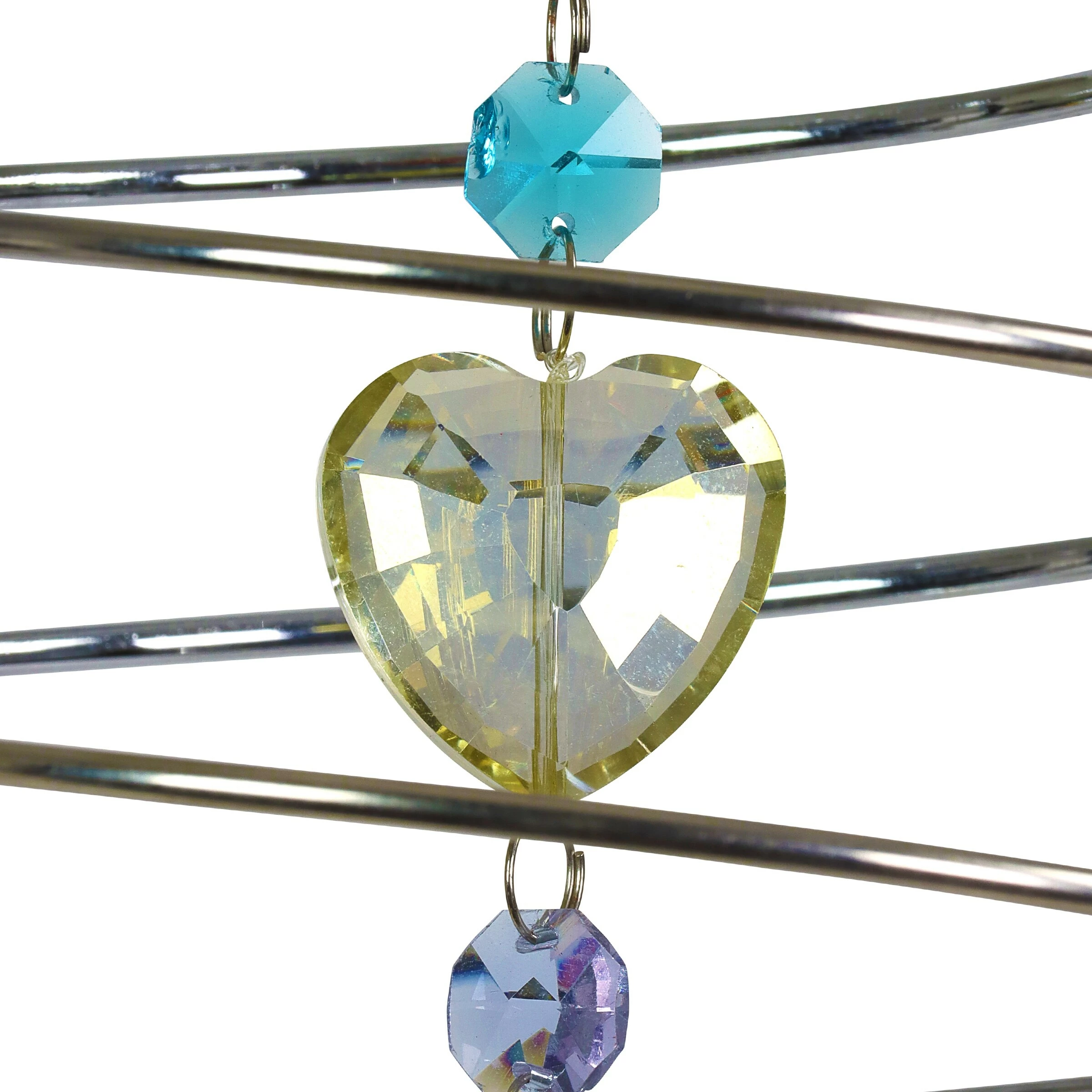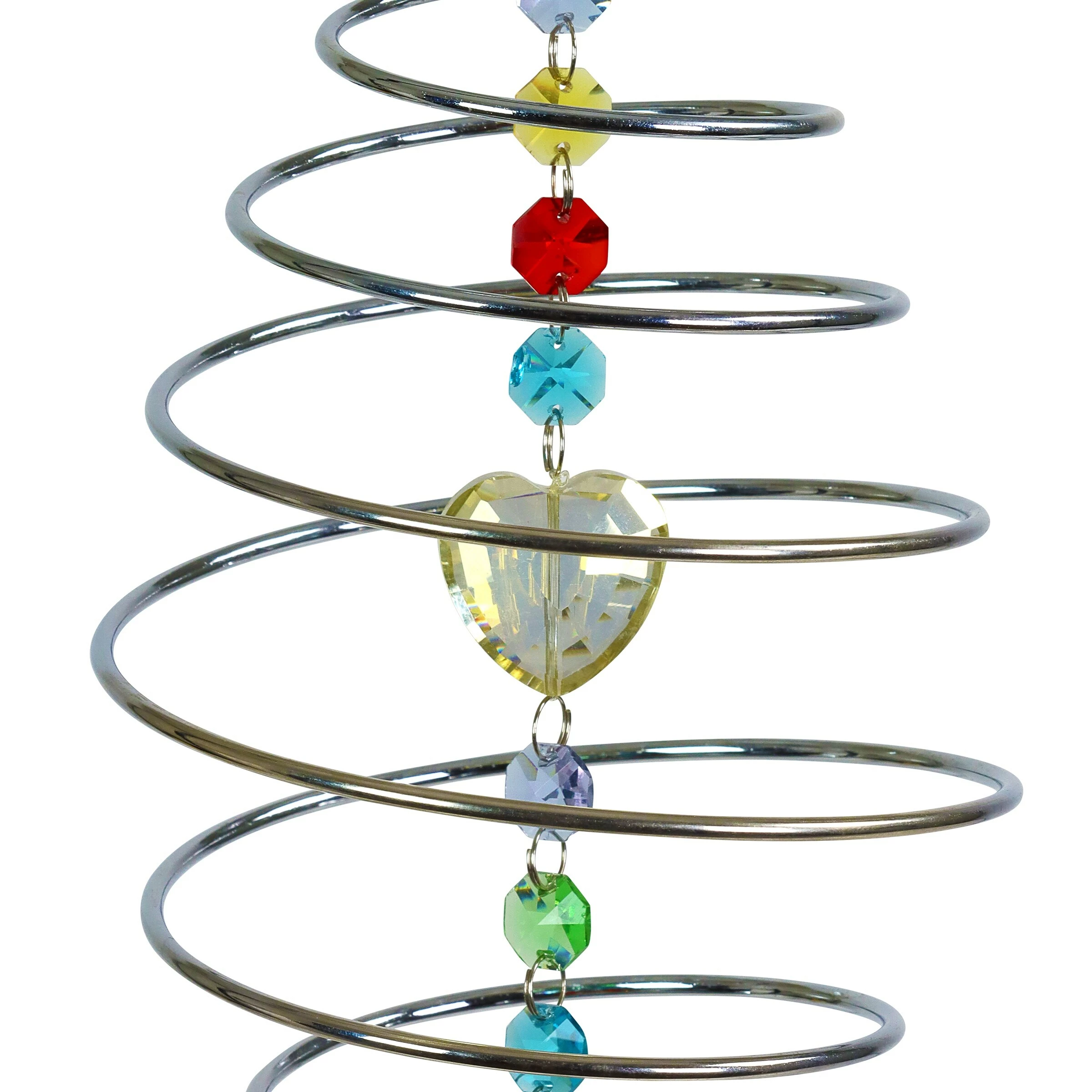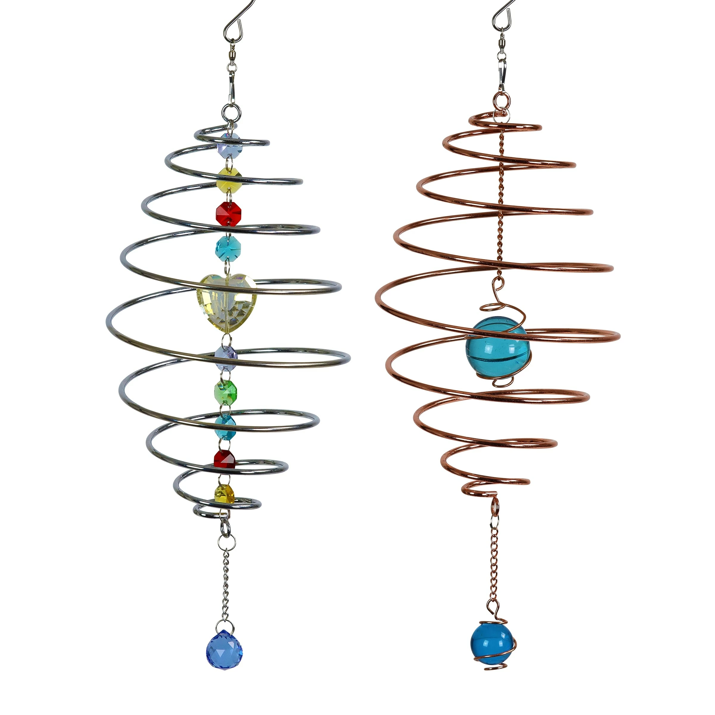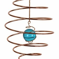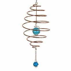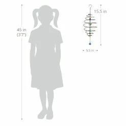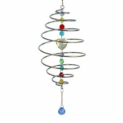 Hang a beautiful spiral spinner in your garden and watch the gentle breeze breathe motion and elegance into this piece of art. The 3D kinetic design brings a sense of wonder and illusion as begins to spin around the colorful glass beads at the center. The dangling bead anchors the spinner and adds an extra touch of elegance at the bottom. In both copper and silver, these spinners make a wonderful addition to your patio, yard or garden and an impressive gift for the garden enthusiast!