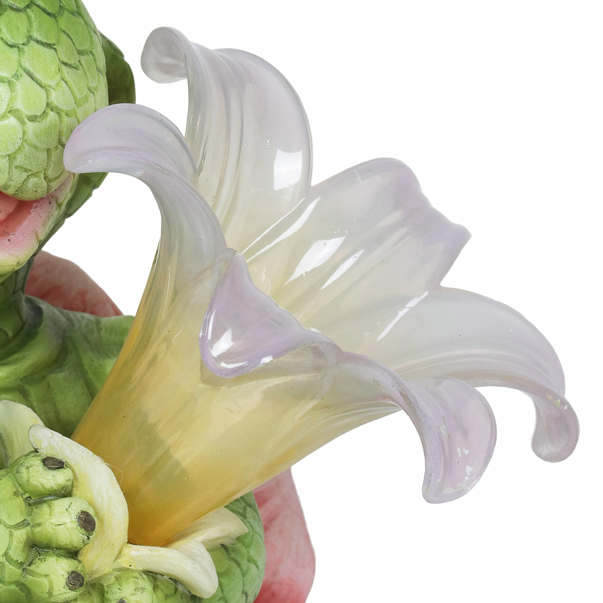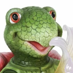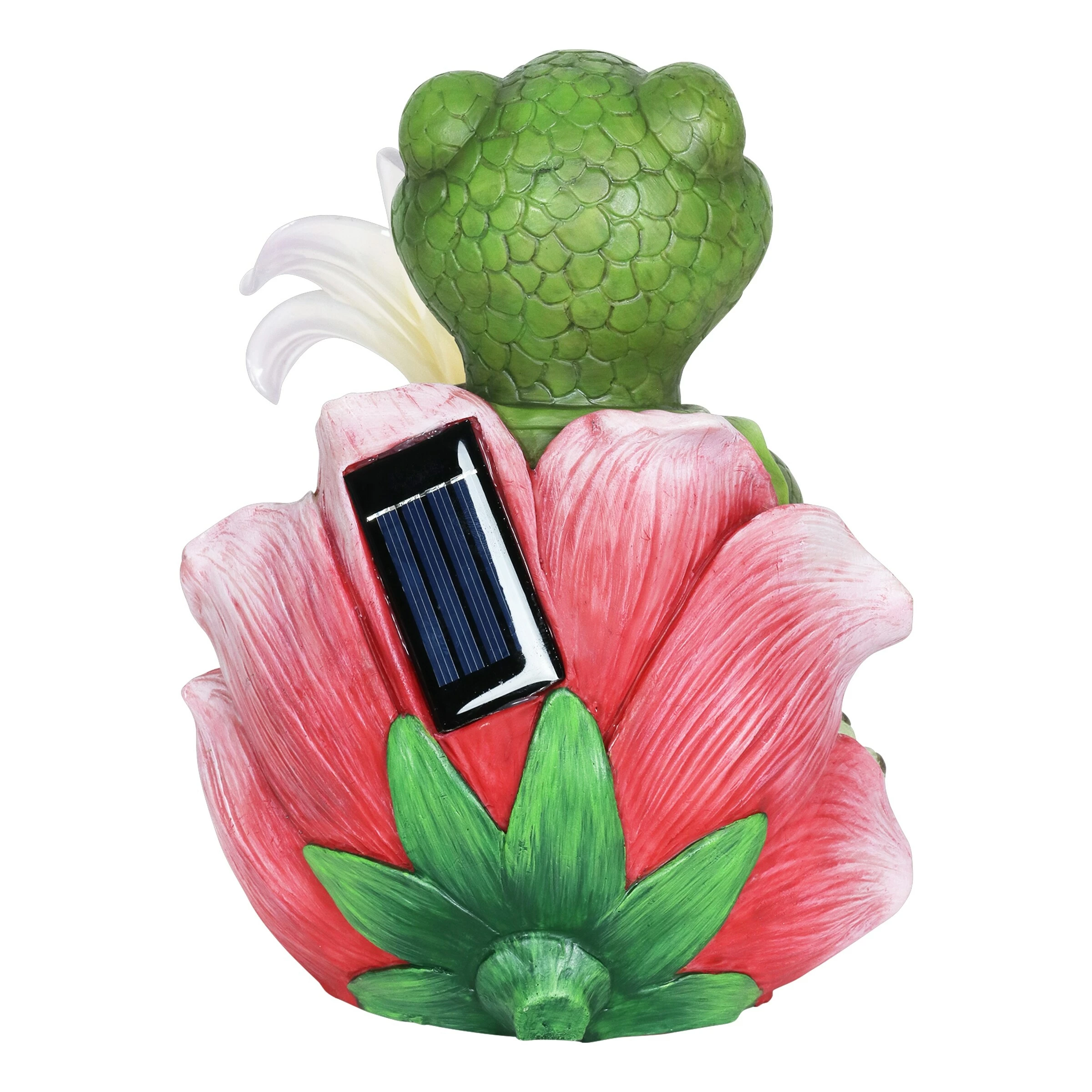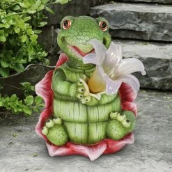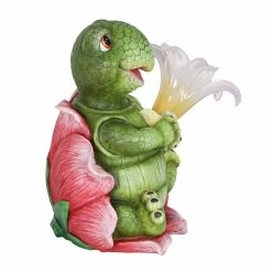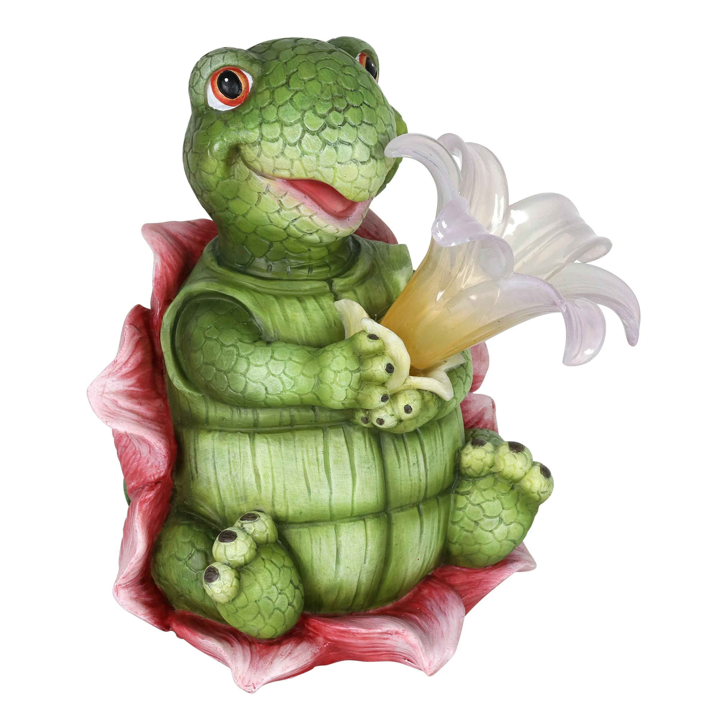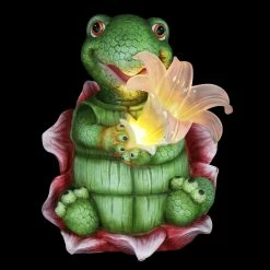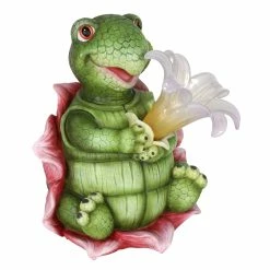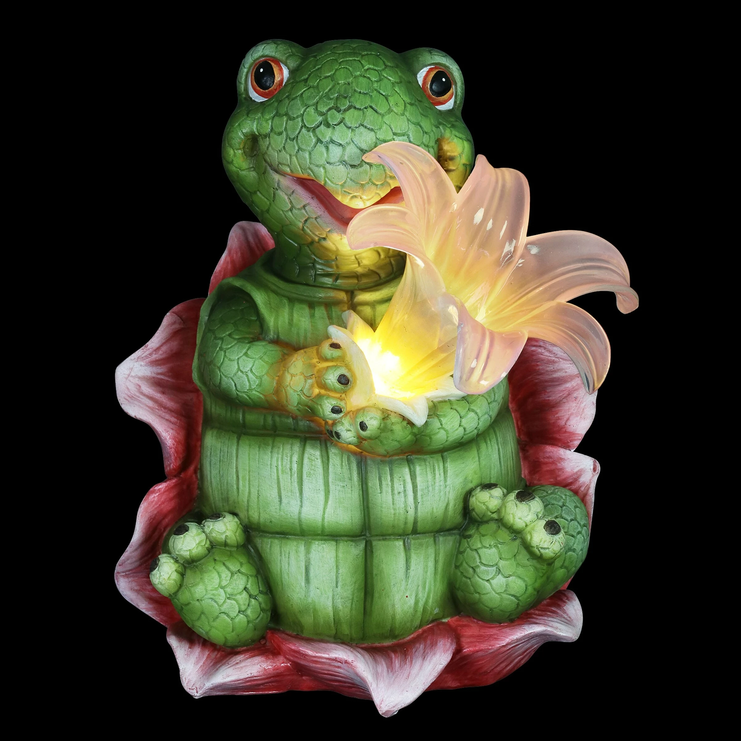 This adorable hand painted Solar Turtle Statue is carrying a LED lily flower! As the sun sets and dusk settles in, the lily will illuminate with solar LED light. Sure to warm your heart, this beautifully hand painted garden statue makes a great gift for any animal lover or garden enthusiast!
