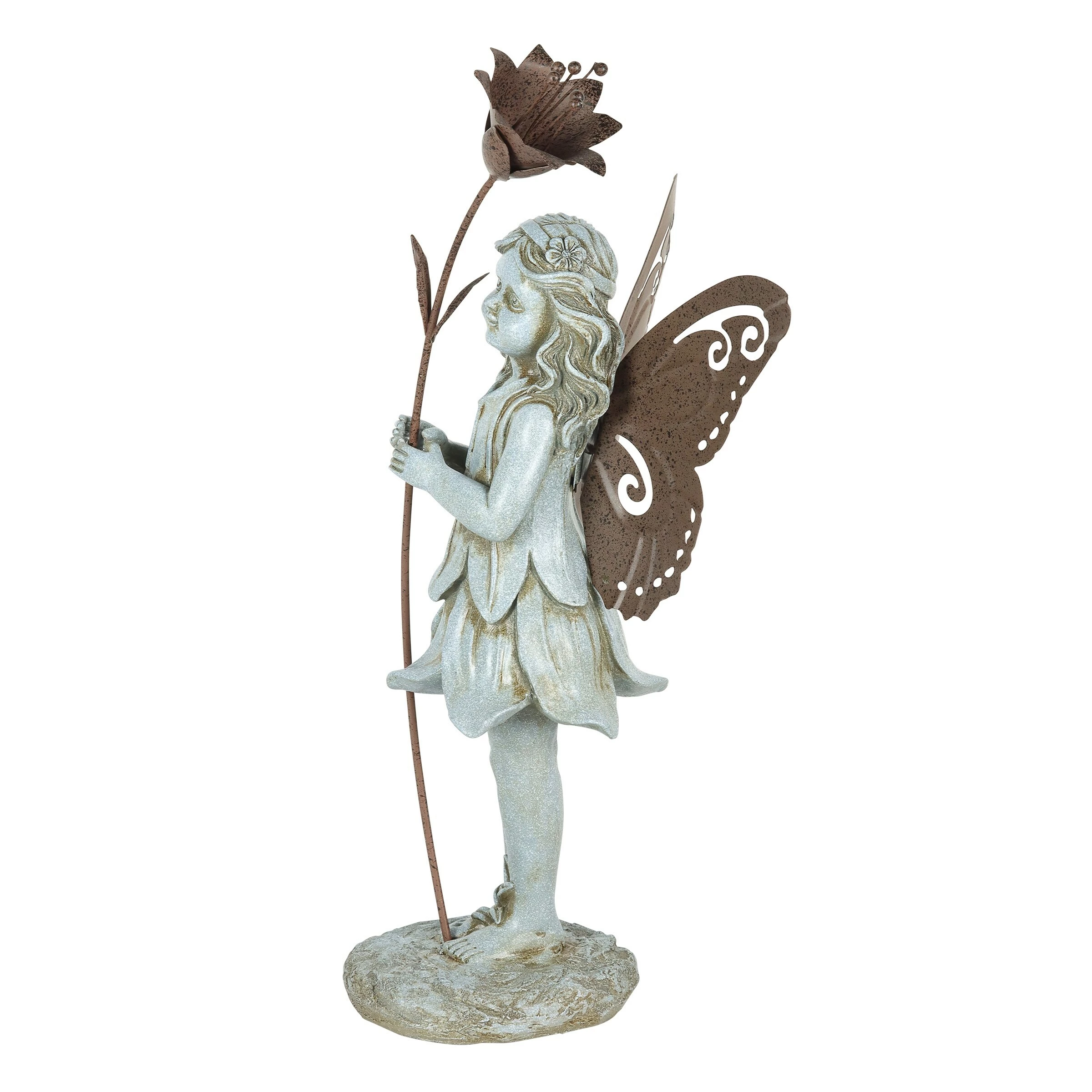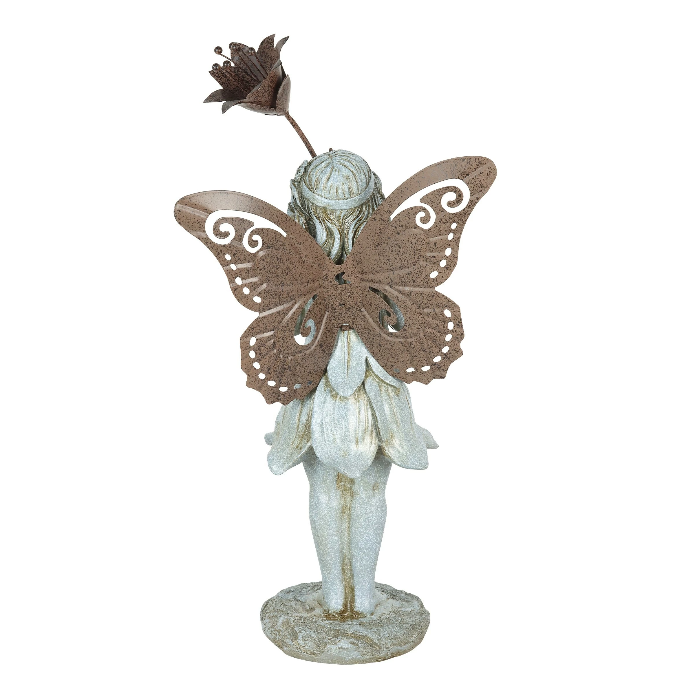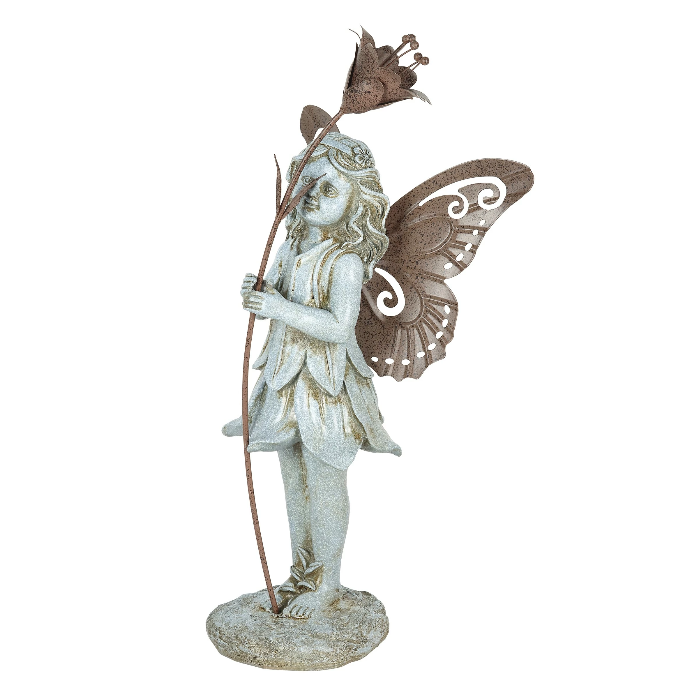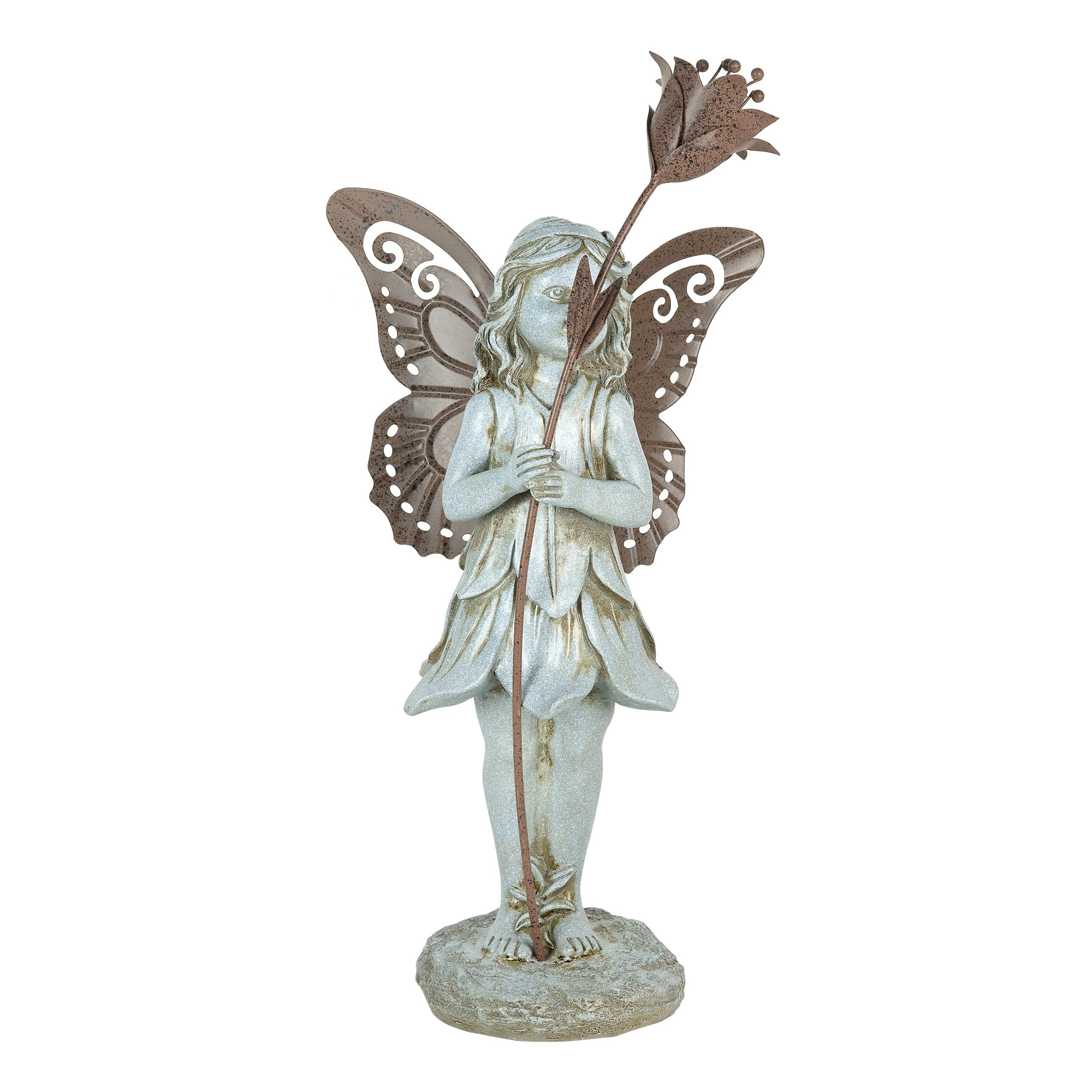 Wonders unfold when you find this enchanting fairy in your home or garden! Her ethereal wings are crafted of stamped metal, and she stands holding a beautiful metal flower, making her a lovely addition to any garden. Add a touch of charm and magic to your home with this beautifully crafted garden art by the Exhart family.