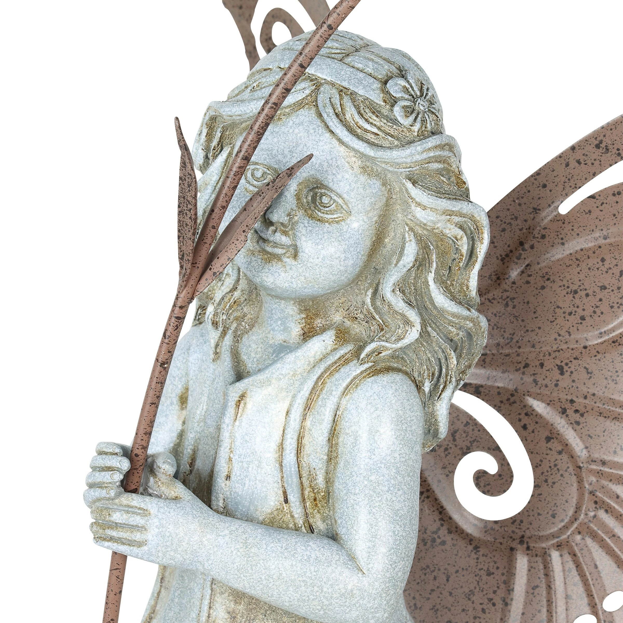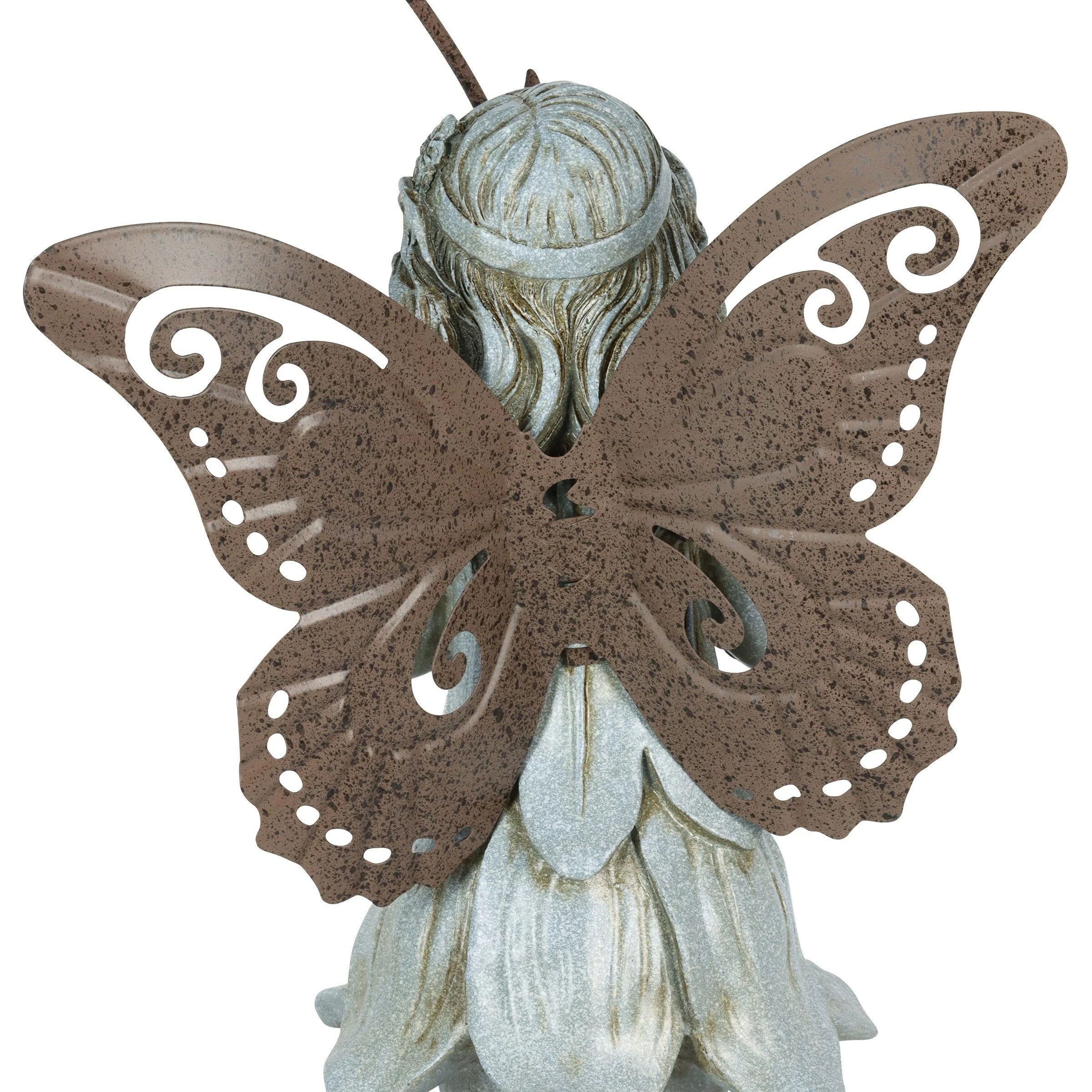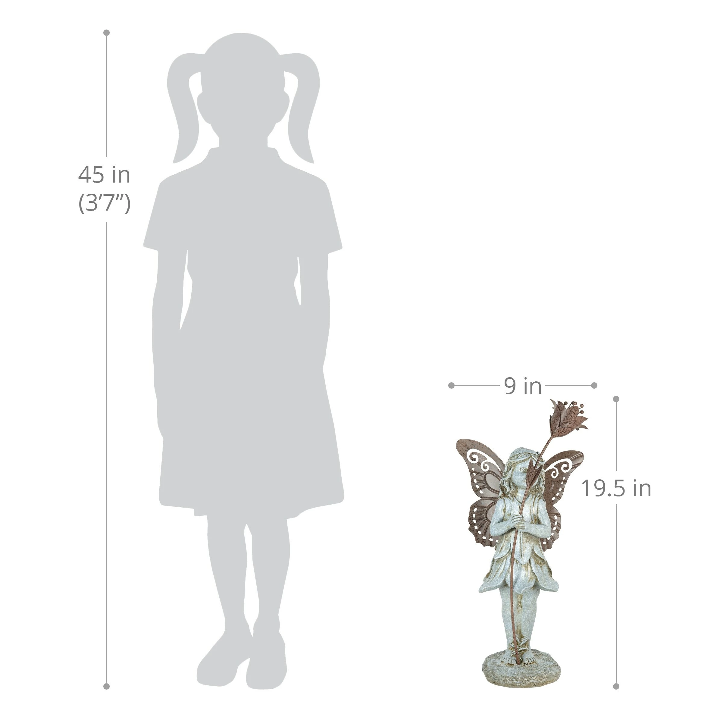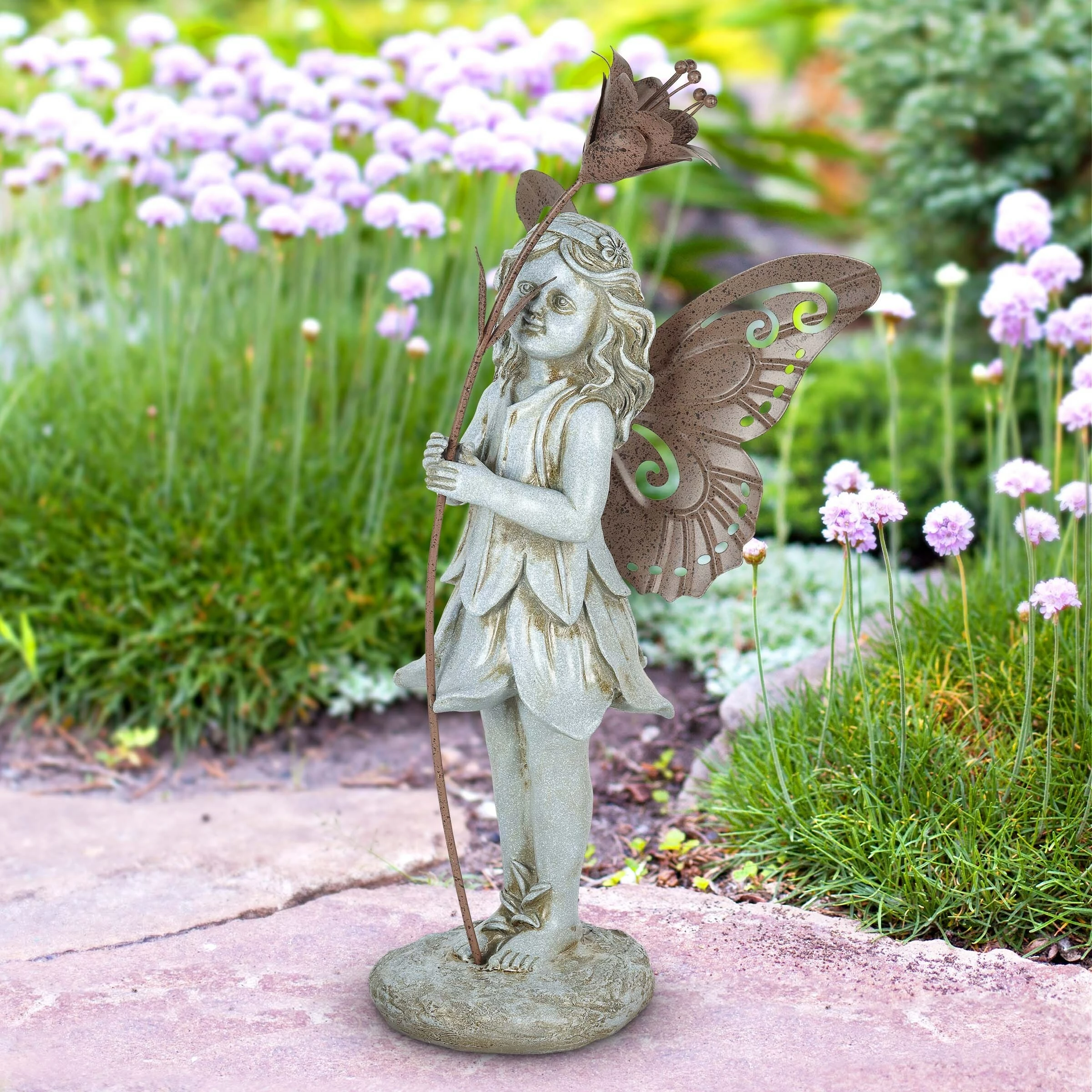 Wonders unfold when you find this enchanting fairy in your home or garden! Her ethereal wings are crafted of stamped metal, and she stands holding a beautiful metal flower, making her a lovely addition to any garden. Add a touch of charm and magic to your home with this beautifully crafted garden art by the Exhart family.