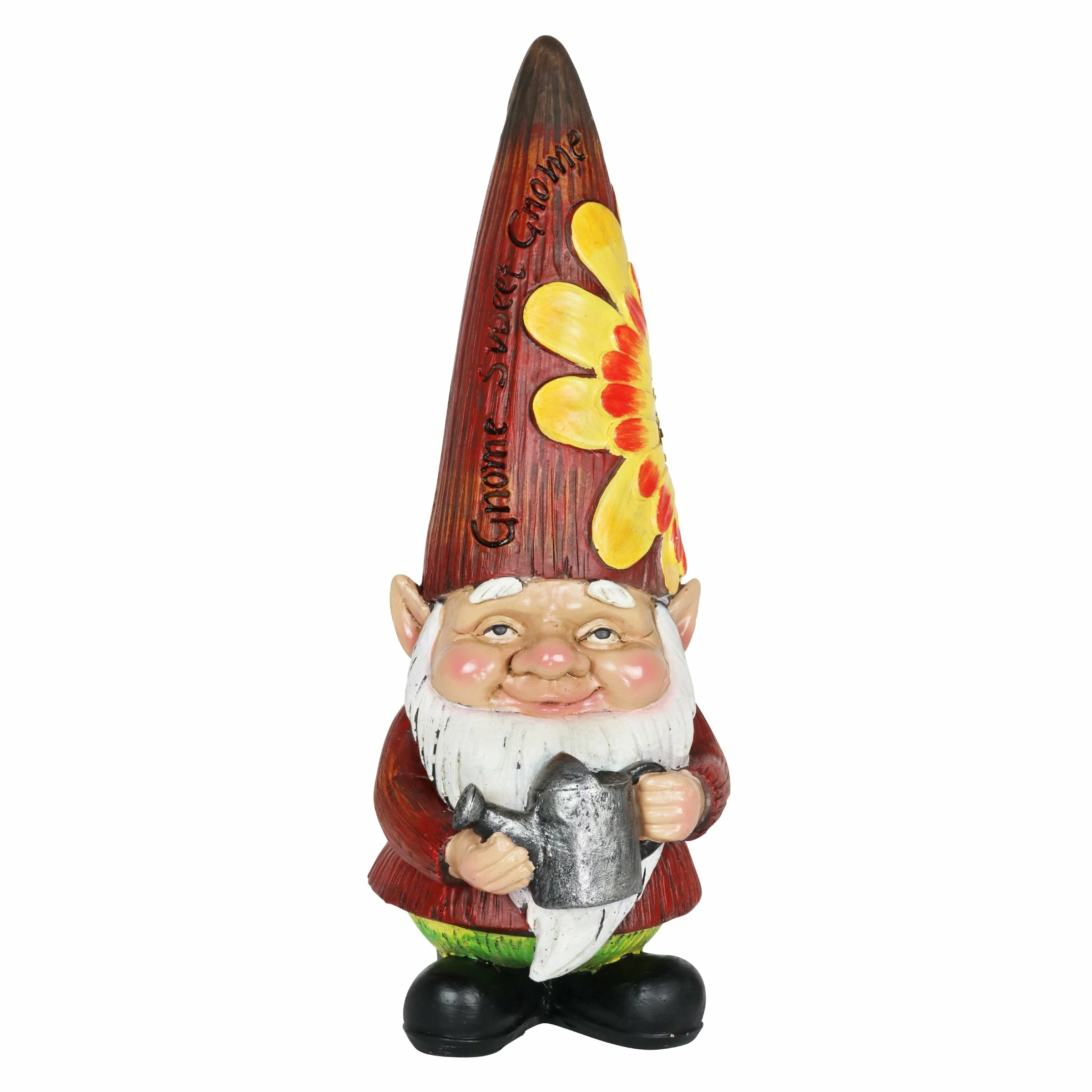 A delightful smiling gnome welcomes all to your garden! Gnome’s colorful hand painted details, inspirational hat and jovial grin add instant cheer to your home. Guaranteed to make you smile and add a touch of whimsy!