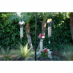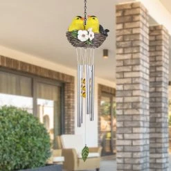 A gentle breeze will not disturb the nesting orioles as it sets off the relaxing sounds of this beautiful wind chime. The hand painted nest looks so lifelike as do the adorable cardinals and flowers! Hand tuned metal chimes are detailed with acrylic accent beads for an extra touch of elegance. Makes a great gift and wonderful addition to your yard, patio or garden.