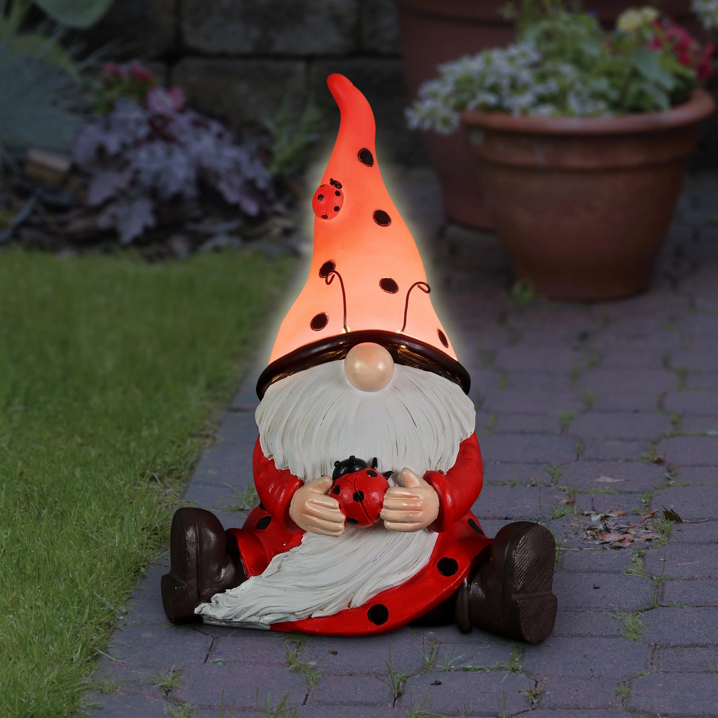 This adorable solar Ladybug Hat Gnome is a wonderful symbol of love and good fortune! Beautifully hand painted, this gnome’s ladybug hat automatically illuminates at dusk adding a touch of light and whimsy to any yard. Endearing and a little magical, gnomes make the perfect addition to any garden! Enjoy beautifully crafted and hand painted garden art by Exhart.