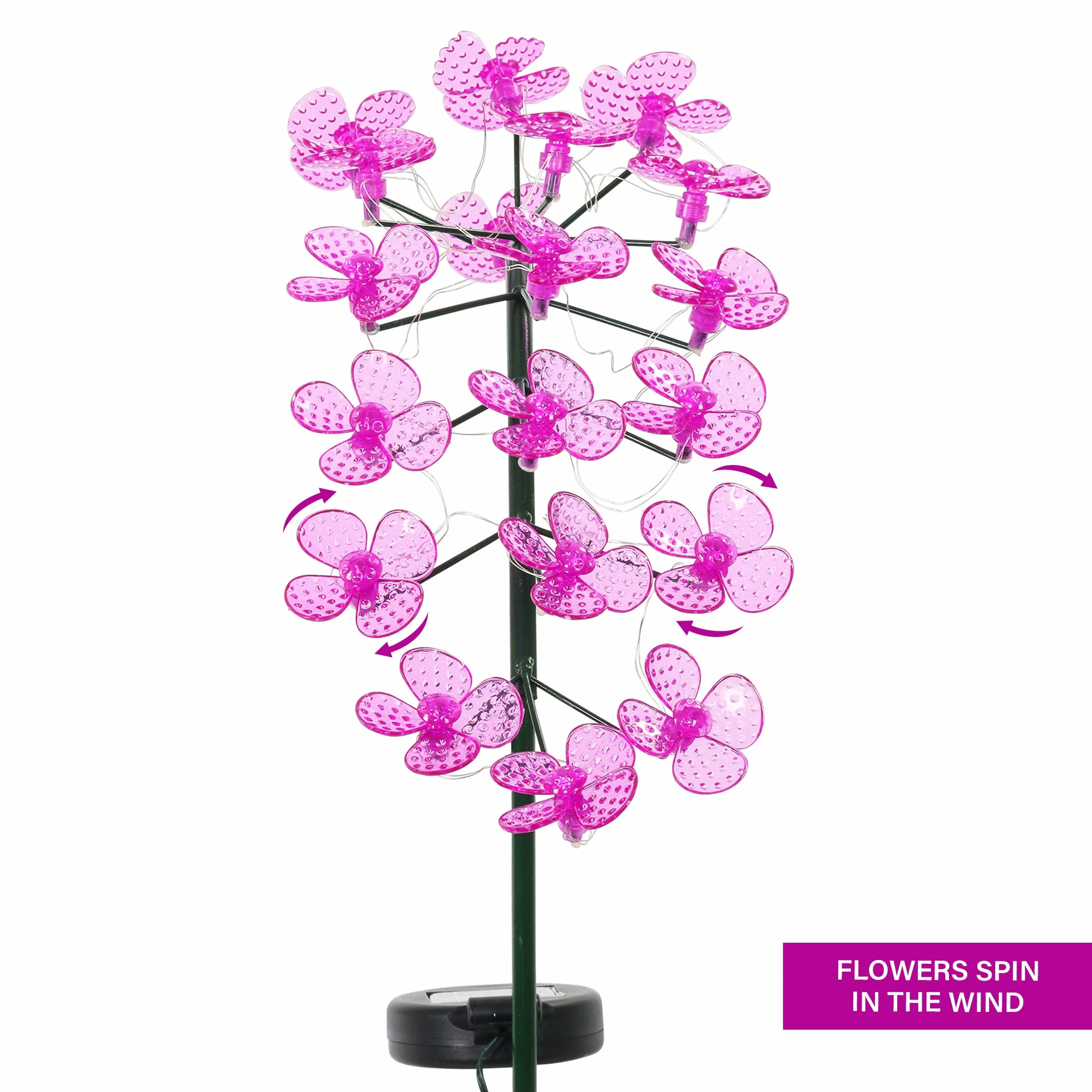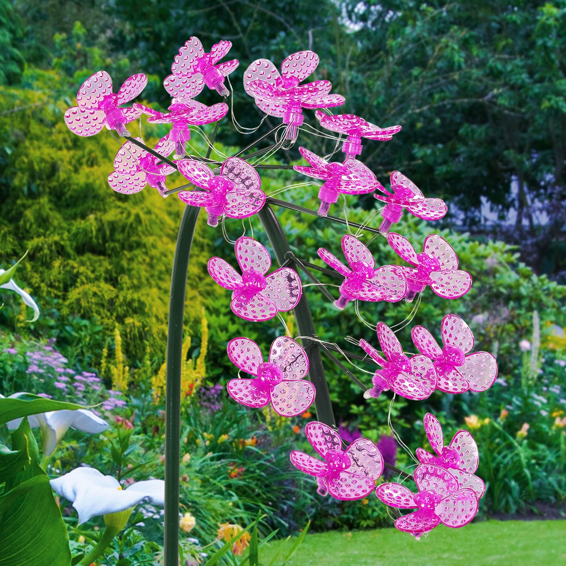 Colorful cascading solar flowers spin in the breeze and illuminate from within each and every blossom on this beautiful flower garden stake. This charming work of art has 19 LED lights and is hand crafted and exquisitely designed to add a touch of color, light and elegance to your garden! Makes a fabulous gift that’s always in bloom!