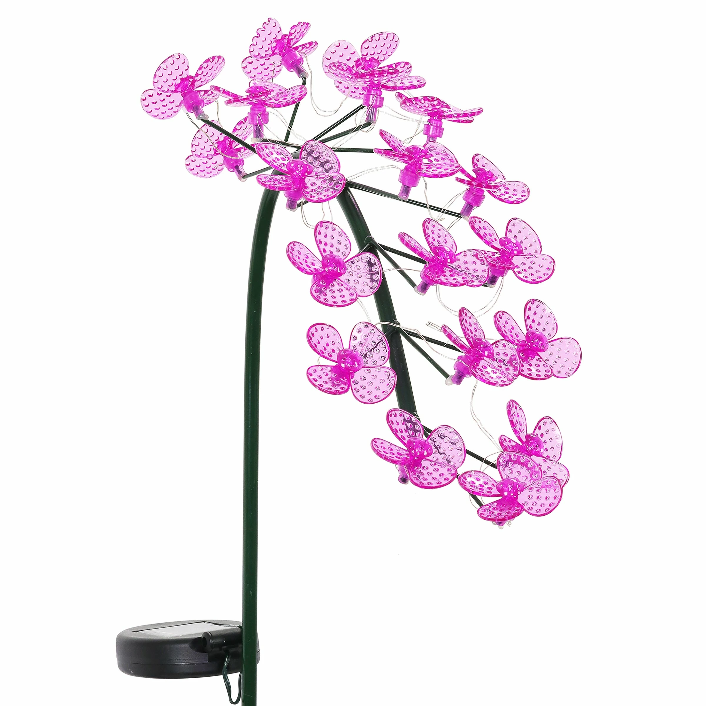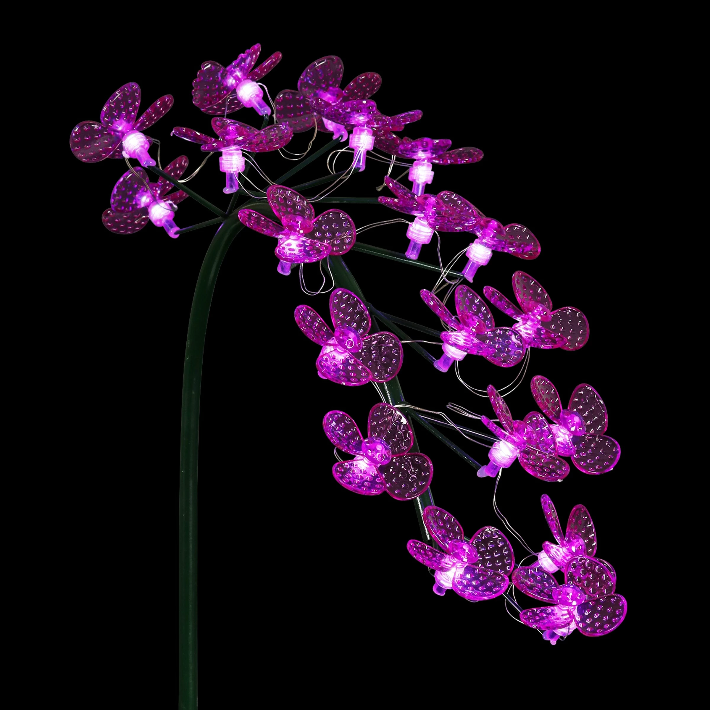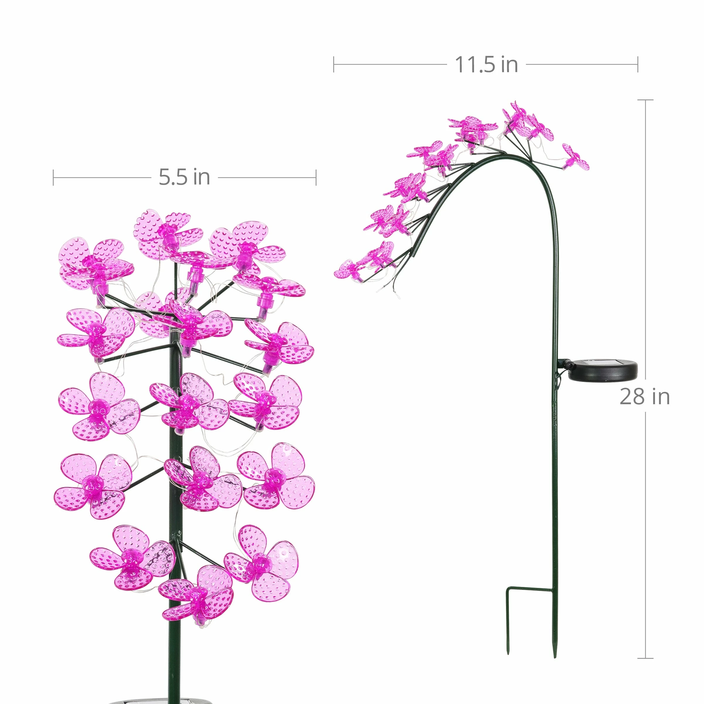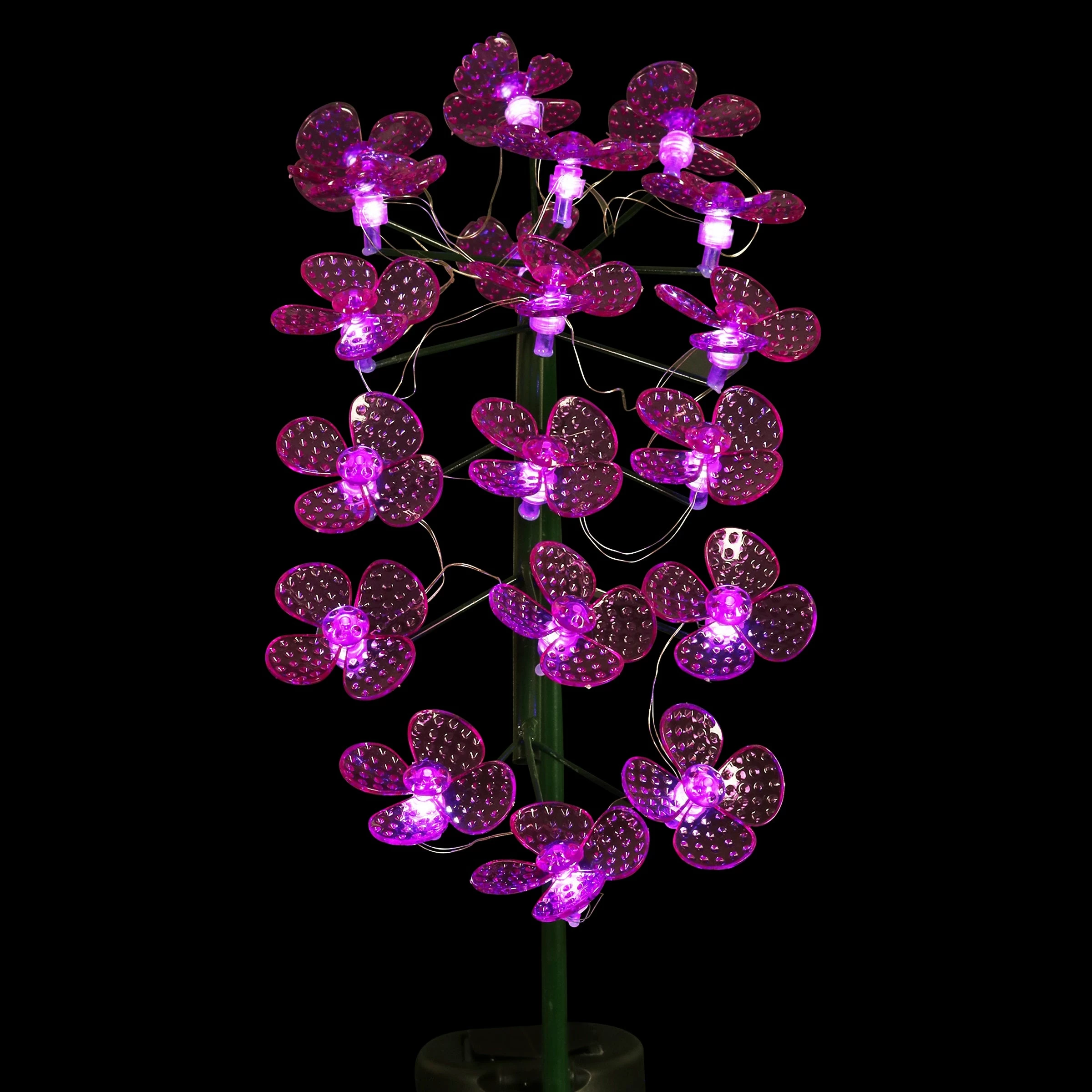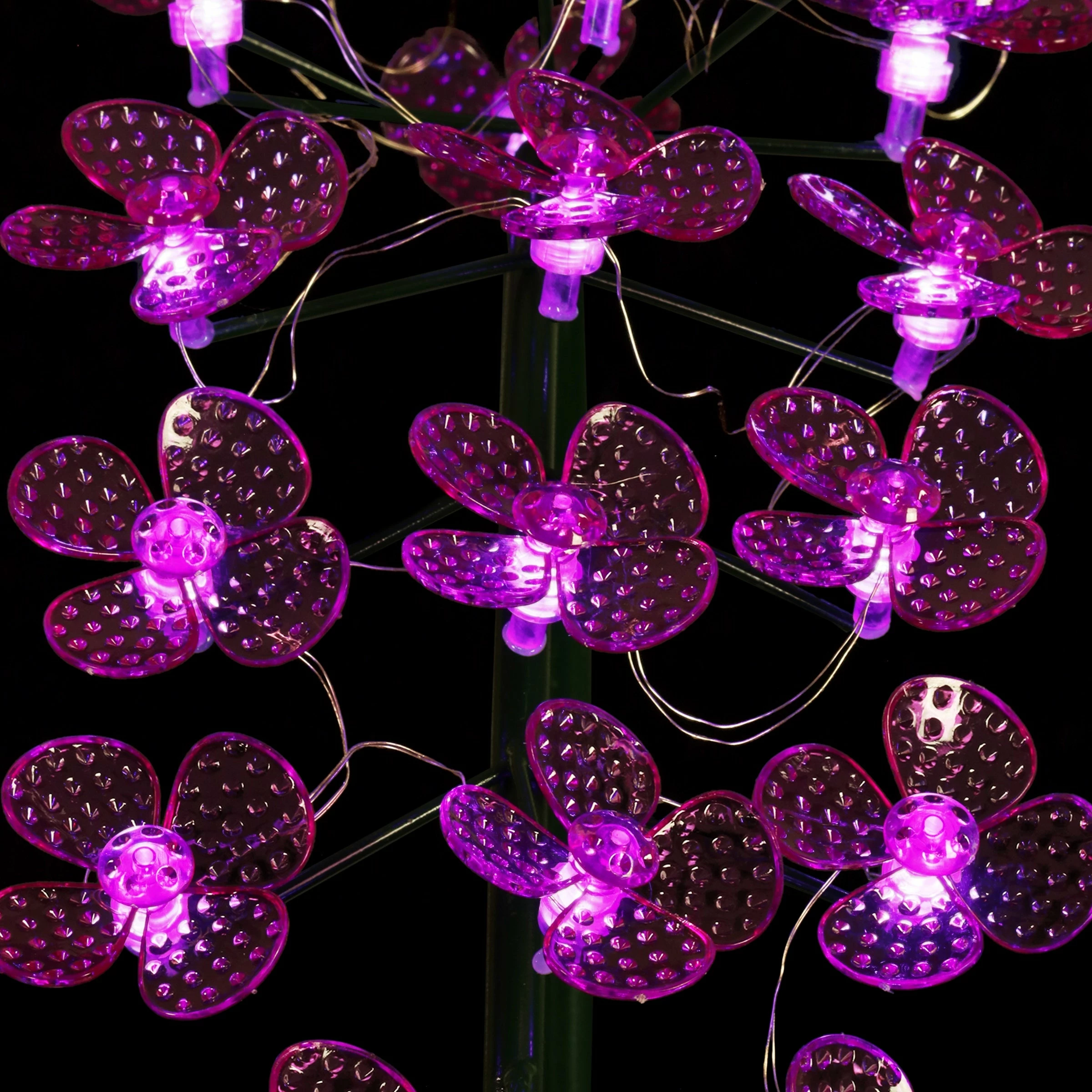 - 19 Solar powered LED lights automatically glow from within each blossom at dusk