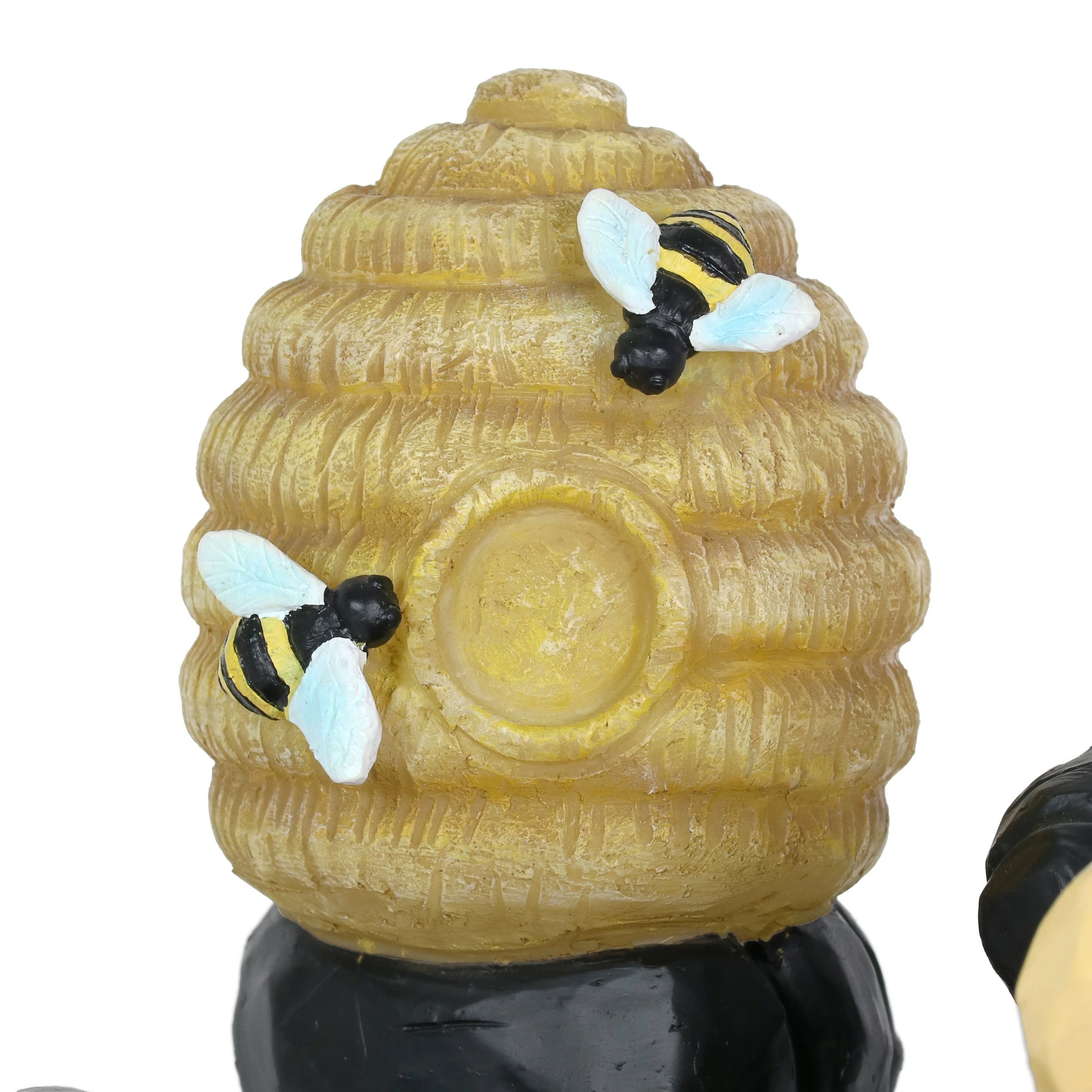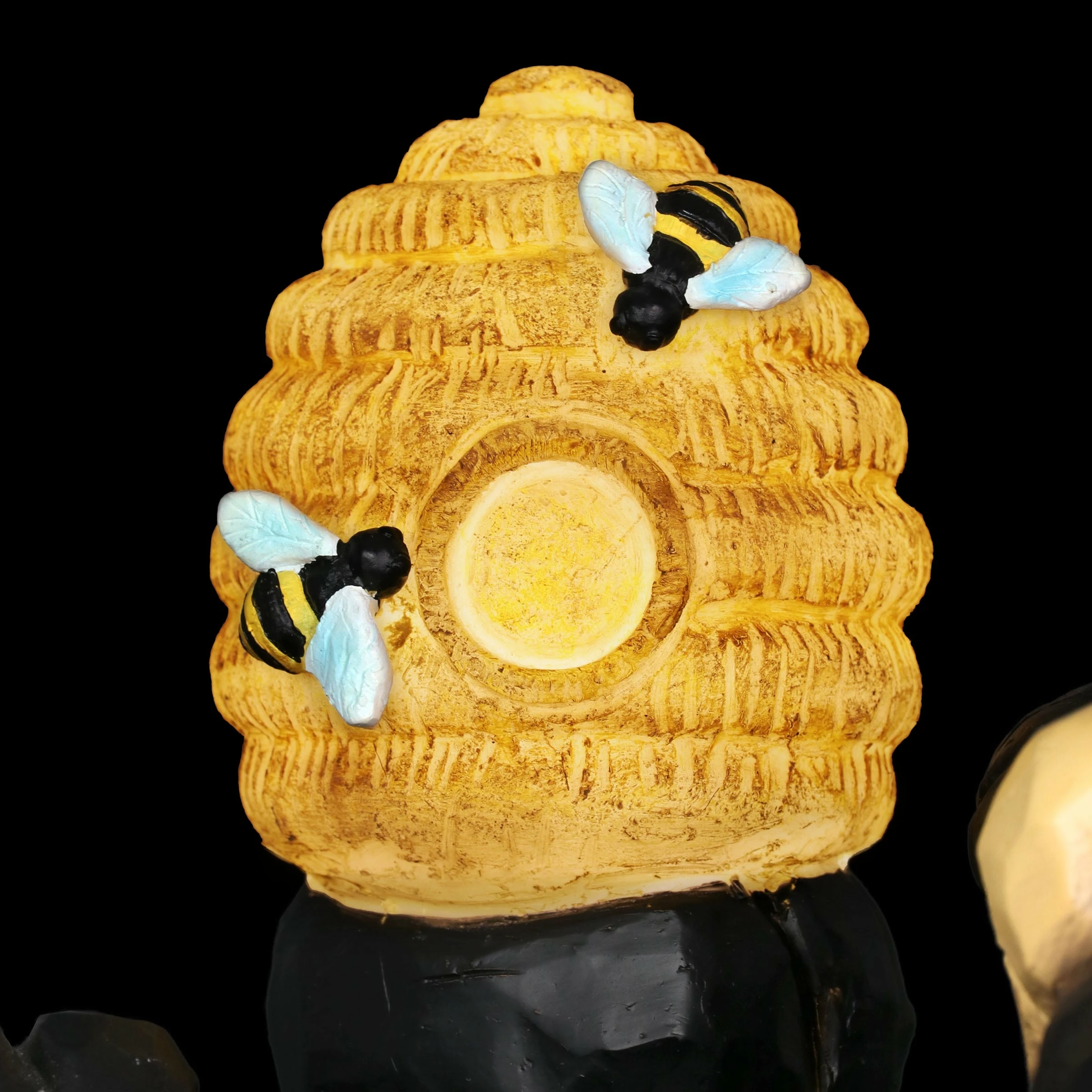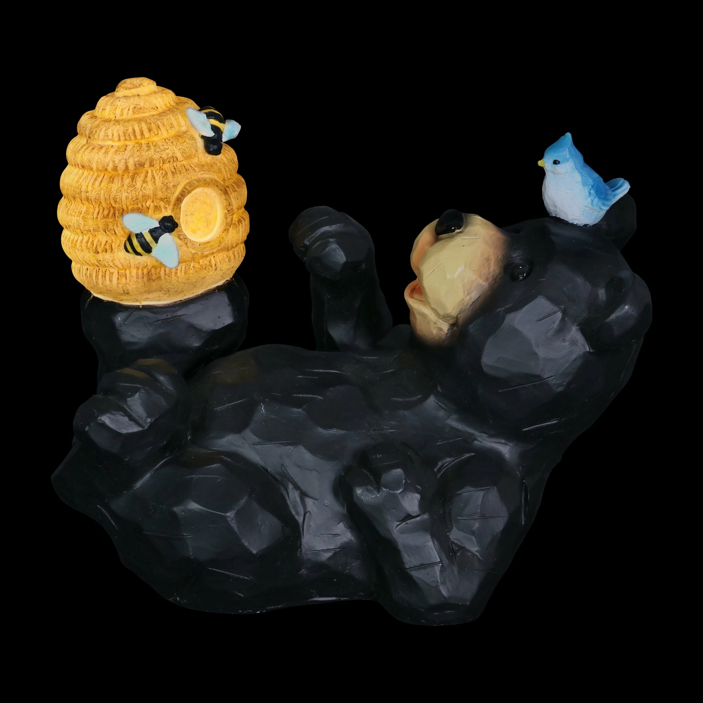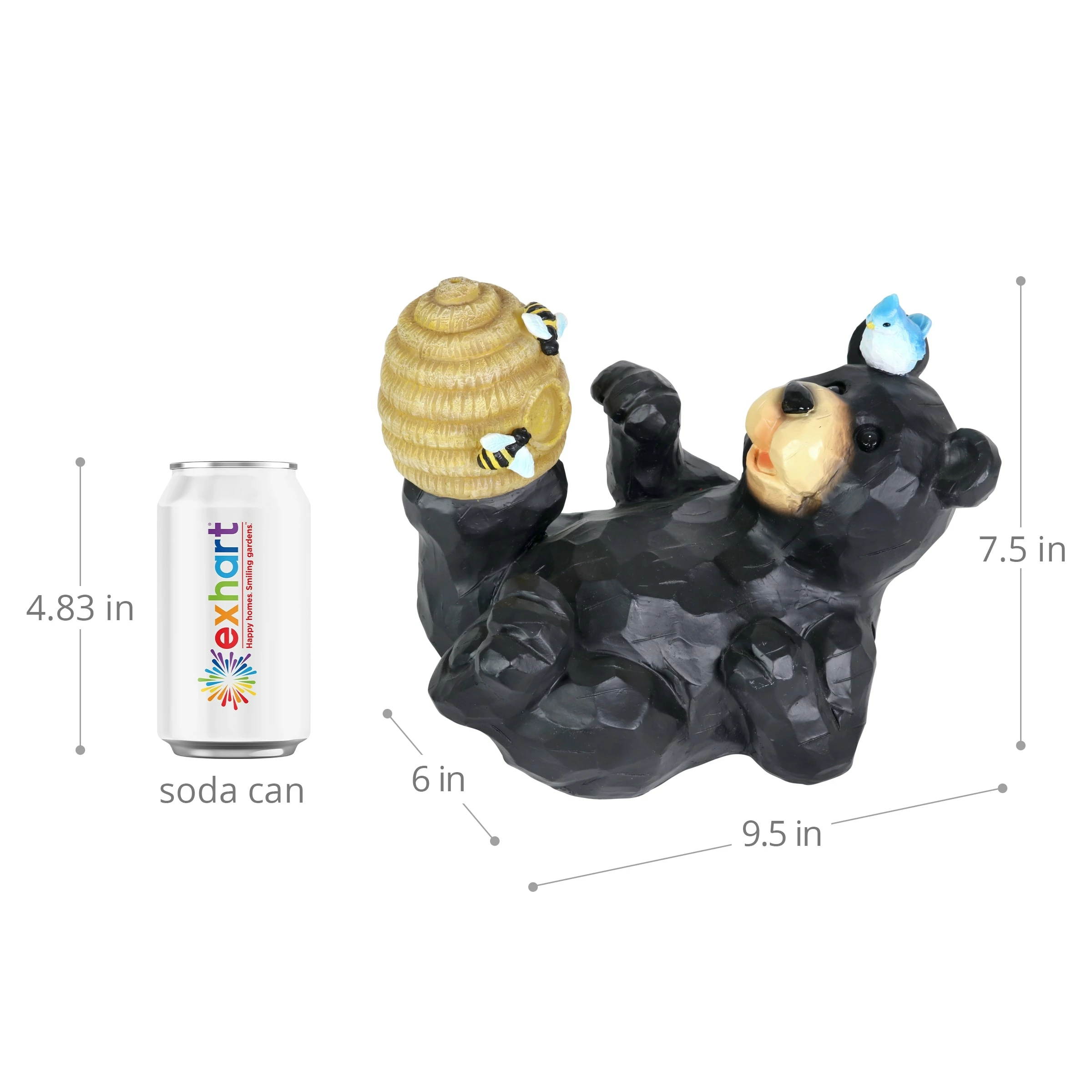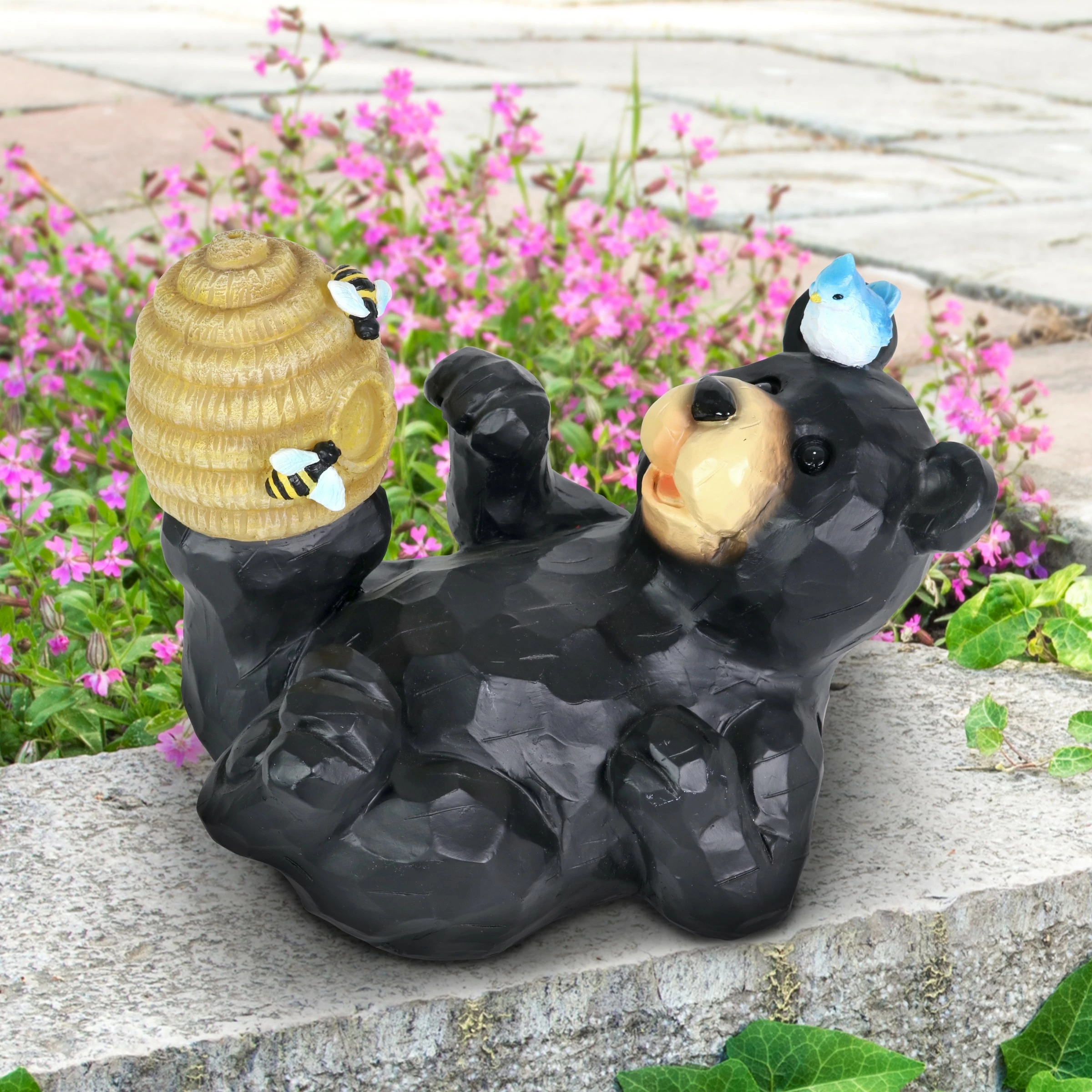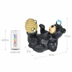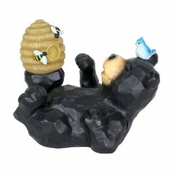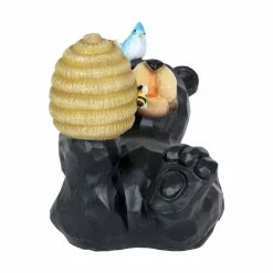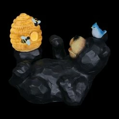 You can almost taste the sweet honey this adorable bear is trying to get from his illuminating bee hive in this heart warming garden statuary! At dusk, solar powered LED light will begin to glow from within the charming bee hive, highlighting both the hive and the little hand painted bees. Add a touch of whimsy to your home with beautifully crafted garden art from the Exhart family.