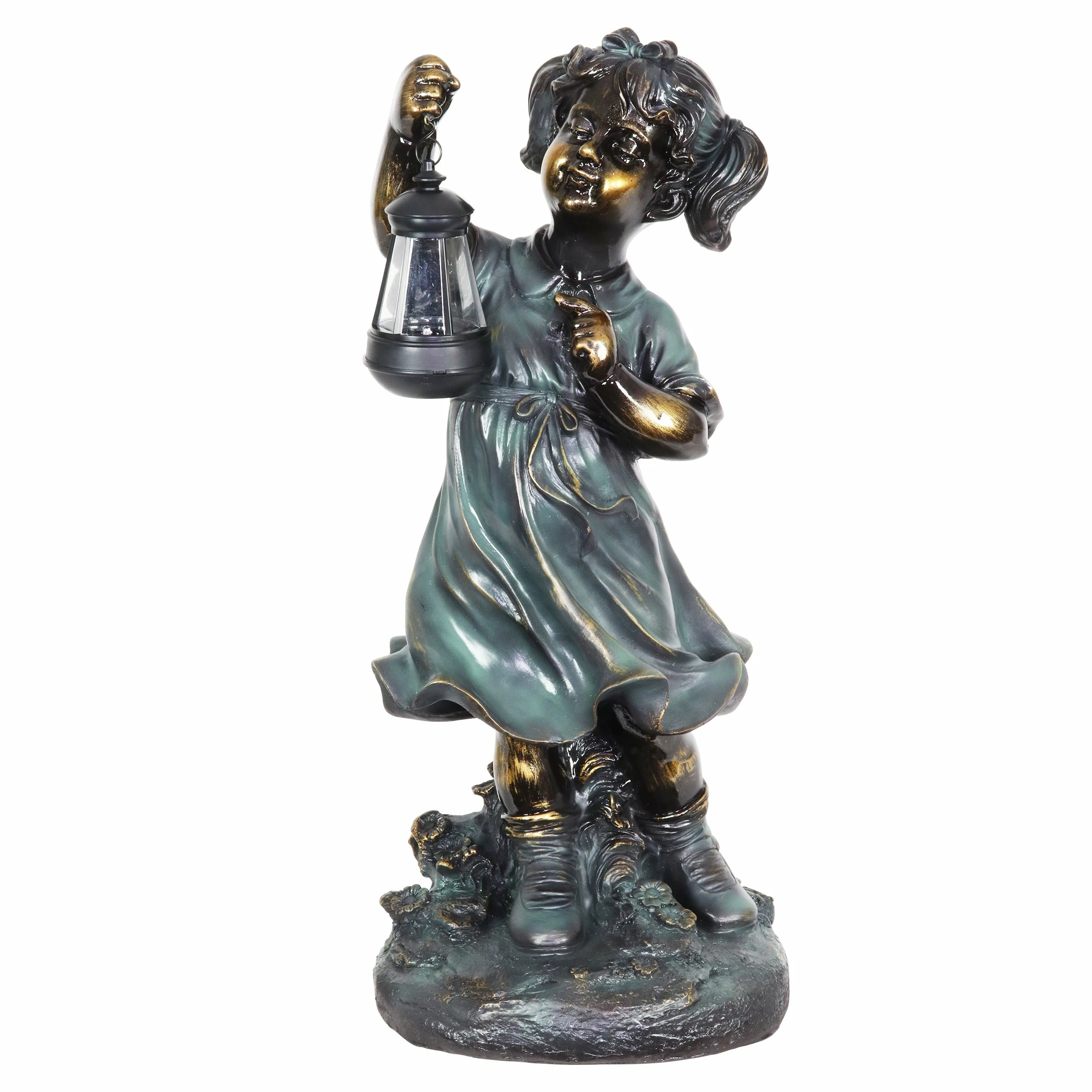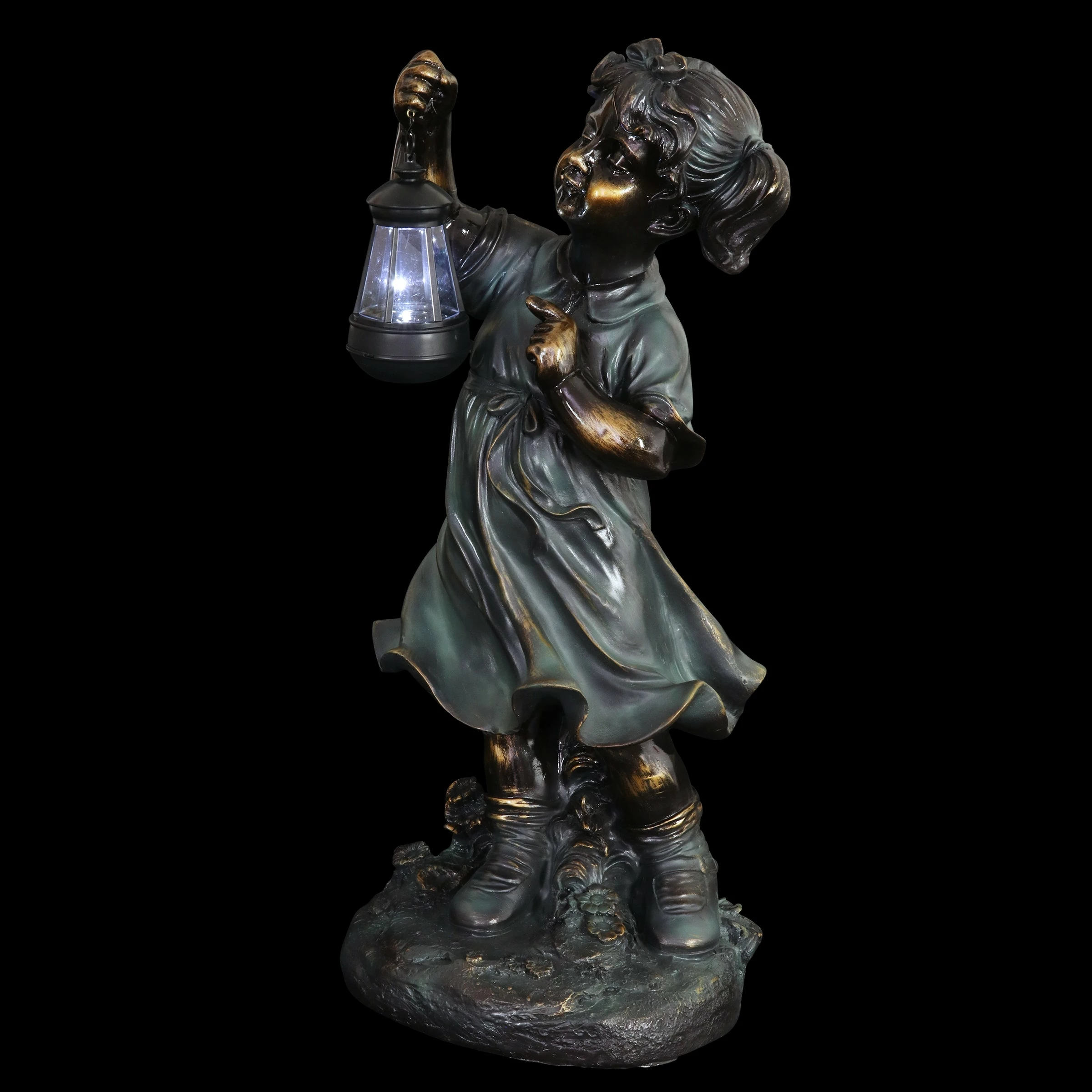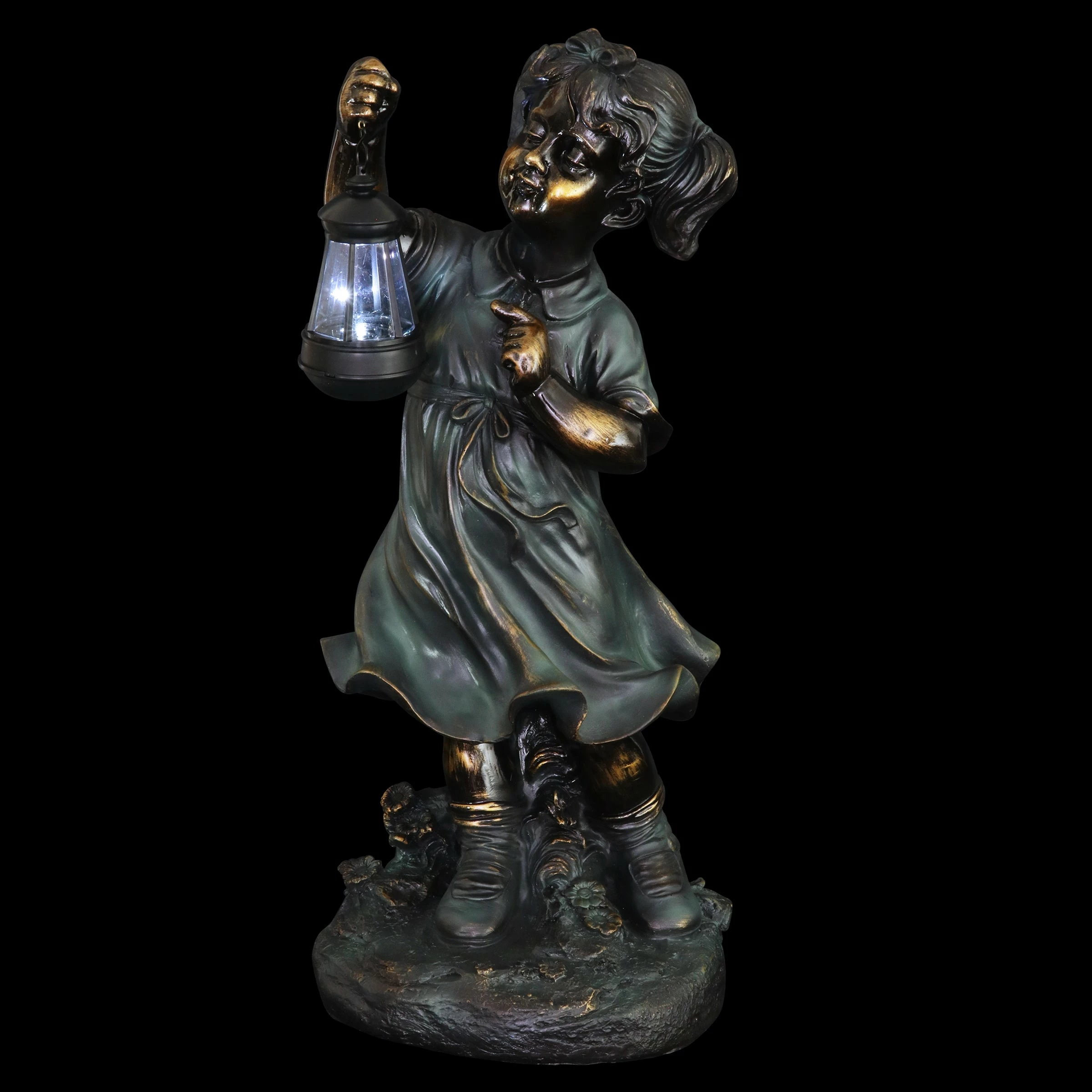 Elegant and endearing, this faux bronze statue of a girl holding a lantern illuminates in your garden! Watch as the solar powered LED light automatically glows from within the lantern at dusk, casting a glow on this heartwarming dΓ©cor. A charming and luxurious looking addition to your garden, also makes a wonderful gift!
