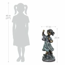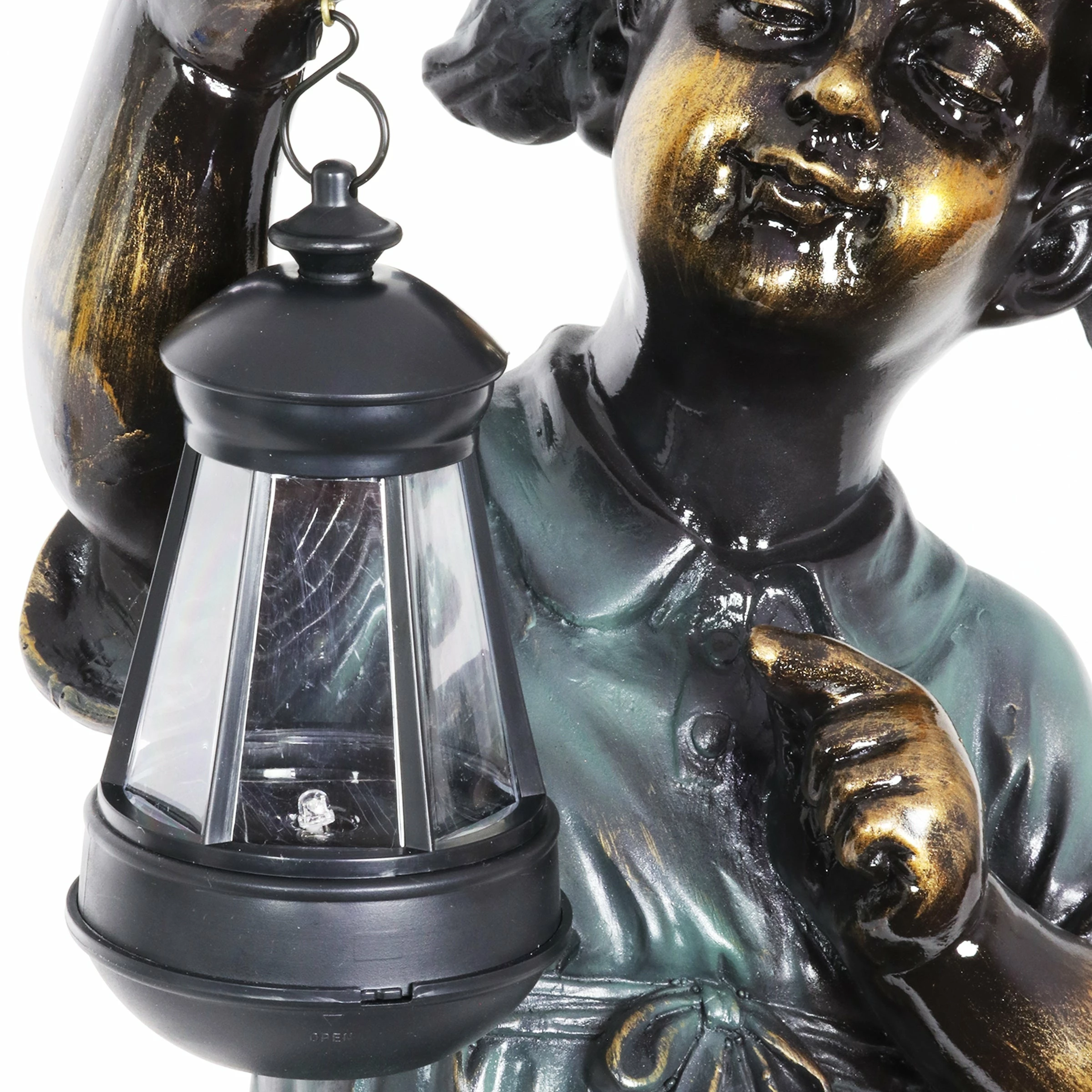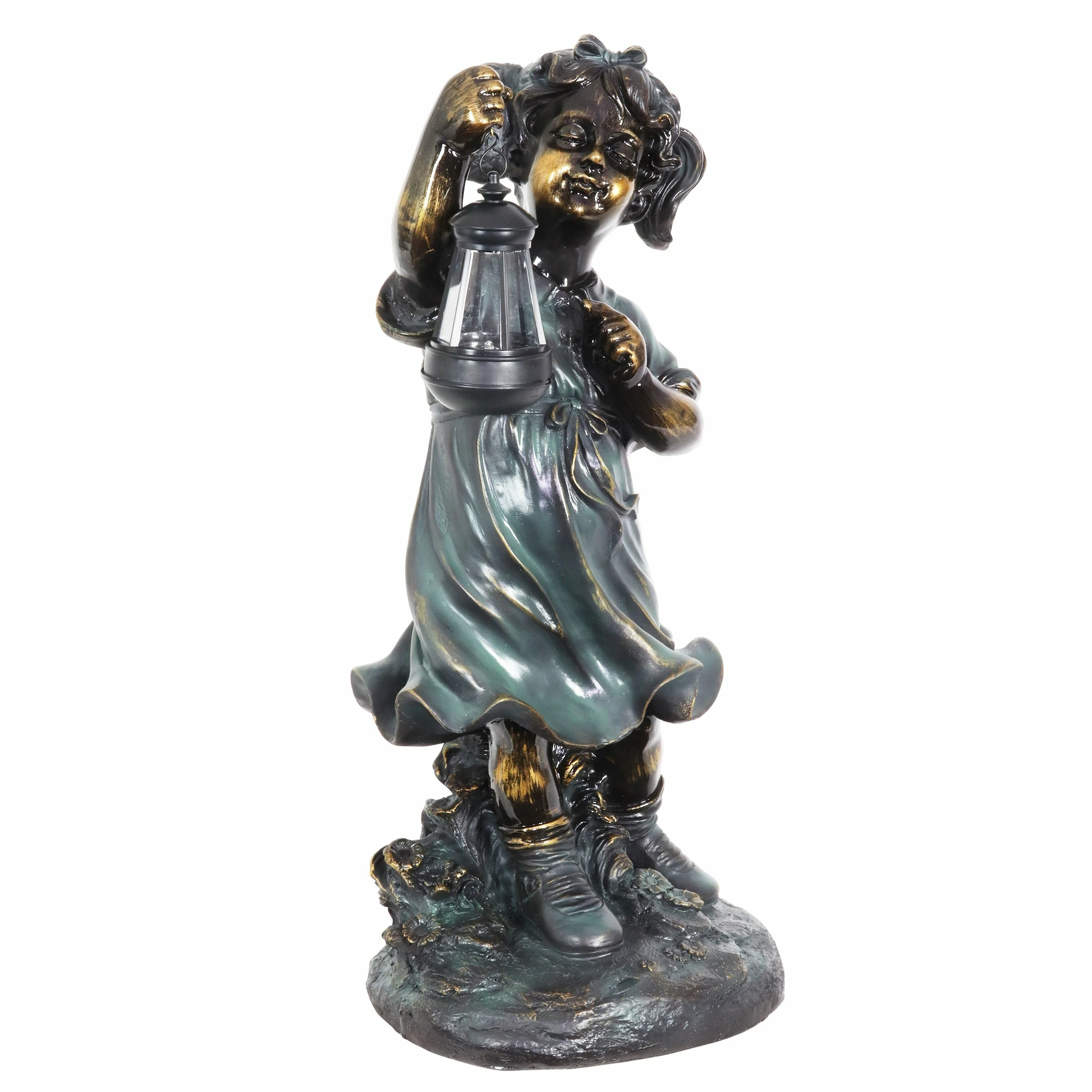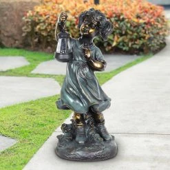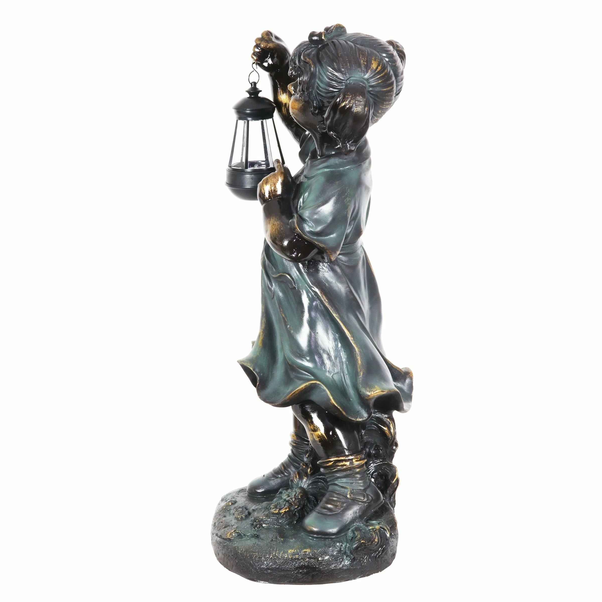 Elegant and endearing, this faux bronze statue of a girl holding a lantern illuminates in your garden! Watch as the solar powered LED light automatically glows from within the lantern at dusk, casting a glow on this heartwarming dΓ©cor. A charming and luxurious looking addition to your garden, also makes a wonderful gift!