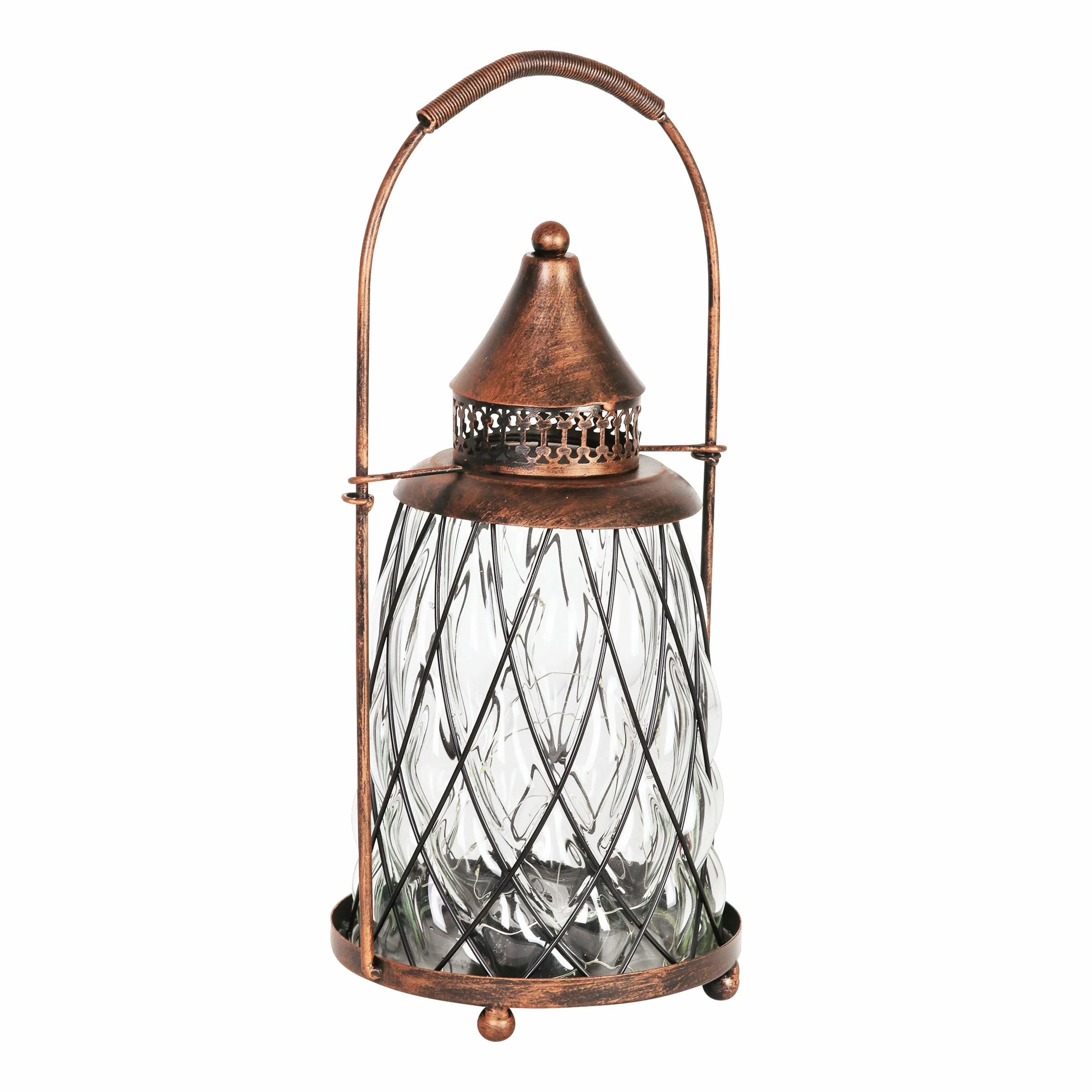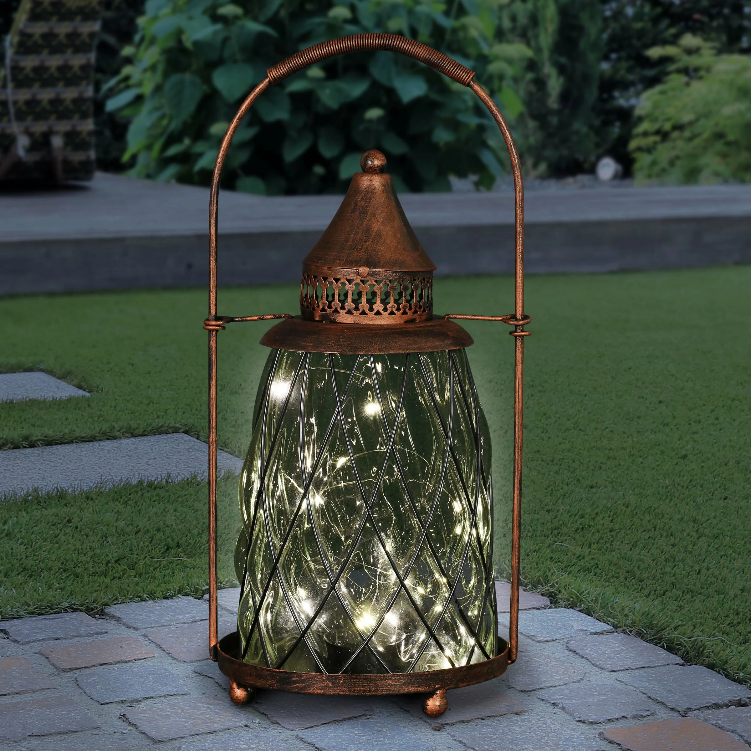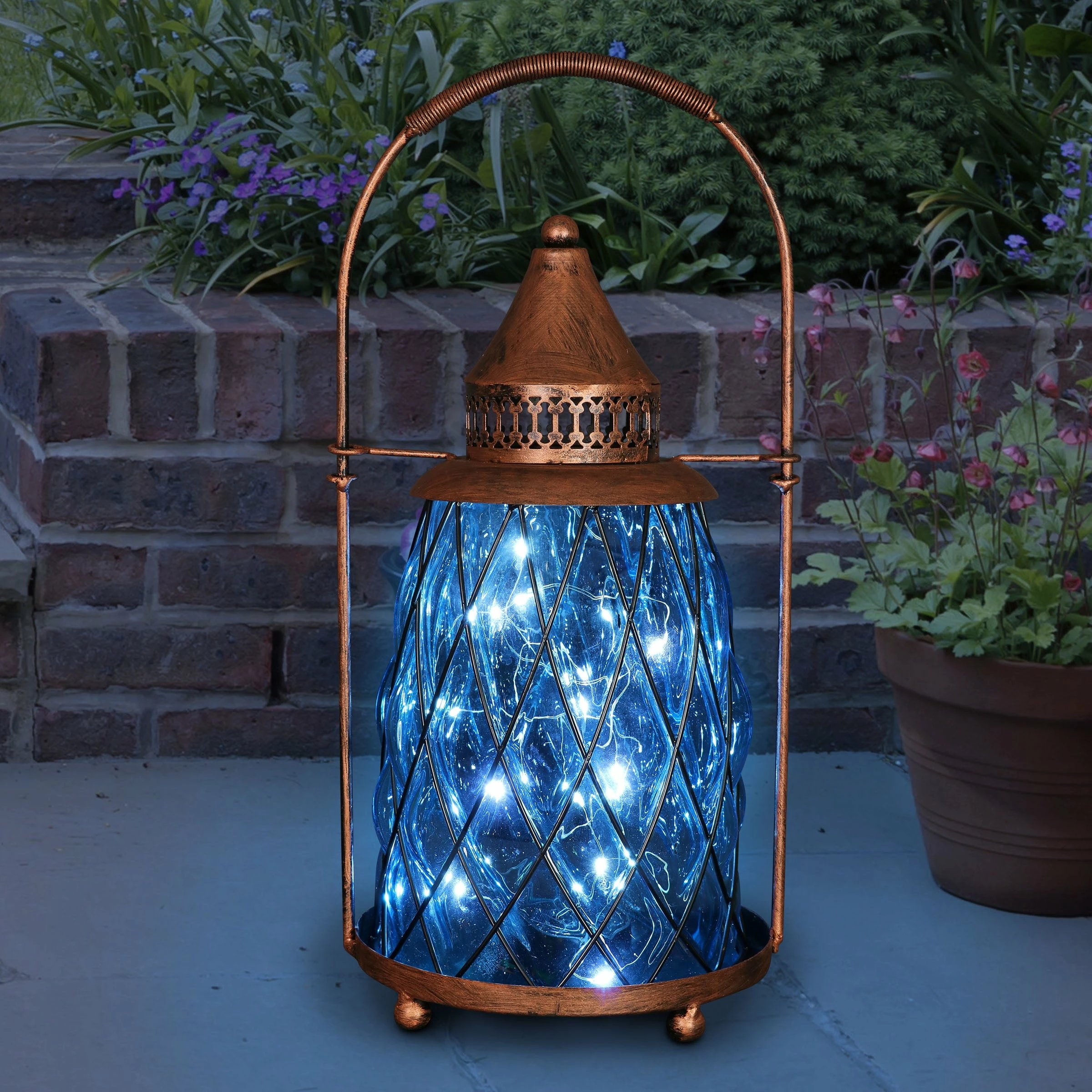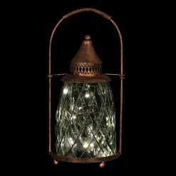 Add a charming touch to any outdoor space with this Solar Vintage Metal and Glass Lantern. 15 Firefly LED lights will automatically illuminate at dusk adding a magical glow to your garden! Framed by a classic metal design with a handle, this beautiful piece makes an enchanting decorative light.