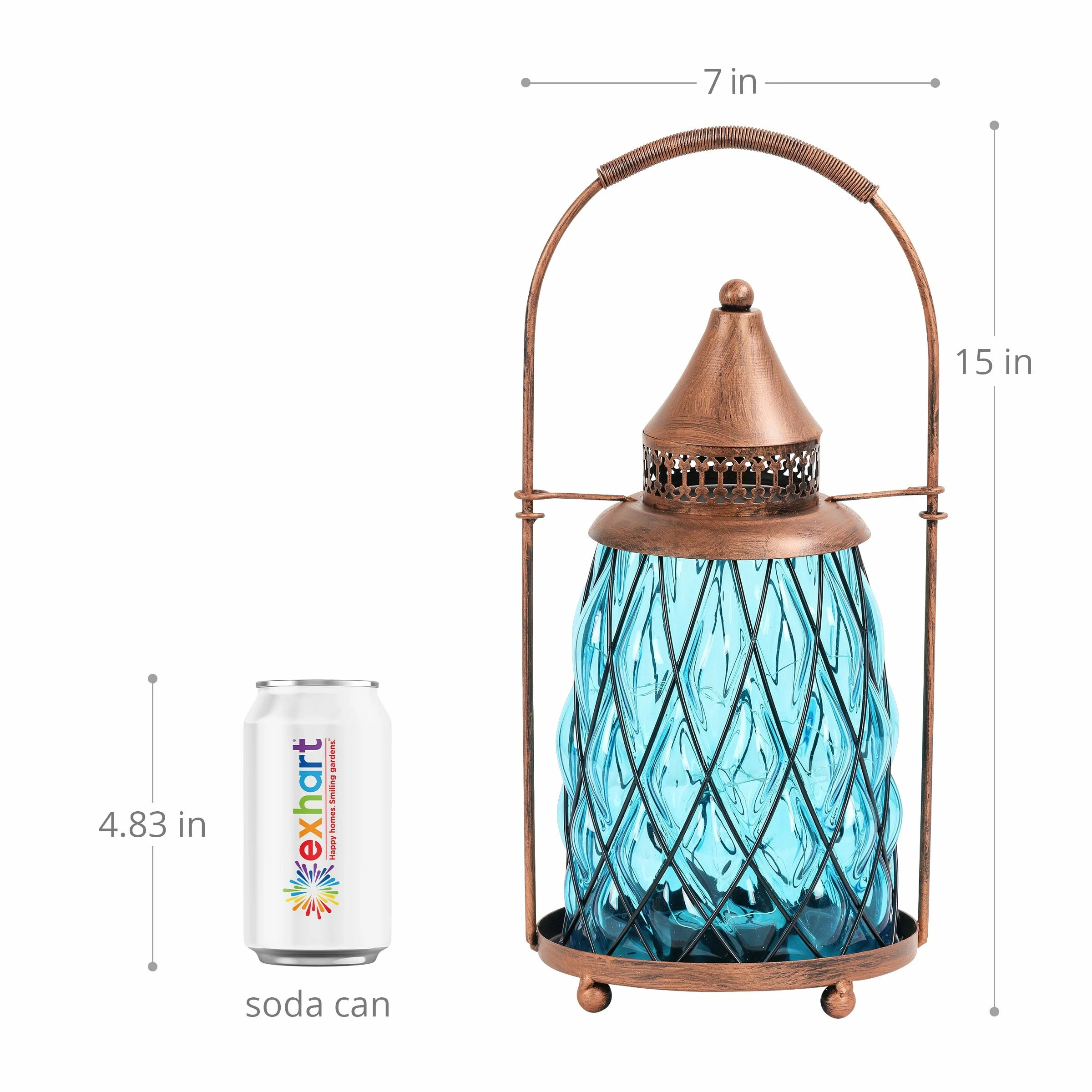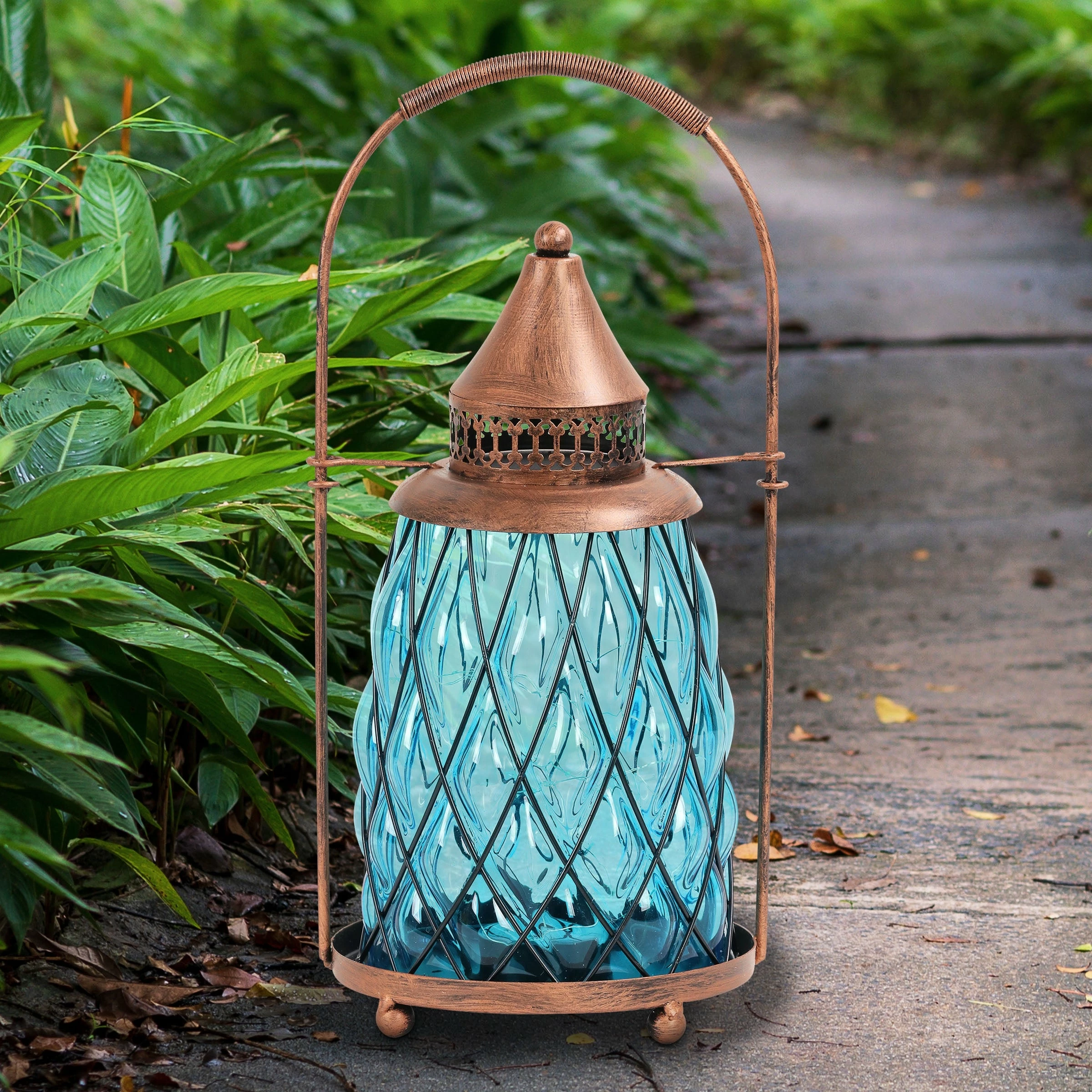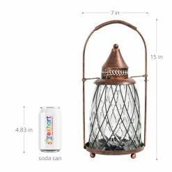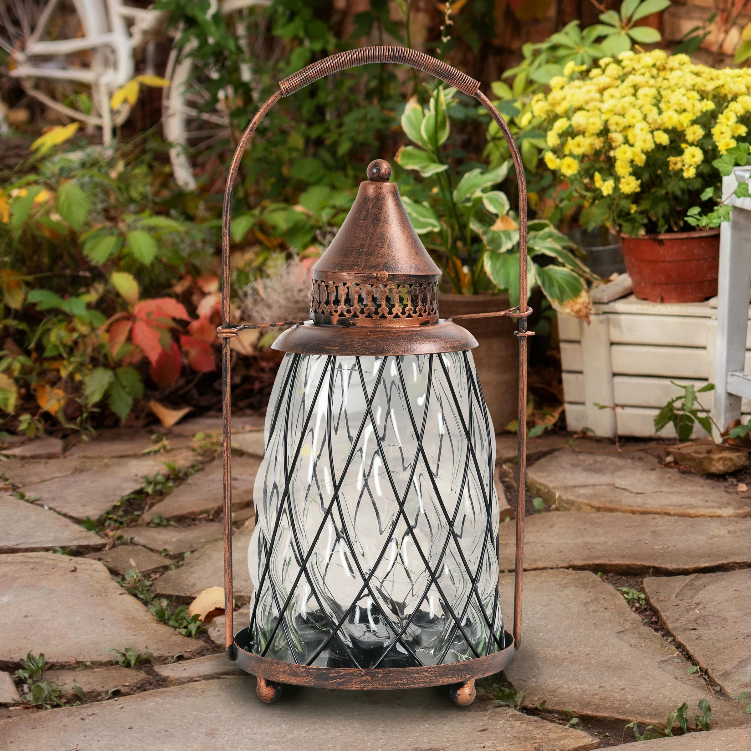Add a charming touch to any outdoor space with this Solar Vintage Metal and Glass Lantern. 15 Firefly LED lights will automatically illuminate at dusk adding a magical glow to your garden! Framed by a classic metal design with a handle, this beautiful piece makes an enchanting decorative light.