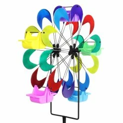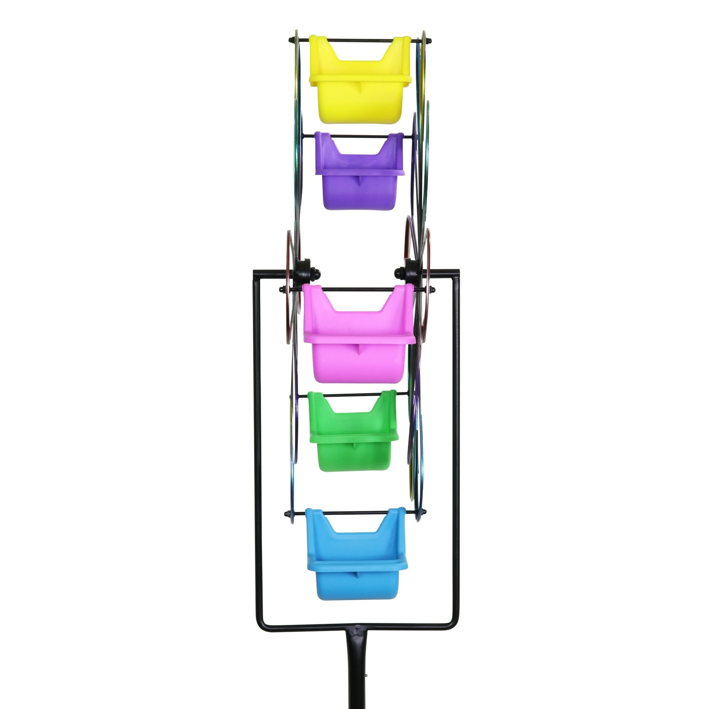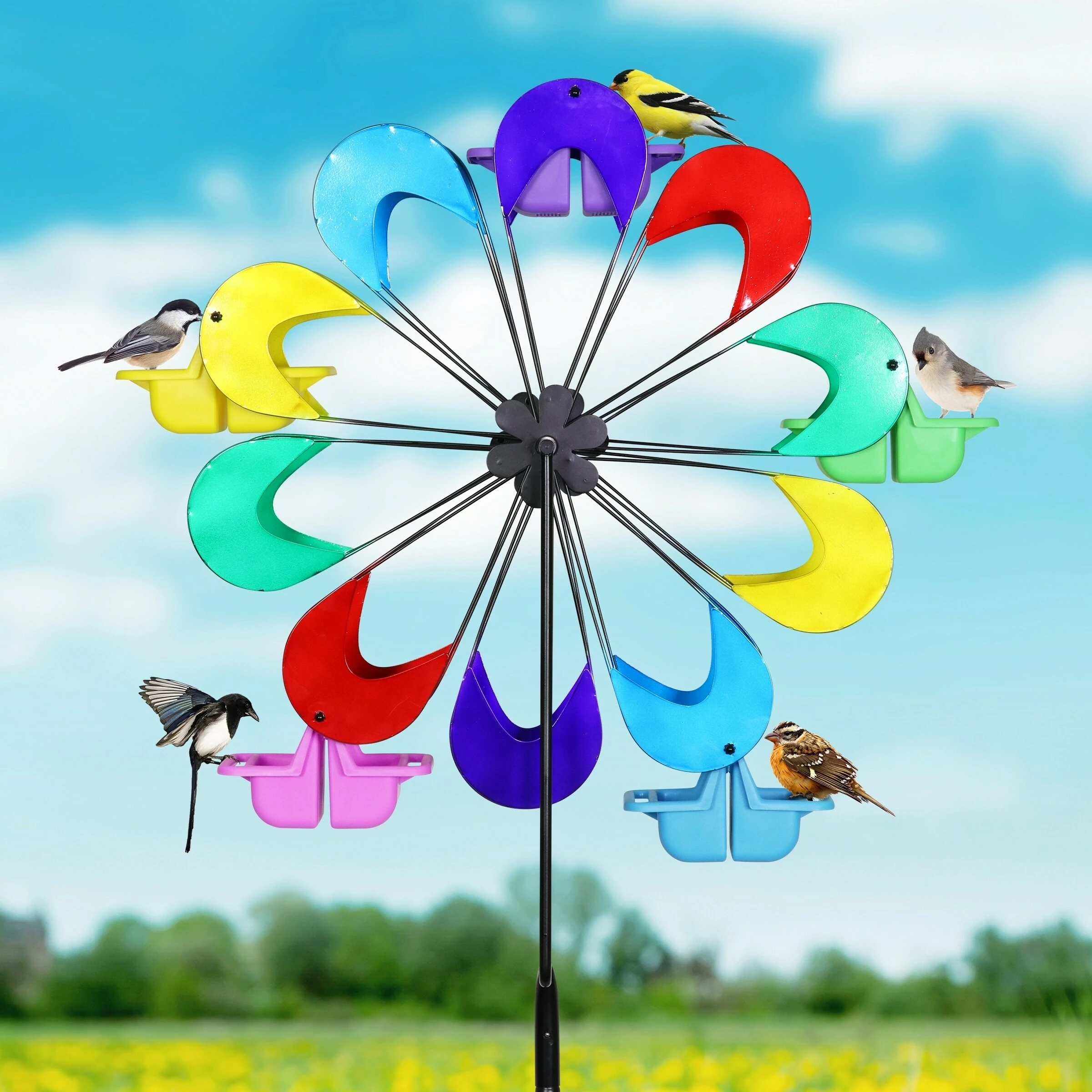 Birds will twirl with delight as they feed from this fanciful multi-colored bird feeder. A piece of art in its own right, this gorgeous feeder becomes even more fascinating as birds land on their baskets and embark on a gentle revolution. A must for all garden and bird watching enthusiasts. A beautiful kinetic art & bird feeder, wind powered, UV treated nad made of durable metal.