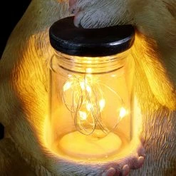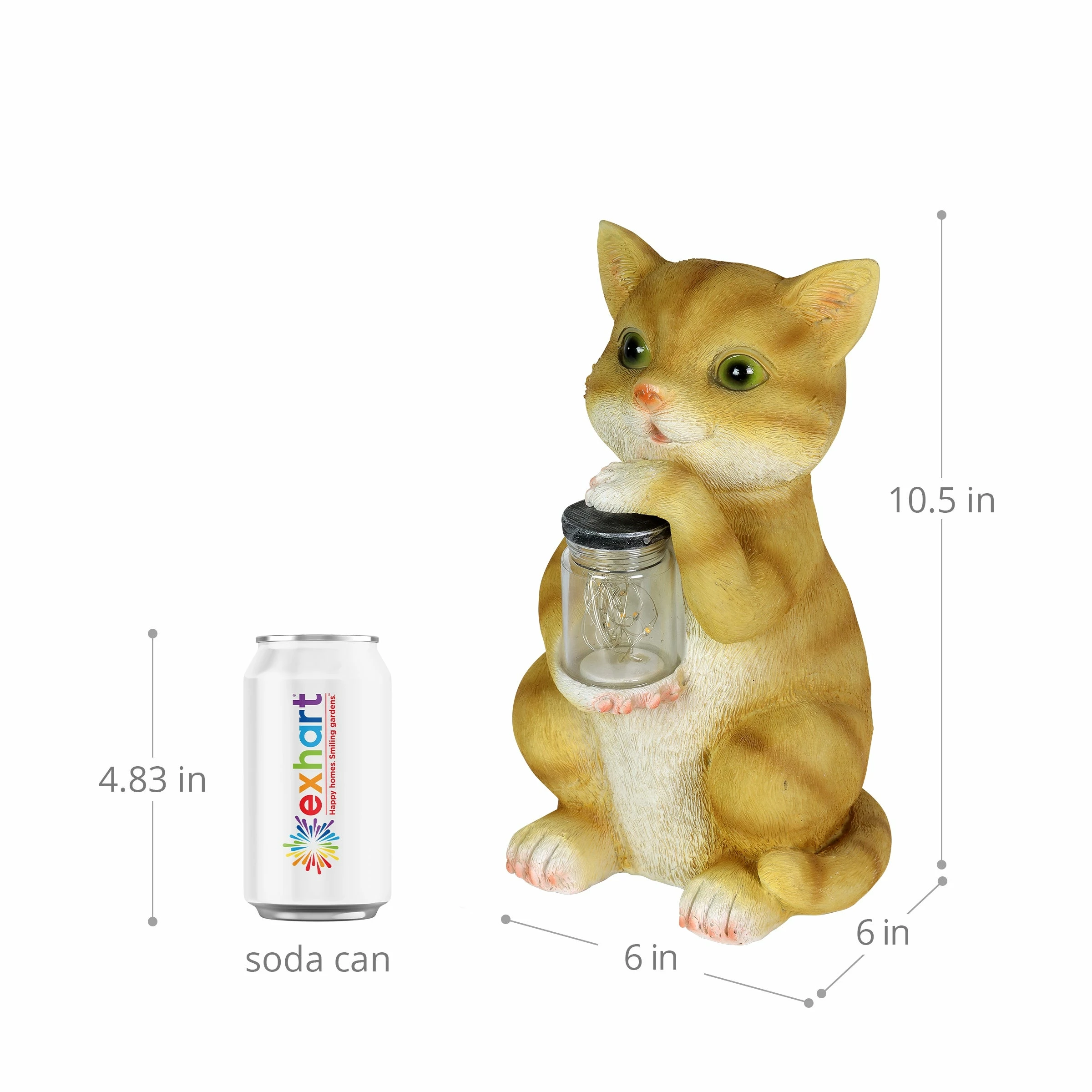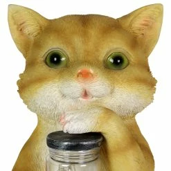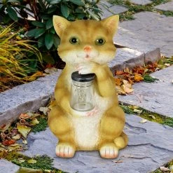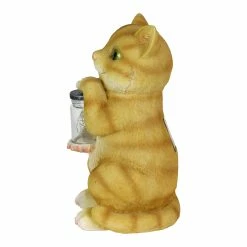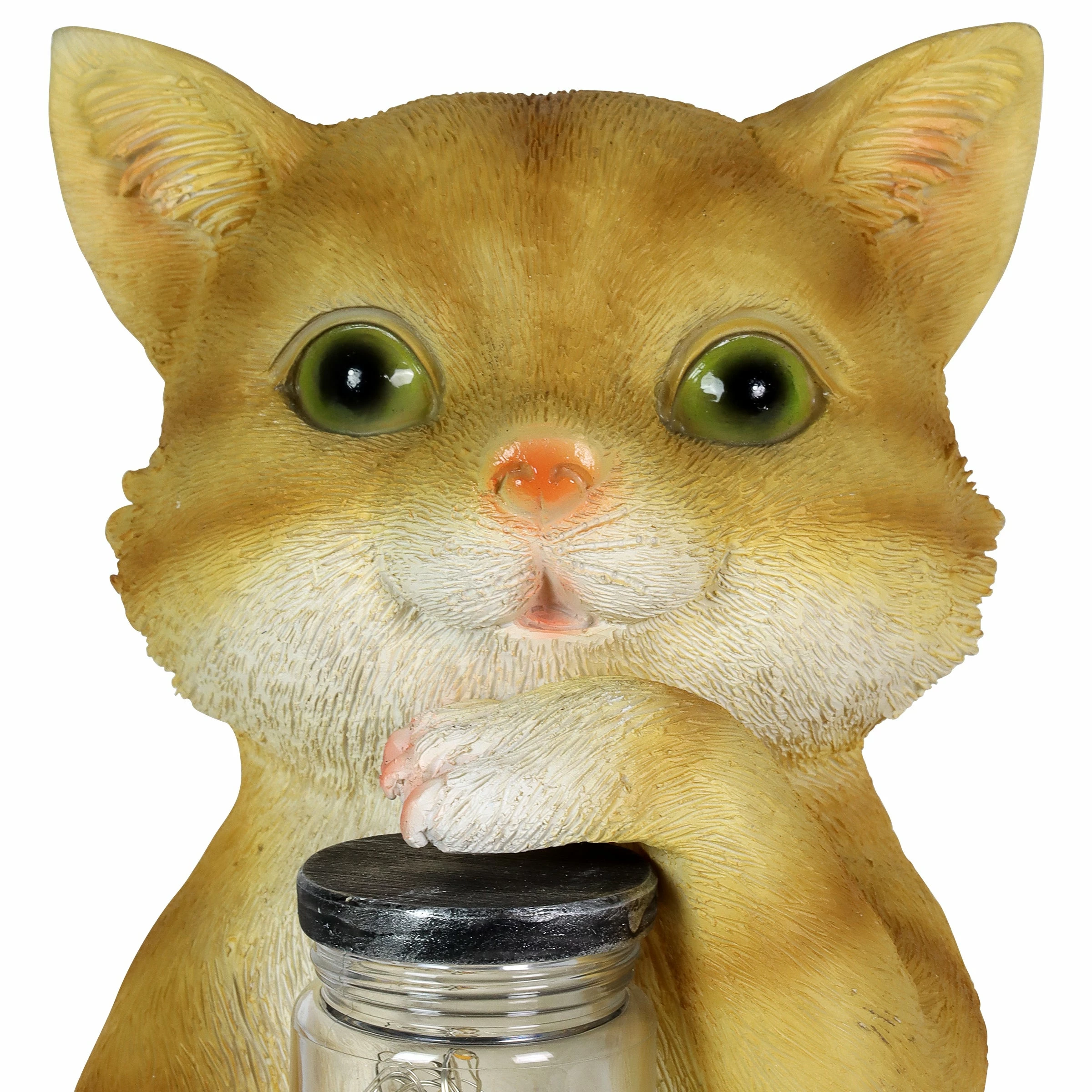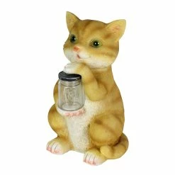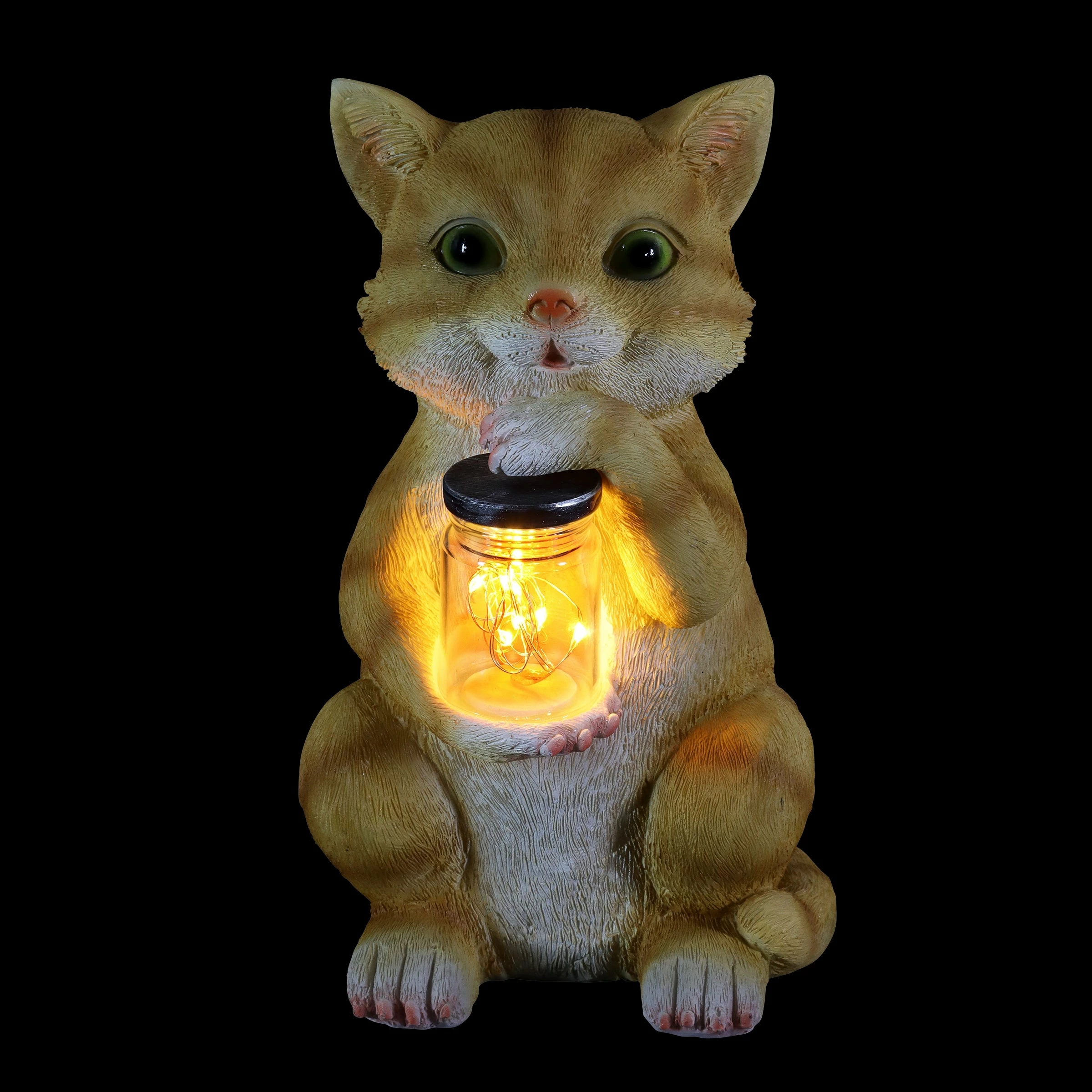 This adorable Solar Cat Statue is carrying a jar full of sparkling LED fireflies! A string of solar powered LED lights will magically illuminate in the jar at dusk, bringing this charming garden art to life! Known for beauty, grace and resourcefulness, this cat makes a wonderful addition to your garden you can enjoy day and night!