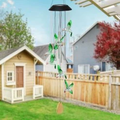 - Color changing wind chime adds music and charm to your garden