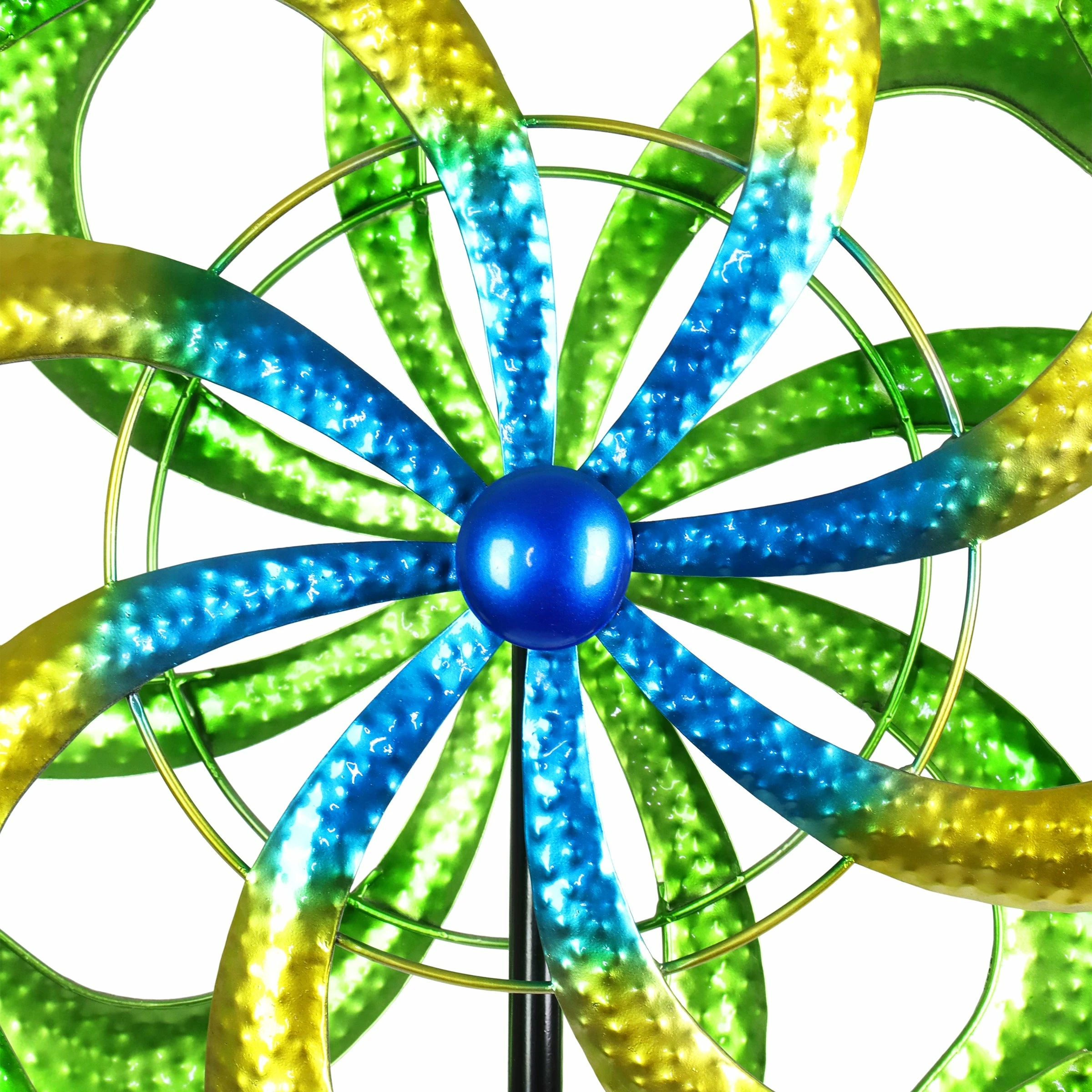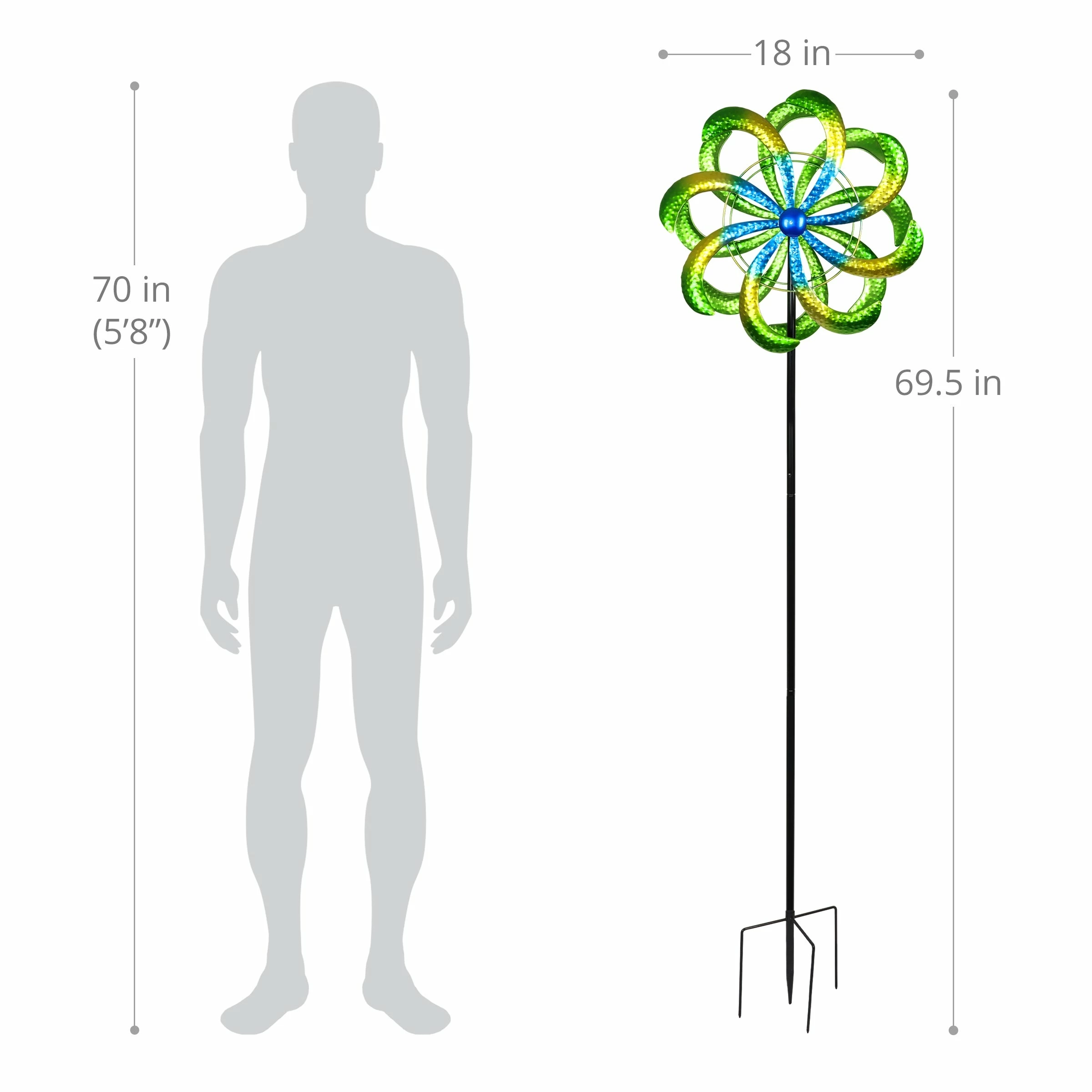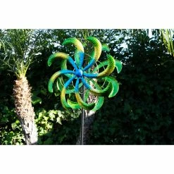 - Beautifully crafted spinning garden art adds color and motion to your garden