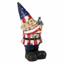 Dressed in his patriotic garb, this garden gnome is bursting with American pride! Battery powered LED light will illuminate his adorable blue bird. Makes a wonderful addition to any home or garden and a great gift.