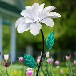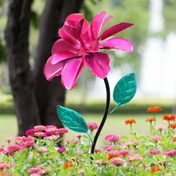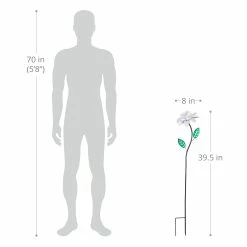 A single kinetic rose stake spins in the breeze, adding vibrant color, motion and life to your garden! Watch as a gentle breeze begins the movement of the beautifully hand-painted metallic rose. This stake makes a wonderful addition to your home and a great gift for the garden enthusiast.