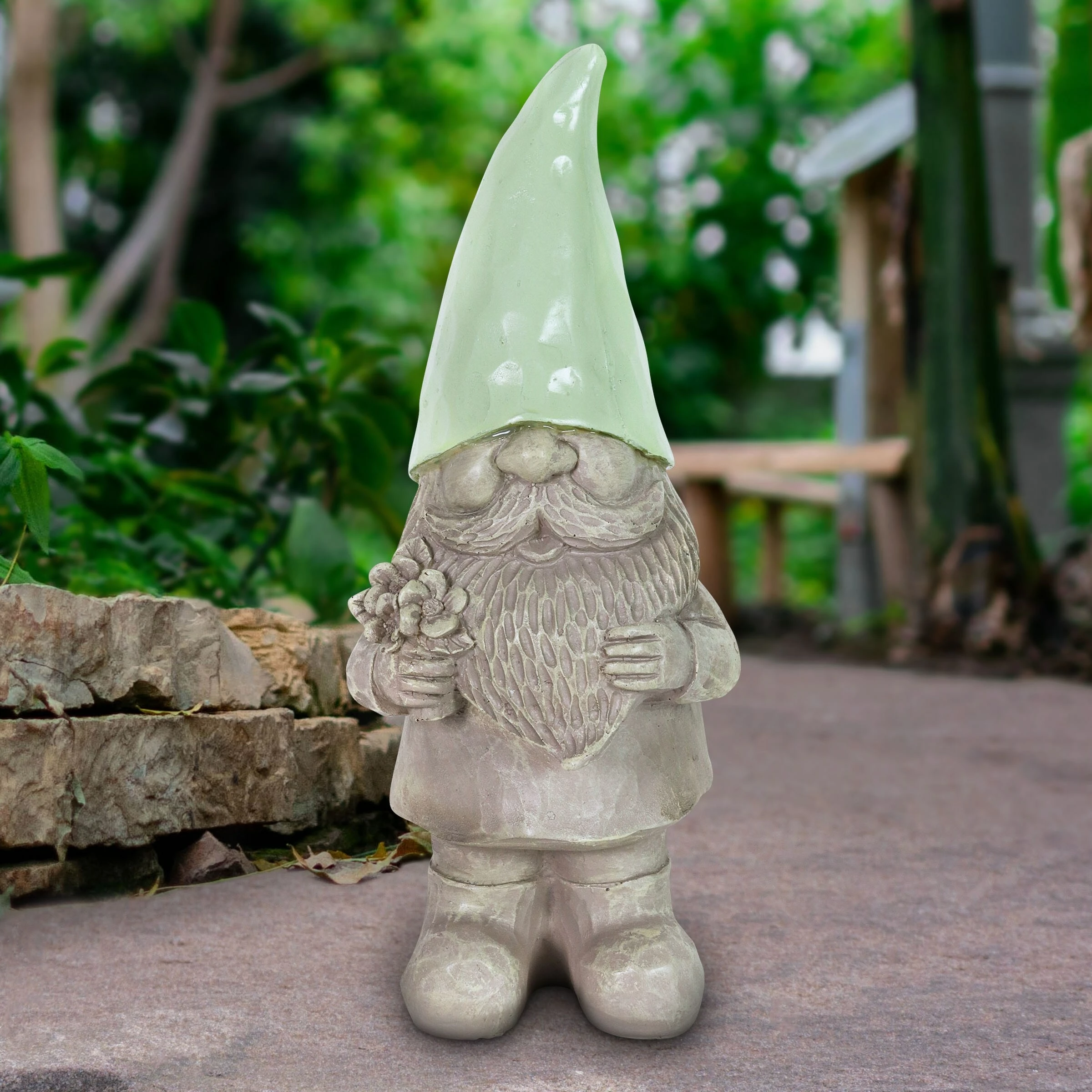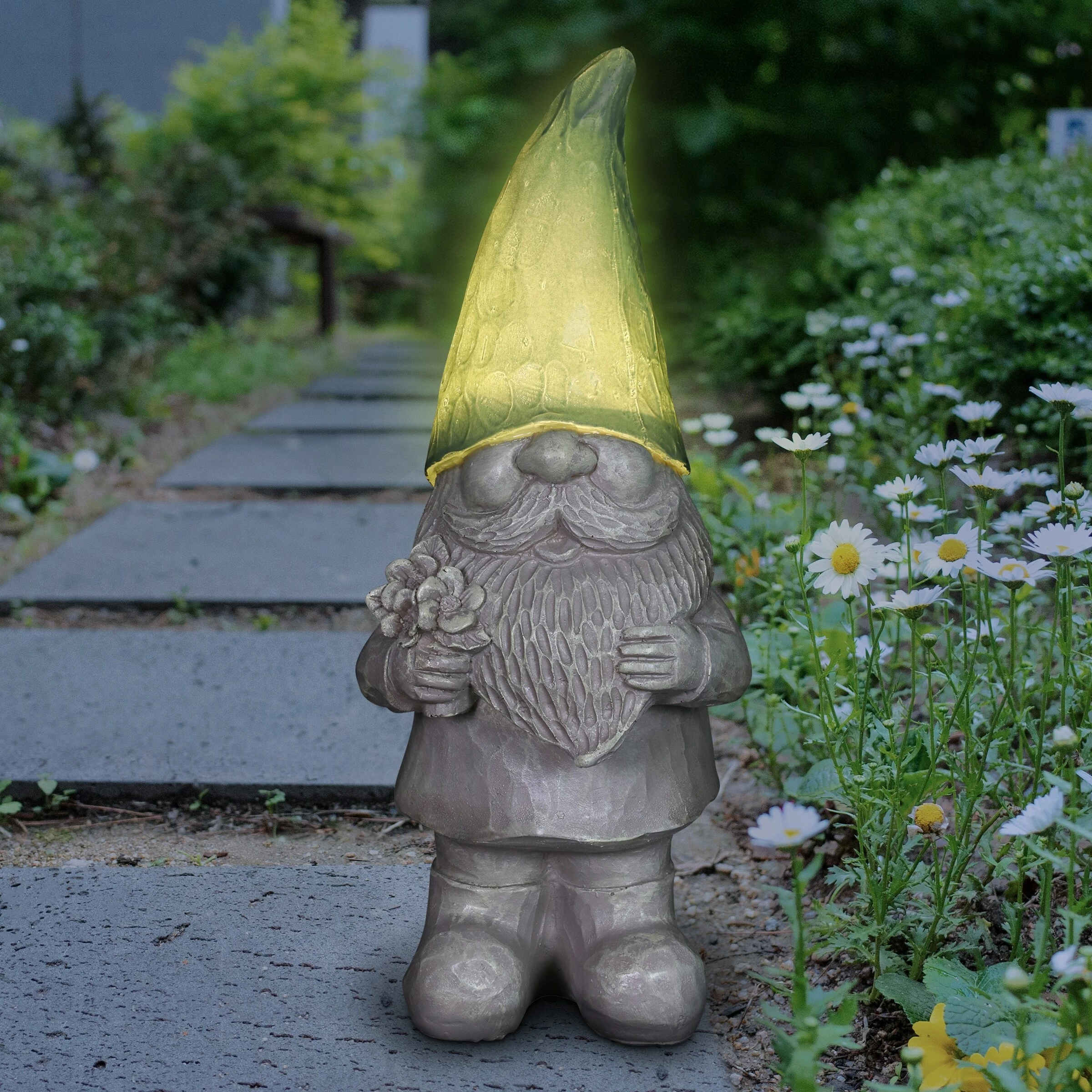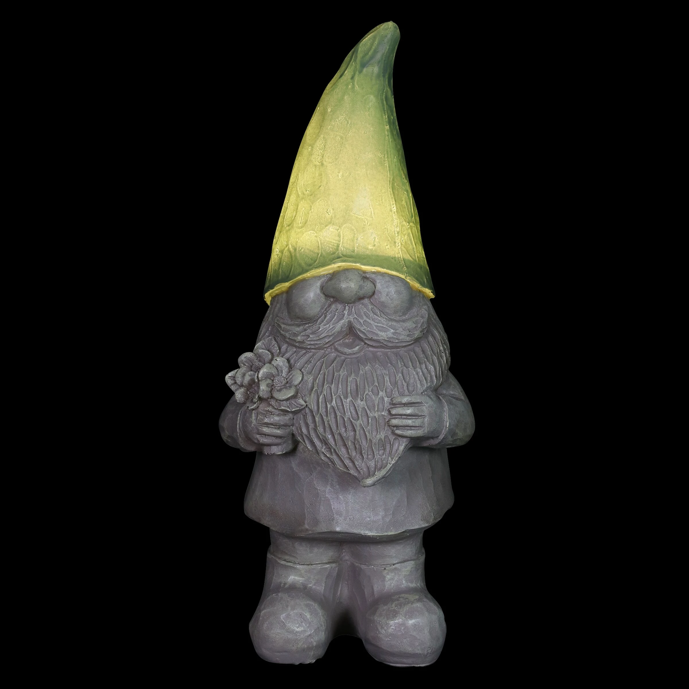 What’s not to smile about? This adorable Happy Hat Gnome wears a solar powered pastel colored gnome hat that illuminates automatically at dusk! Add a little whimsy and a touch of magical charm to your garden with a Happy Hat Gnome.