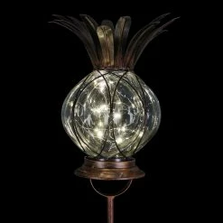 Illuminating Solar Pineapple Light can be used as either an elegant Garden Stake or Beautiful Table Top Lantern. A string of 12 LED firefly lights automatically illuminate at dusk, adding a touch of sparkle and magic to your home. The classic pineapple design is a longtime symbol of hospitality, making it a wonderful addition to your garden dΓ©cor.