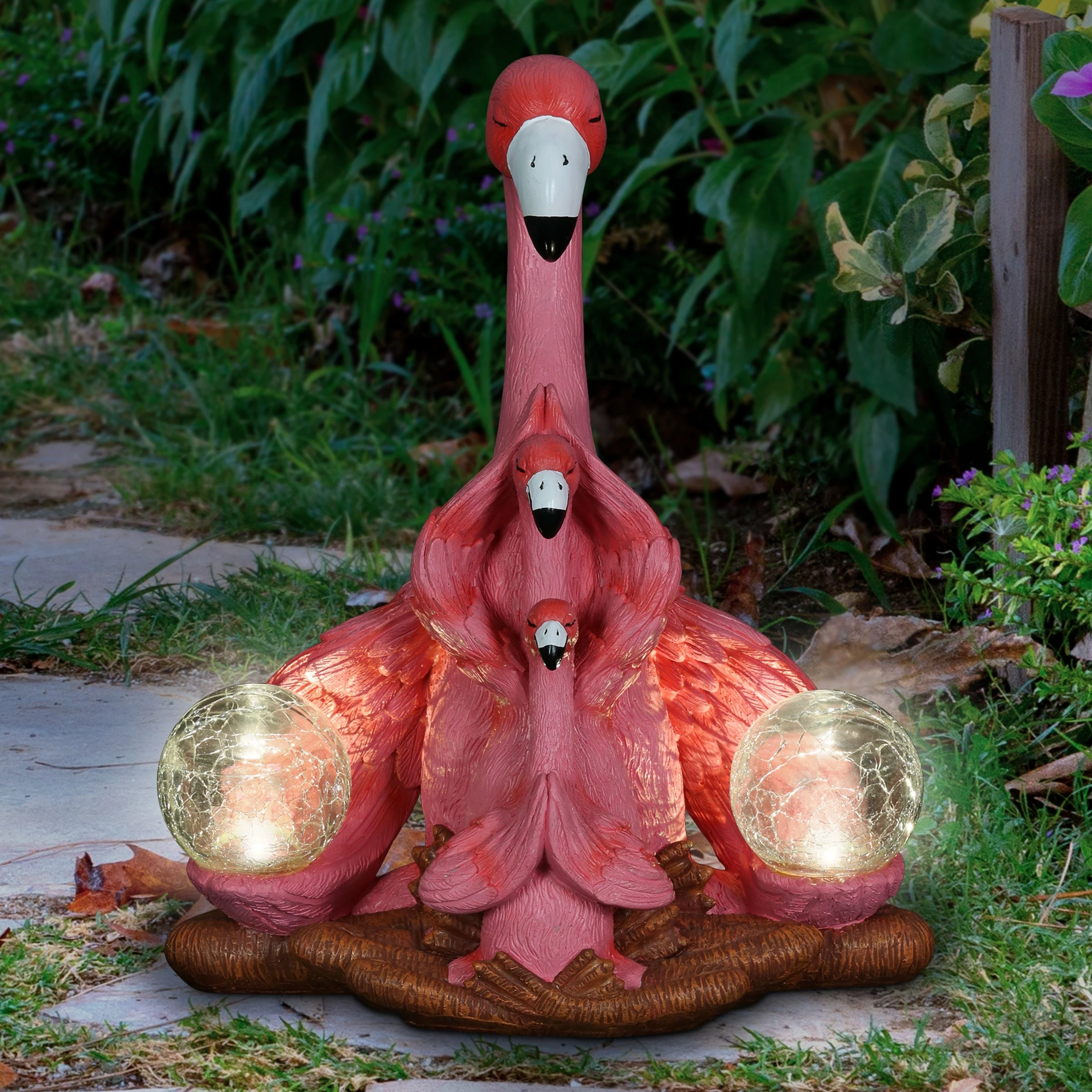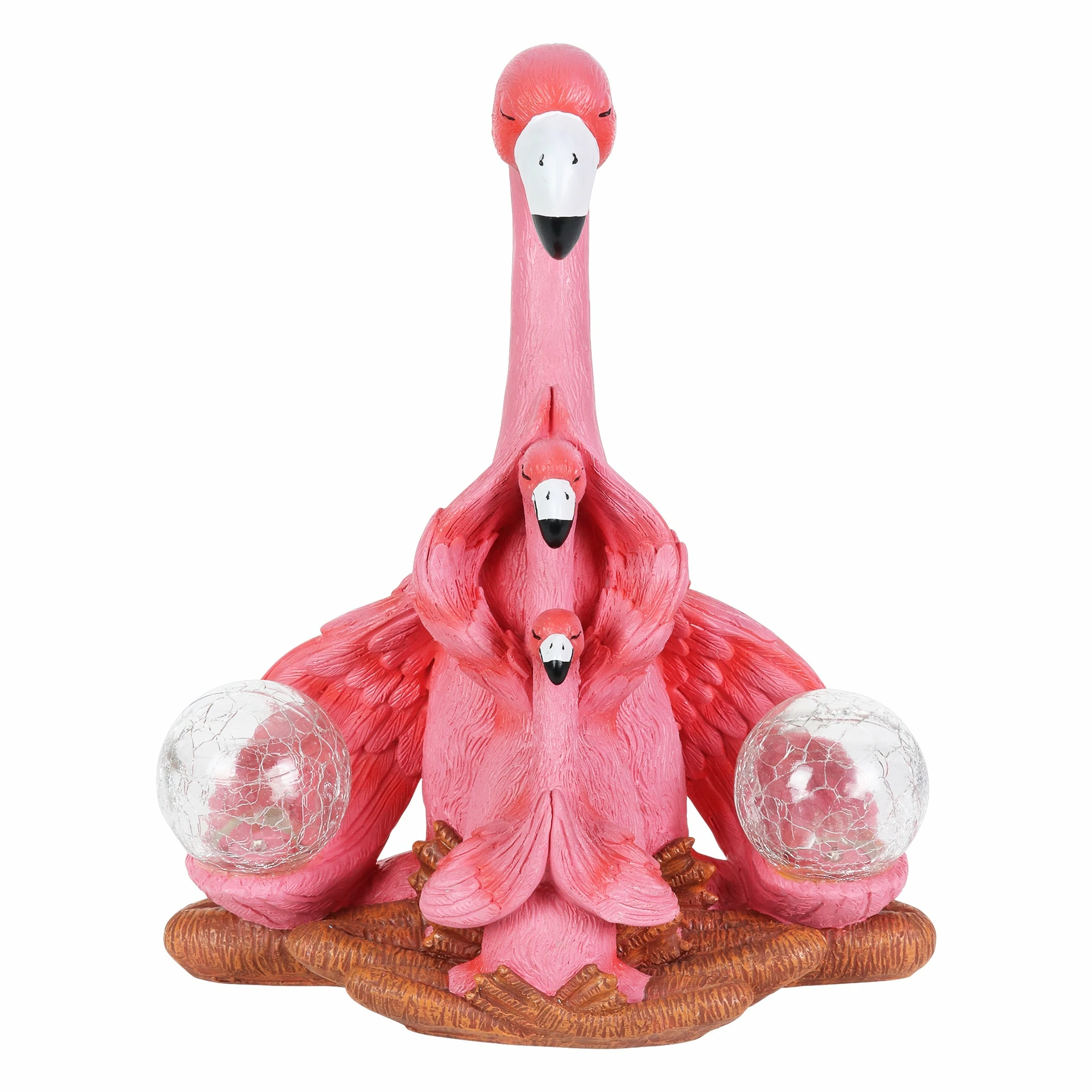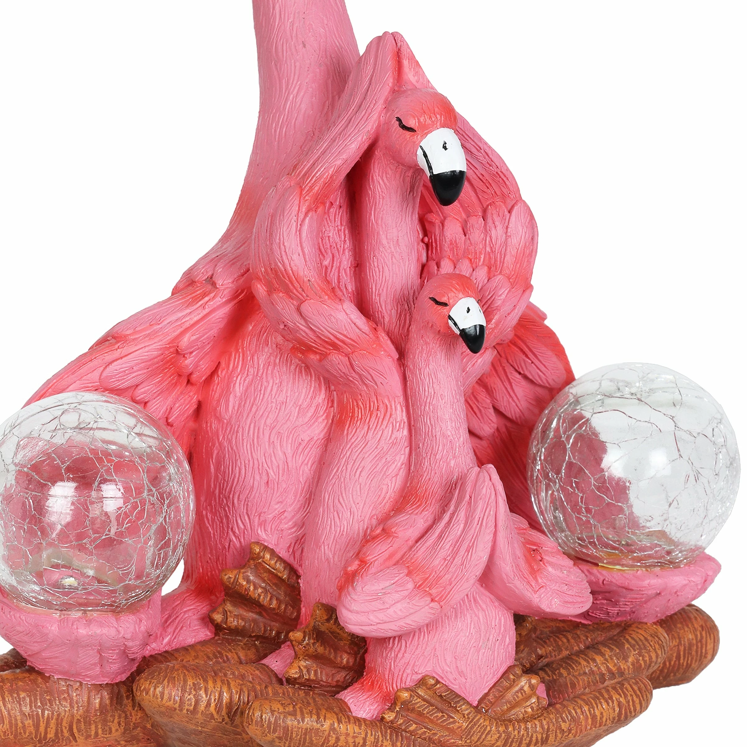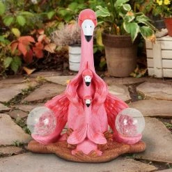 Seeking enlightenment? Get your zen on with these illuminating Solar Meditating Garden Flamingos. As the sun sets and dusk settles in, the solar glass crackle balls will begin to glow! These pink flamingos are sitting in lotus position and are beautifully hand painted with great details! Make a wonderful gift for the animal lover, garden enthusiast and yogi alike.
