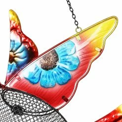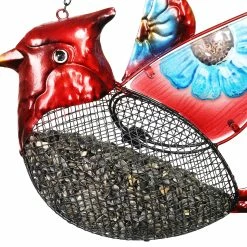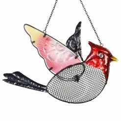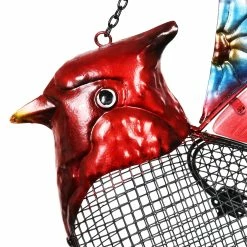 Create a welcoming space birds will love to visit with a beautiful hanging bird feeder! Birds will flock from near and far to feed from this colorfully hand-painted cardinal bird feeder. Feeder easily hangs from it’s chain anywhere you wish to place it: a patio, awning, tree branch, shepard’s hook and more. This piece is crafted in durable metal, painted in colorful metallic paint and UV treated to resist fading. It convenient metal mesh basket holds the visible birdseed as it welcomes your feathered friends to come enjoy a meal in your garden. Adds instant charm to your yard and makes a wonderful gift for the bird watching enthusiast!