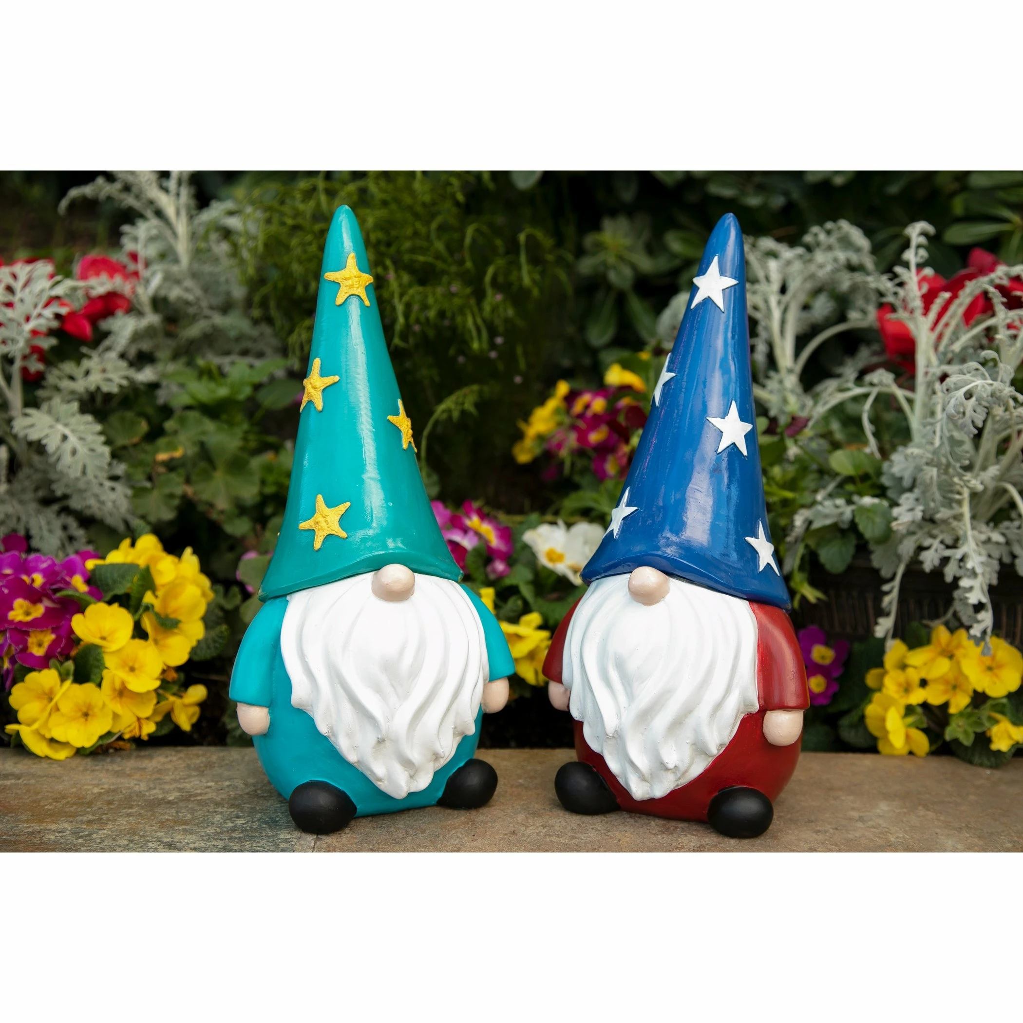 A hand painted illuminating patriotic gnome is a great way to display your American pride! This gnome’s LED hat has an automatic timer – set once to your desired hour and enjoy. Your gnome statue will automatically glow at the same time everyday. Guaranteed to add a little whimsy and a touch of Americana charm to your garden!
