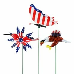 Display your American pride with these stunning Patriotic WindyWing Garden Stakes! These beautiful stakes feature hand painted details in striking red white and blue. They are designed to appear to take flight with just a gentle breeze, adding color, life and motion into your garden. Makes a wonderful gift idea too. Let your American spirit soar with Patriotic WindyWing Garden Stakes by Exhart.