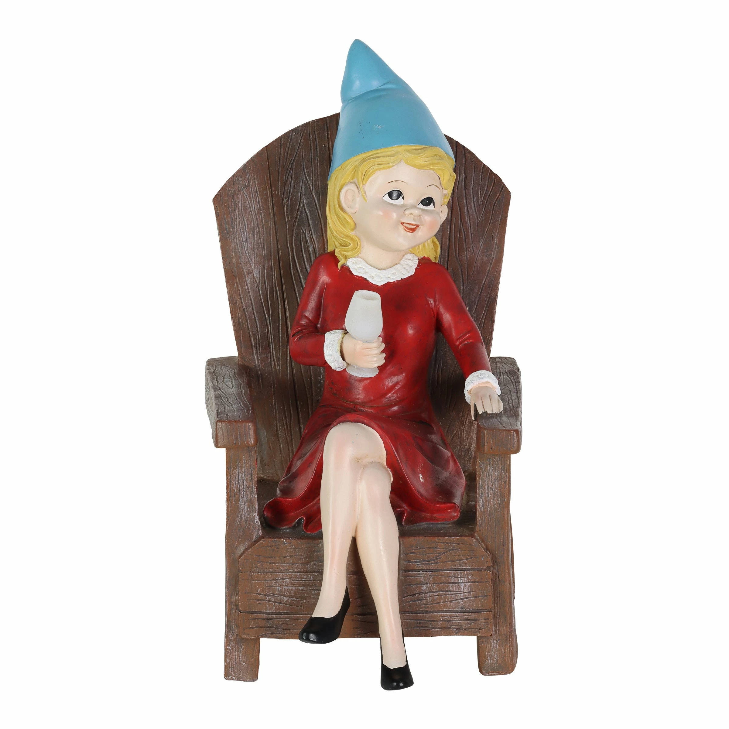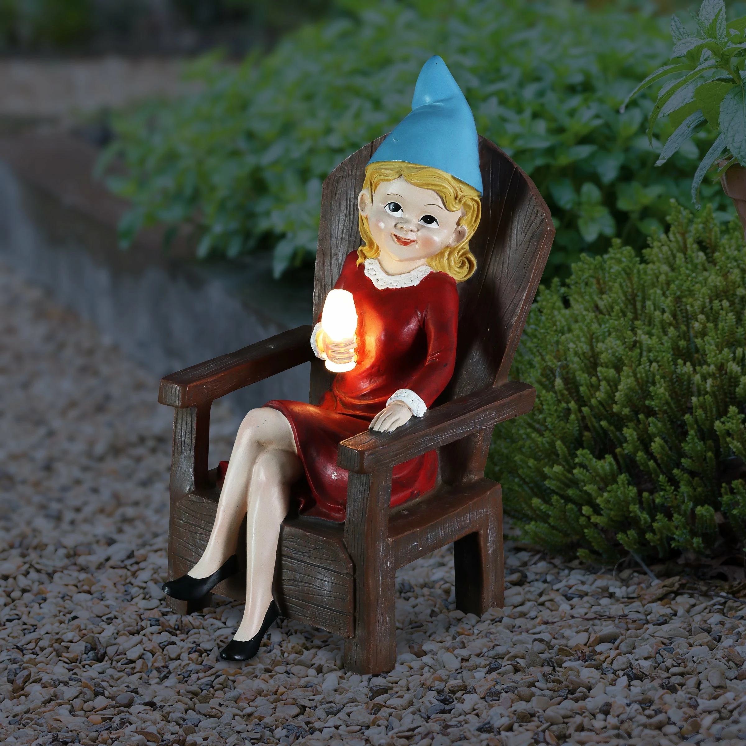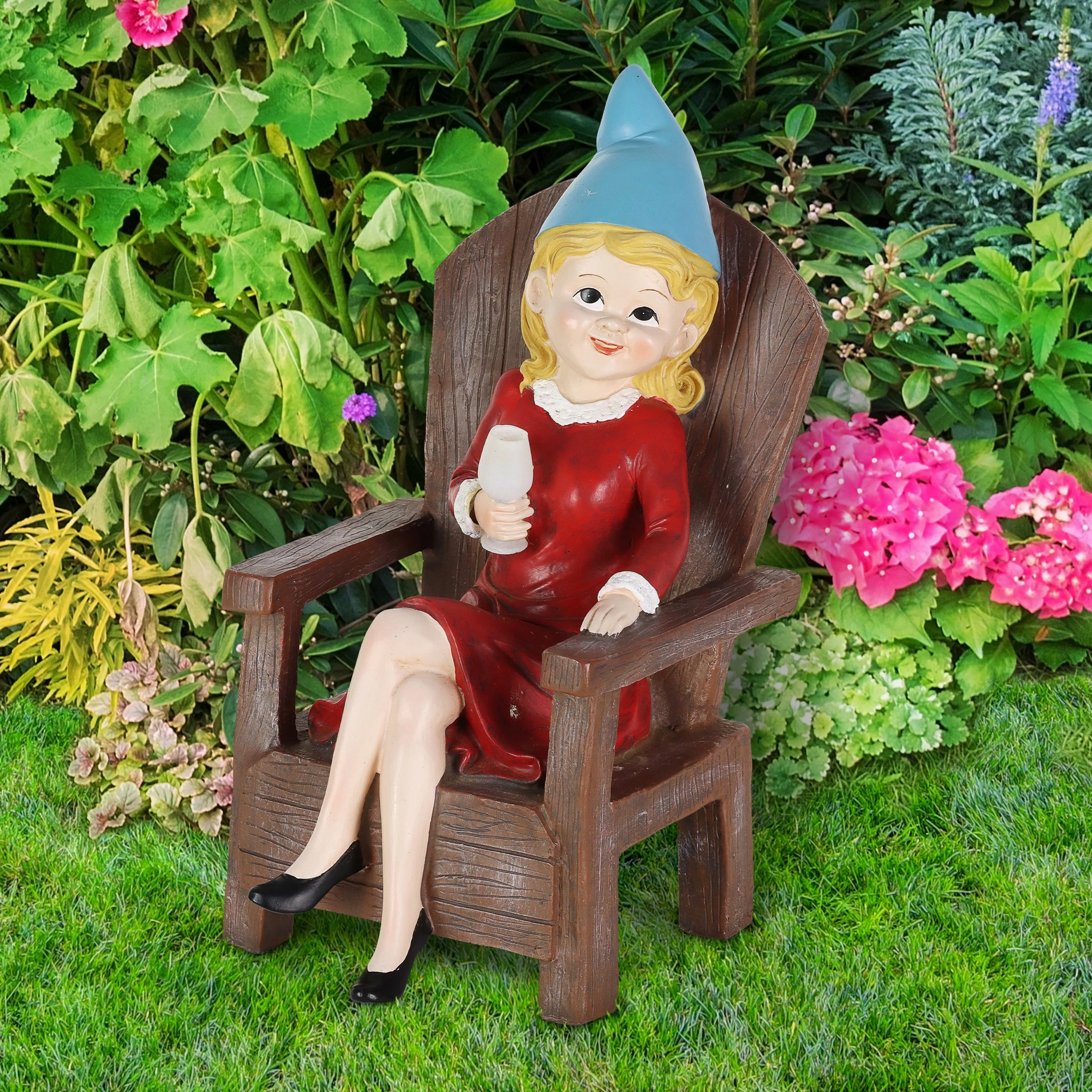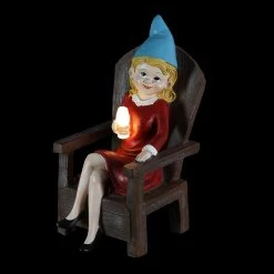 This adorable Solar Good Time Gal has pulled up a seat and poured herself a treat! This hand painted garden statuary is a reminder not to take life too seriously! As the sun sets and she sips on her favorite beverage, this adorable statue will automatically illuminate with solar powered LED light. Add a little touch of adult whimsy to your garden with Good Time Gnome statuary by Exhart.