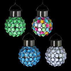 Adorn your garden with these colorful acrylic illuminating balls! Enjoy a beautiful decorative light at dusk as the Solar powered LEDs automatically glow from within each ball. Set comes with four ready to hang acrylic balls for your enjoyment.