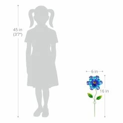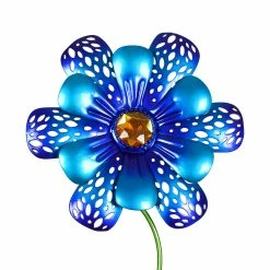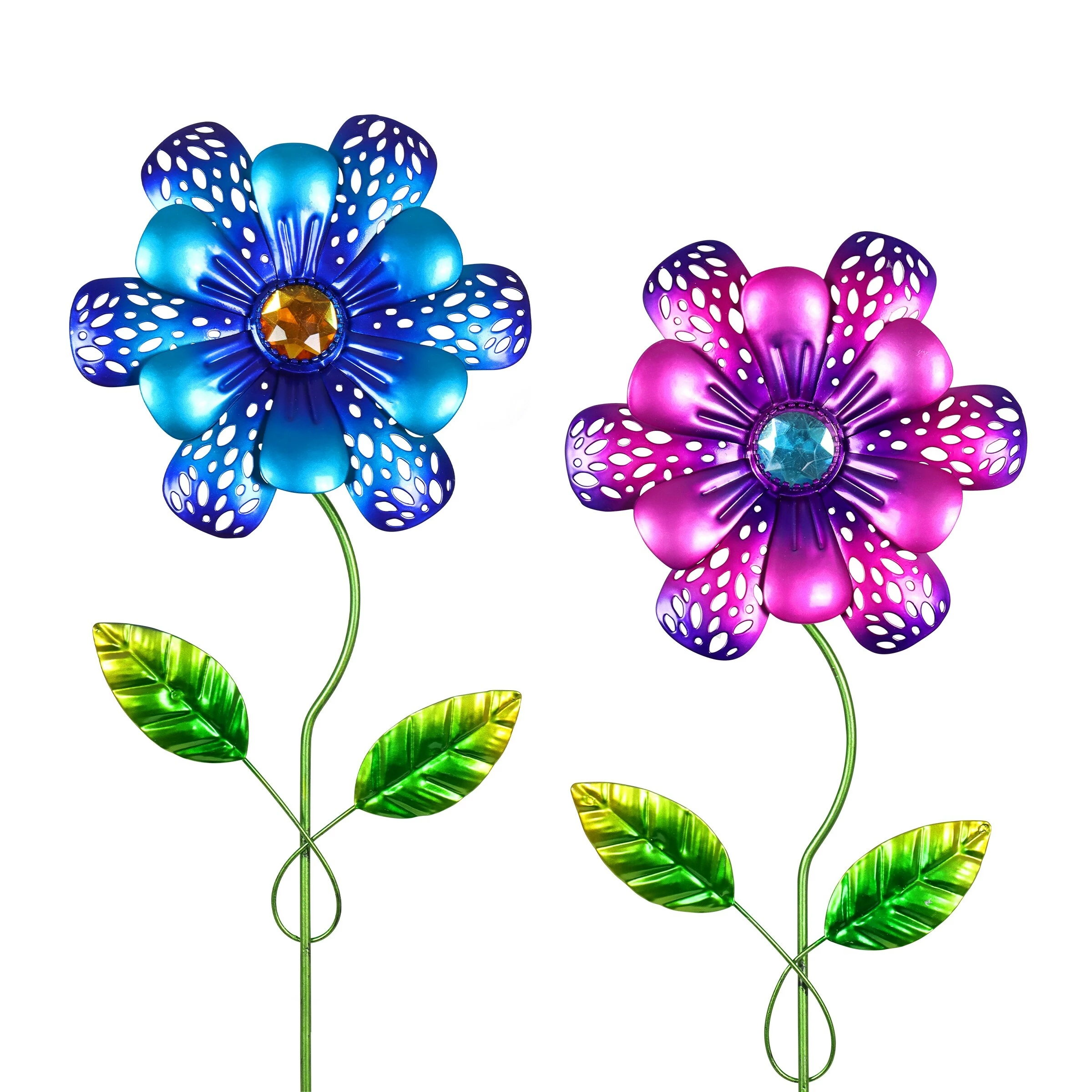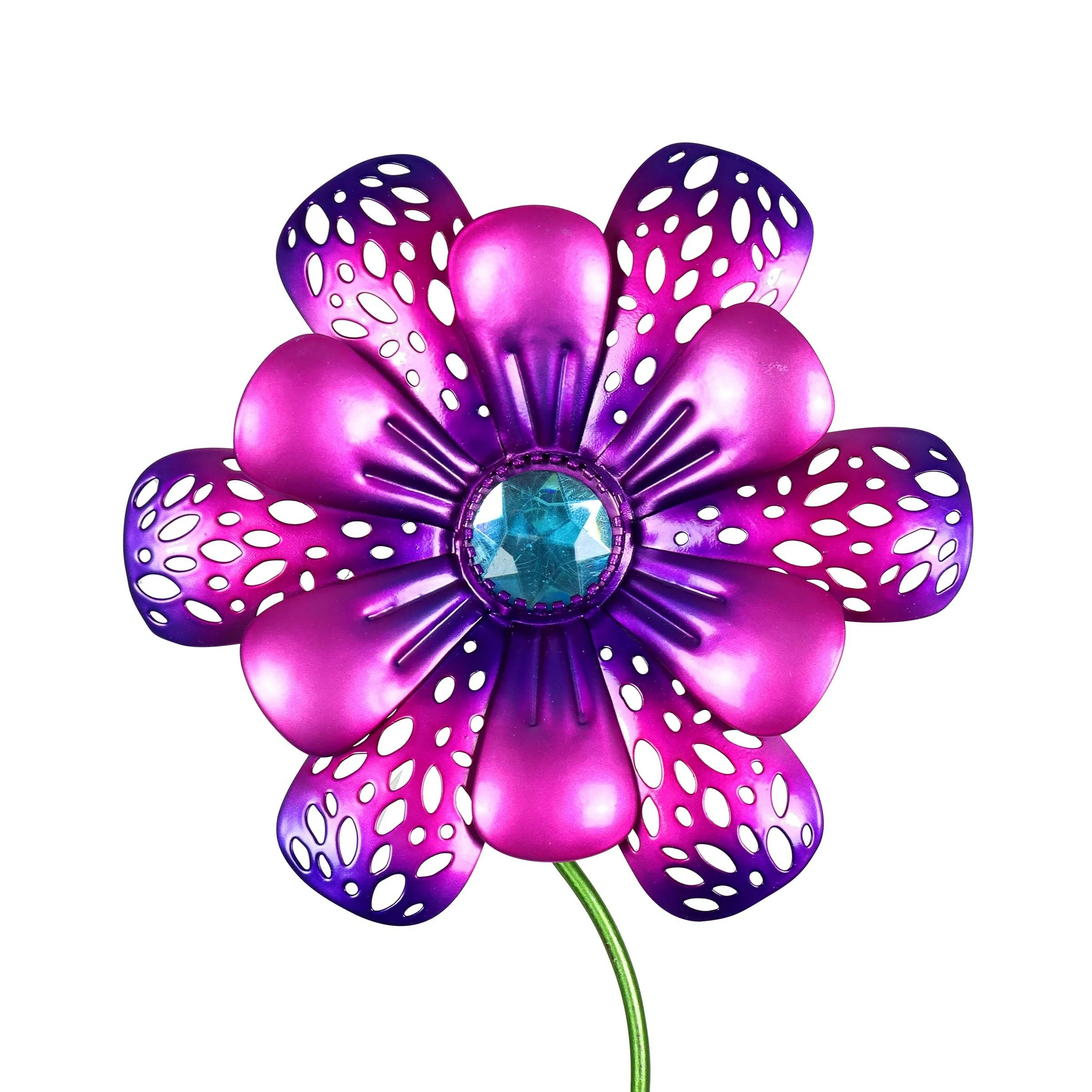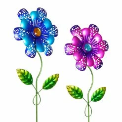 Add a burst of metallic color to your garden with these beautifully hand painted Metal Pansy Flower Garden Stakes. The metal is stamped with an elegant filigree pattern on alternating leaves and features meticulously hand painted petals in shades of blue and pink with a green leafy stem. Makes a wonderful gift that is guaranteed to make a garden smile!