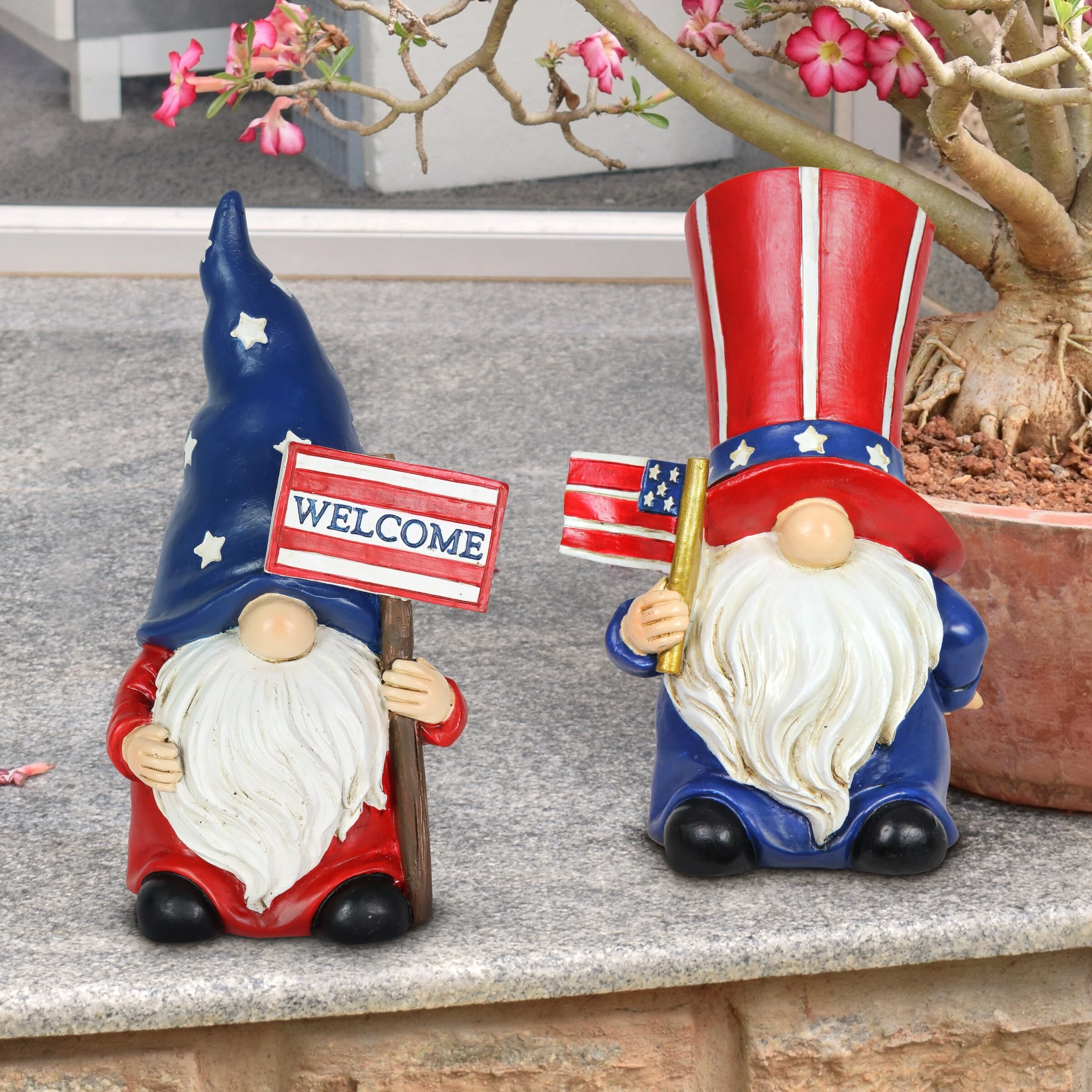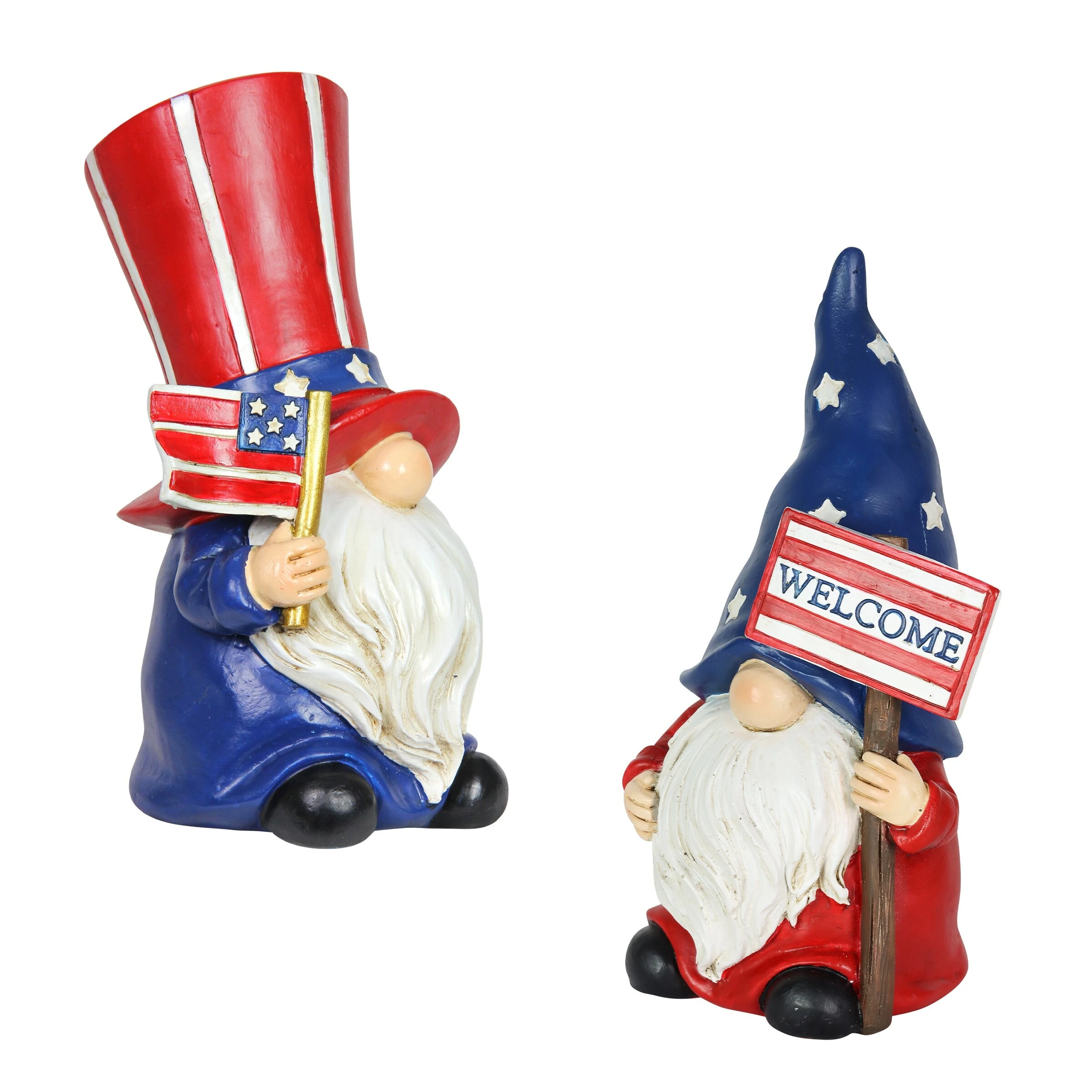 Patriotic Gnomes are a great way to display your American pride! With beautifully hand painted details in red white and blue, these gnomes are guaranteed to add a little whimsy and a touch of charm to any garden. Simply place your gnomes anywhere in your home or yard for instant fun and enjoy for years to come!