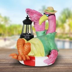 Exhart’s illuminating funky flamingo statue adds a fun and tropical touch to your garden. Watch as the solar LED light automatically glows from within his lantern at dusk. Makes a charming addition to your dΓ©cor.
