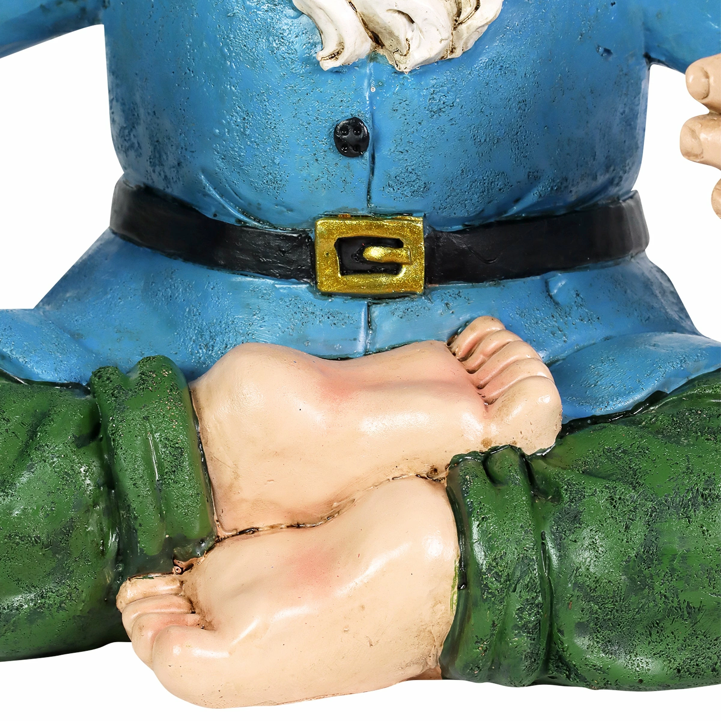 Some gnomes meditate better with a drink or two in hand! Lets not judge this adorable two drink holding garden gnome statue. Notice the relaxed expression on his hand painted face as he sits comfortably in the lotus position. This whimsical garden dΓ©cor adds a sense of humor and fun to any home or garden and makes a great gift for gnome lover in your life!