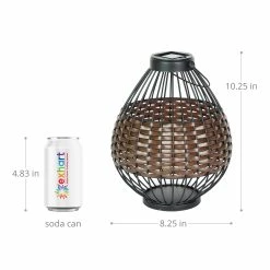 Add a charming glow to any outdoor space with this stylish Solar Metal and Rattan lantern. Wrapped with an elegant dark brown weave design, this metal lantern exudes elegance and will complement your existing outdoor decor! The solar LED light will charge during the day and automatically illuminate at dusk from within, providing a perfect accent light to your space. Makes a wonderful addition to your patio, yard or garden and an impressive gift idea too!