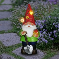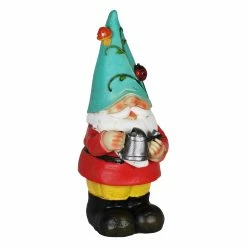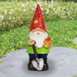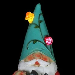 Illuminating Floral Hat Garden Gnome adds color and light to your garden! With his Solar powered LED, he’ll automatically glow at dusk, spreading his lighthearted warmth and joy. Beautifully hand painted and weather resistant, this garden gnome makes a perfect gift for the nature lover!