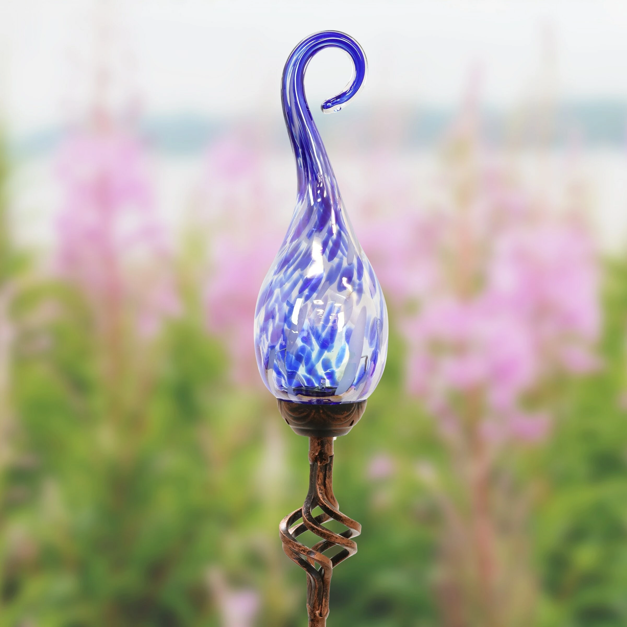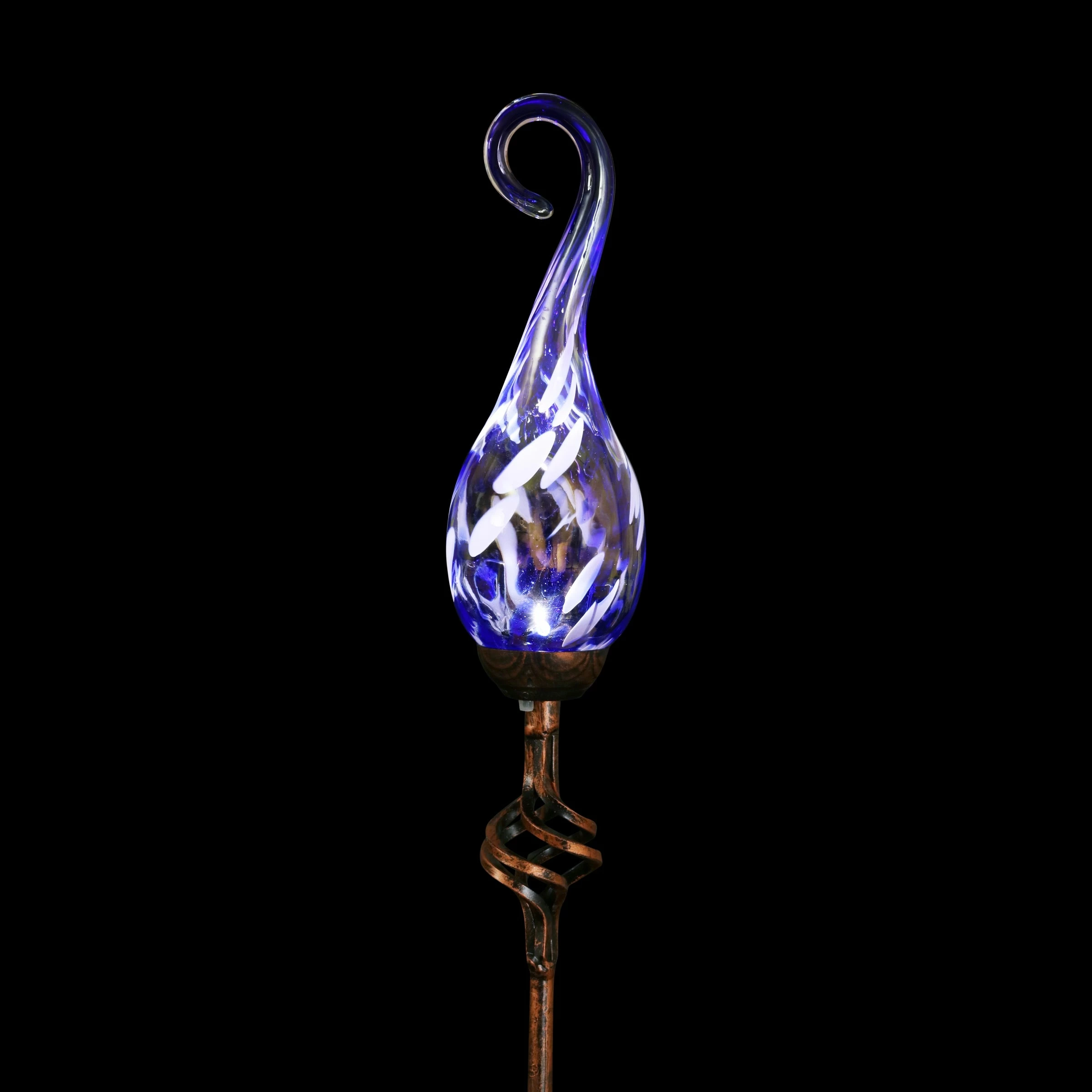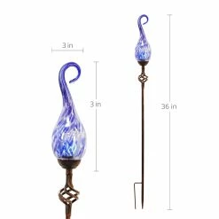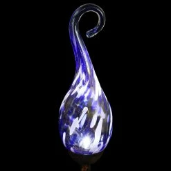 Add a touch of color and light to your garden with an elegant Solar Pearlized Glass Spiral Flame Garden Stake. A Solar powered LED will automatically illuminate the glass every evening adding a beautiful glow to your garden. Β A perfect addition to your landscape! Exhart hand blown glass pieces are one-of-a-kind and present with slight color variations.