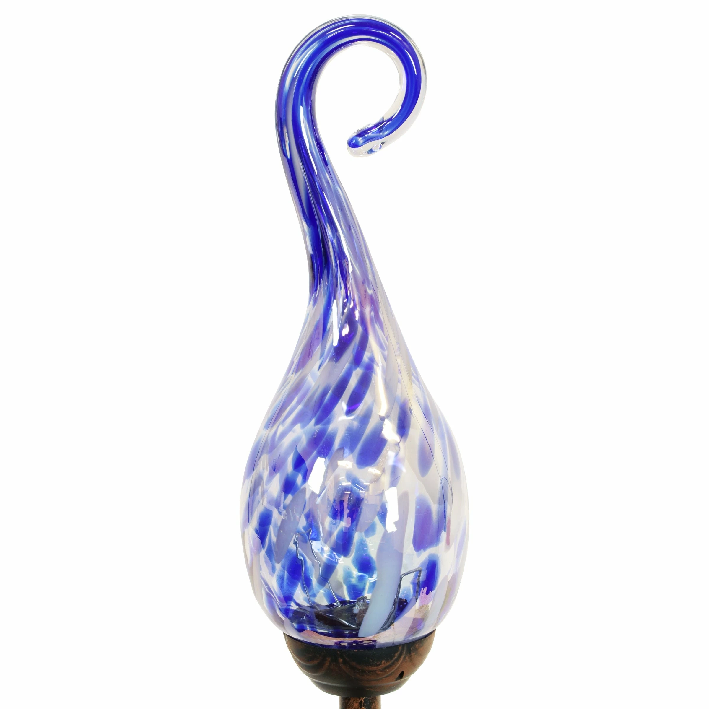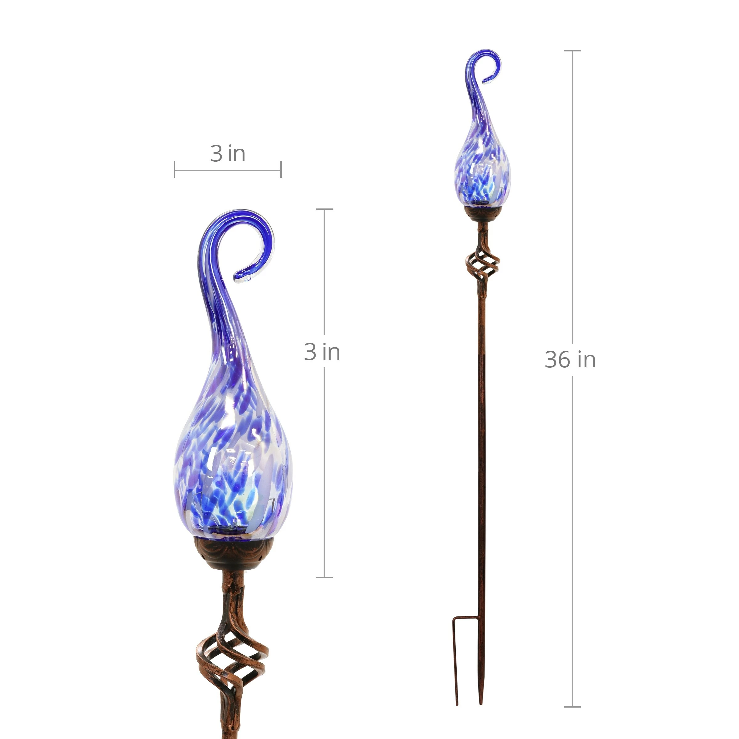 - Glass flame stands 9 inches without the stake