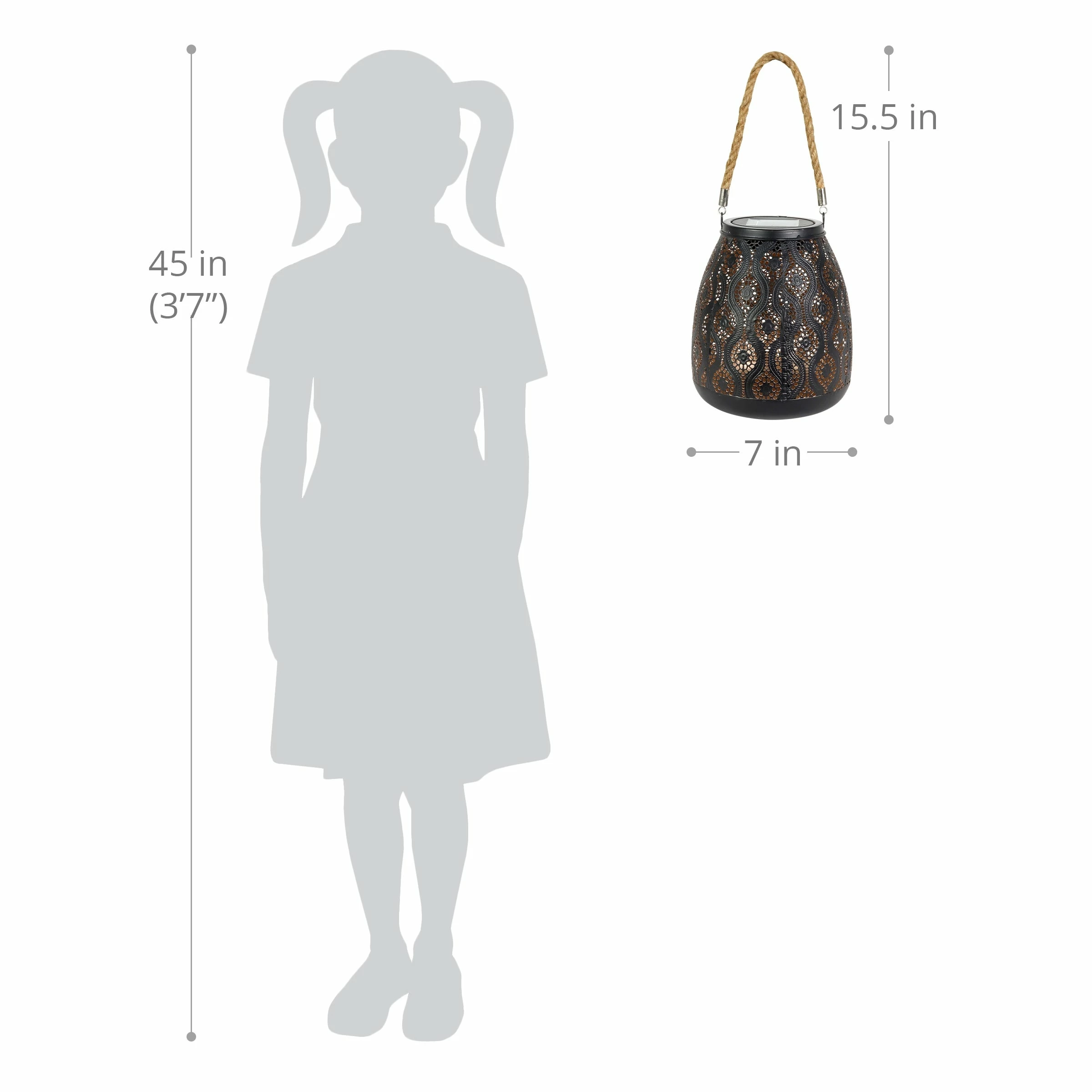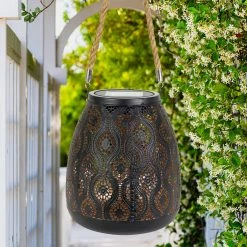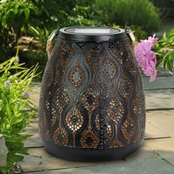 Radiate style in your home or garden with this exquisite hanging metal filigree lantern! As the LED light shines through the stunning filigree pattern, a glow is cast, and your ambiance is transformed. Instantly adds a touch of style and light to your home!