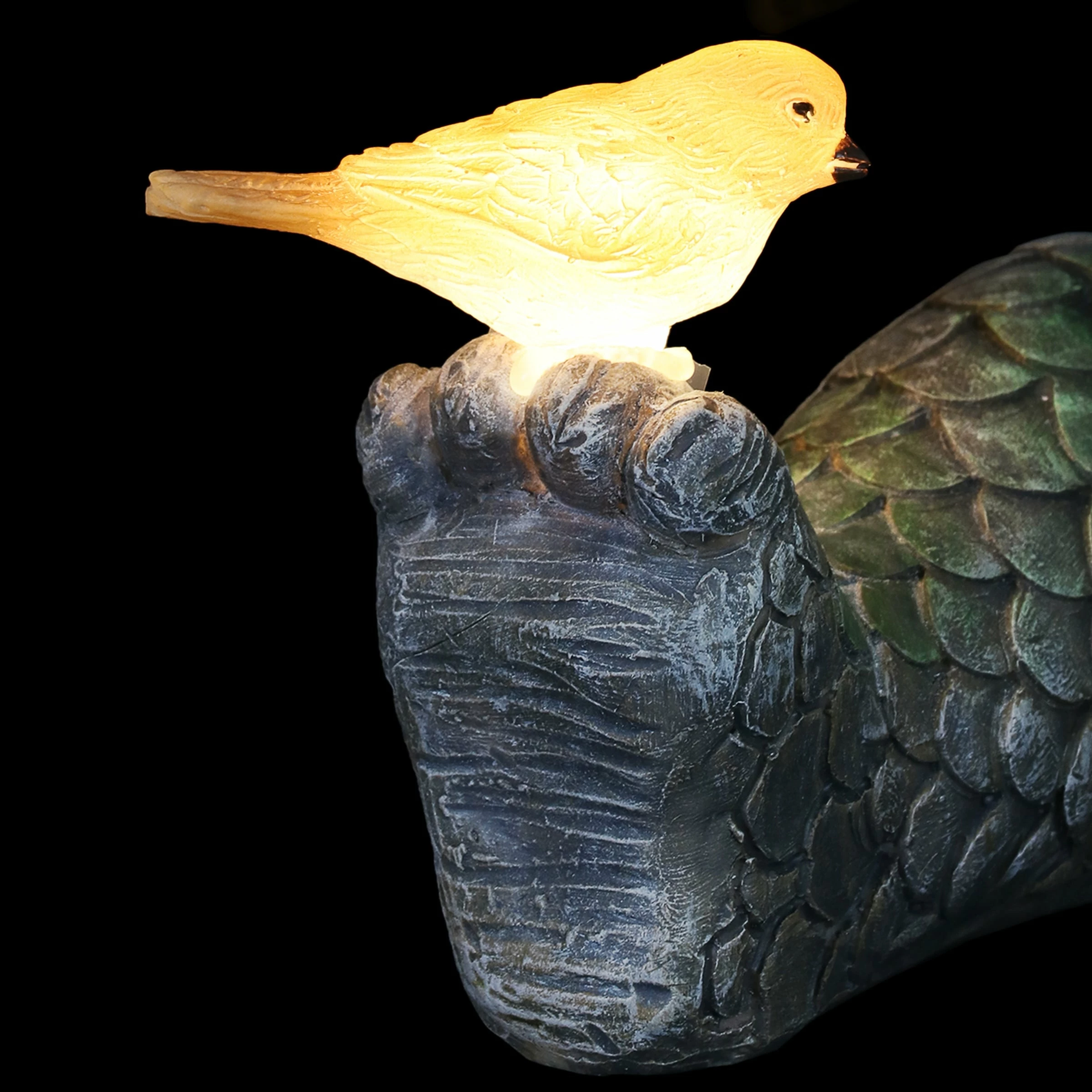- Solar powered LED bird automatically glows at dusk for an enchanting light!