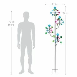 Beautiful four tiered spinning garden art adds a burst of color and life to your garden. Each branch is designed with hand painted metal cups that catch the wind and spin with delight! This spinning stake is a delight for the senses, a true work of art you will enjoy for years to come!