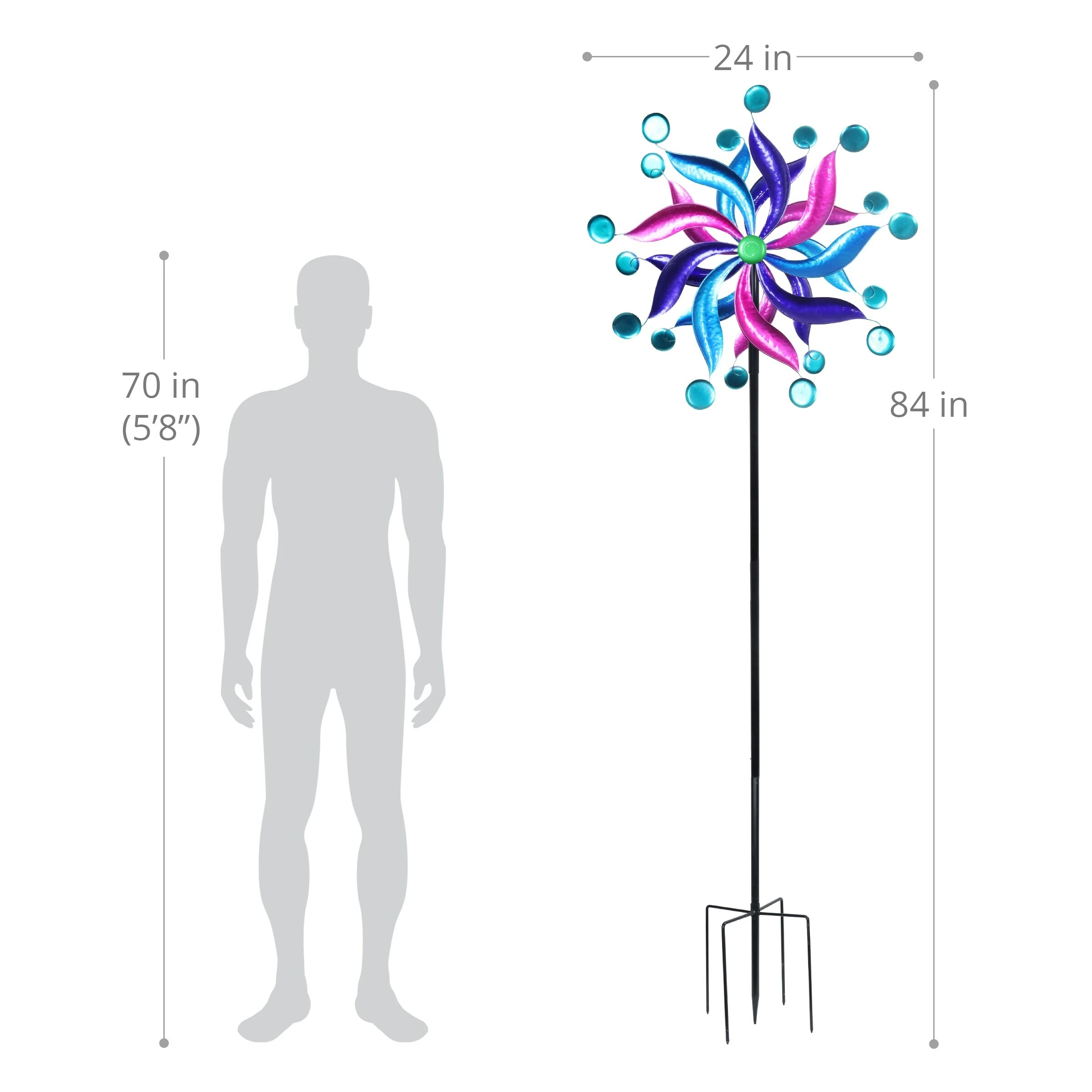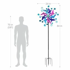 - Beautifully crafted spinning garden art adds color and motion to your garden