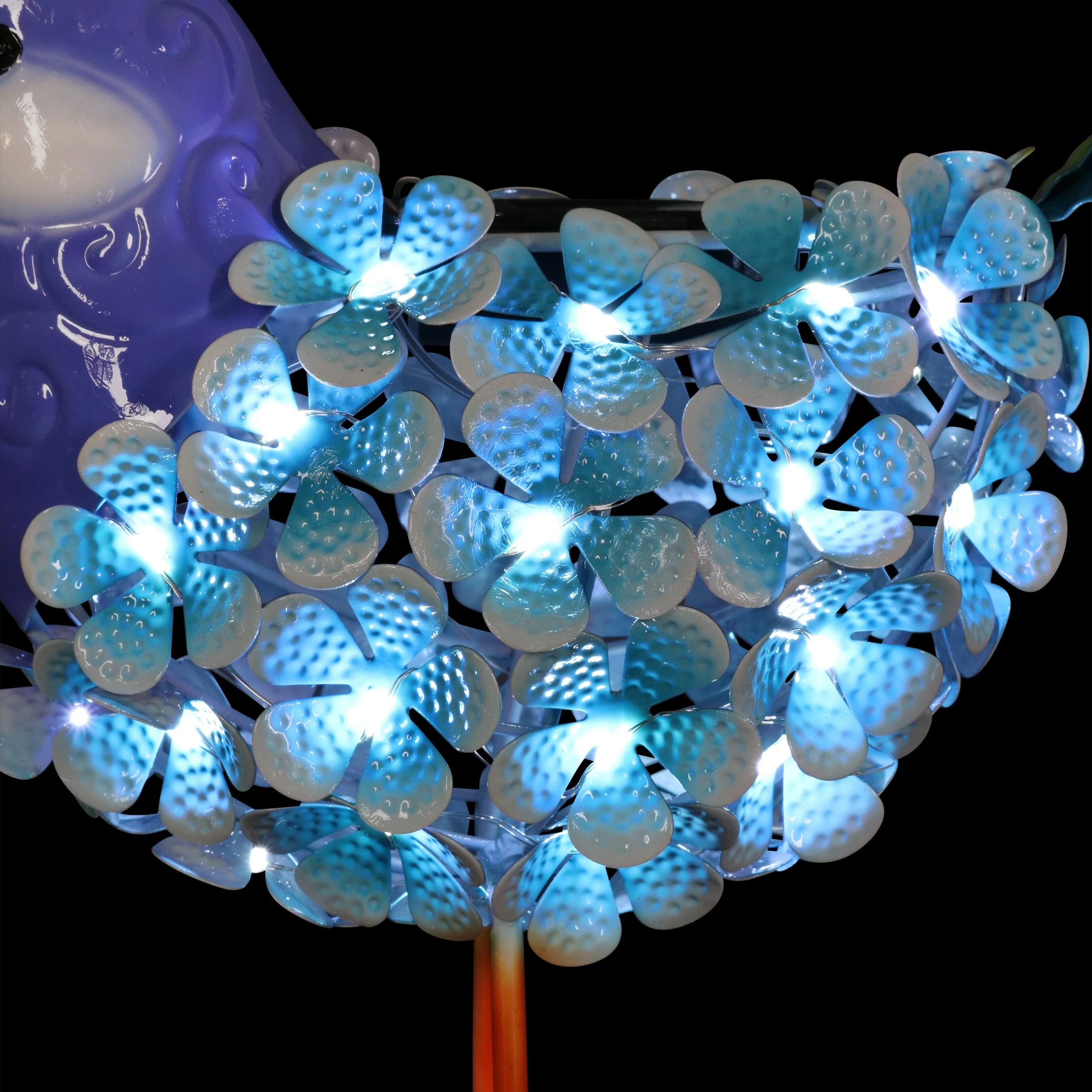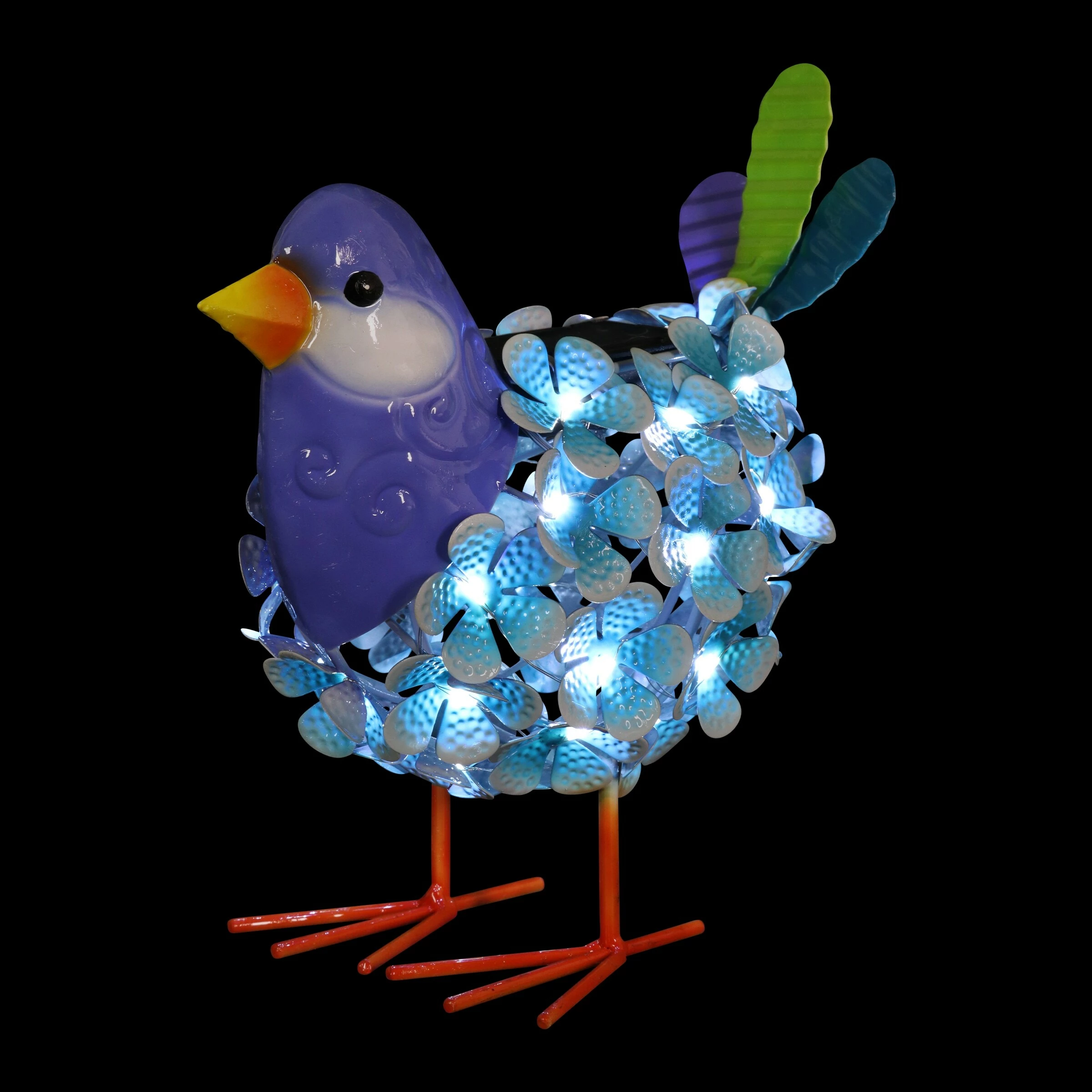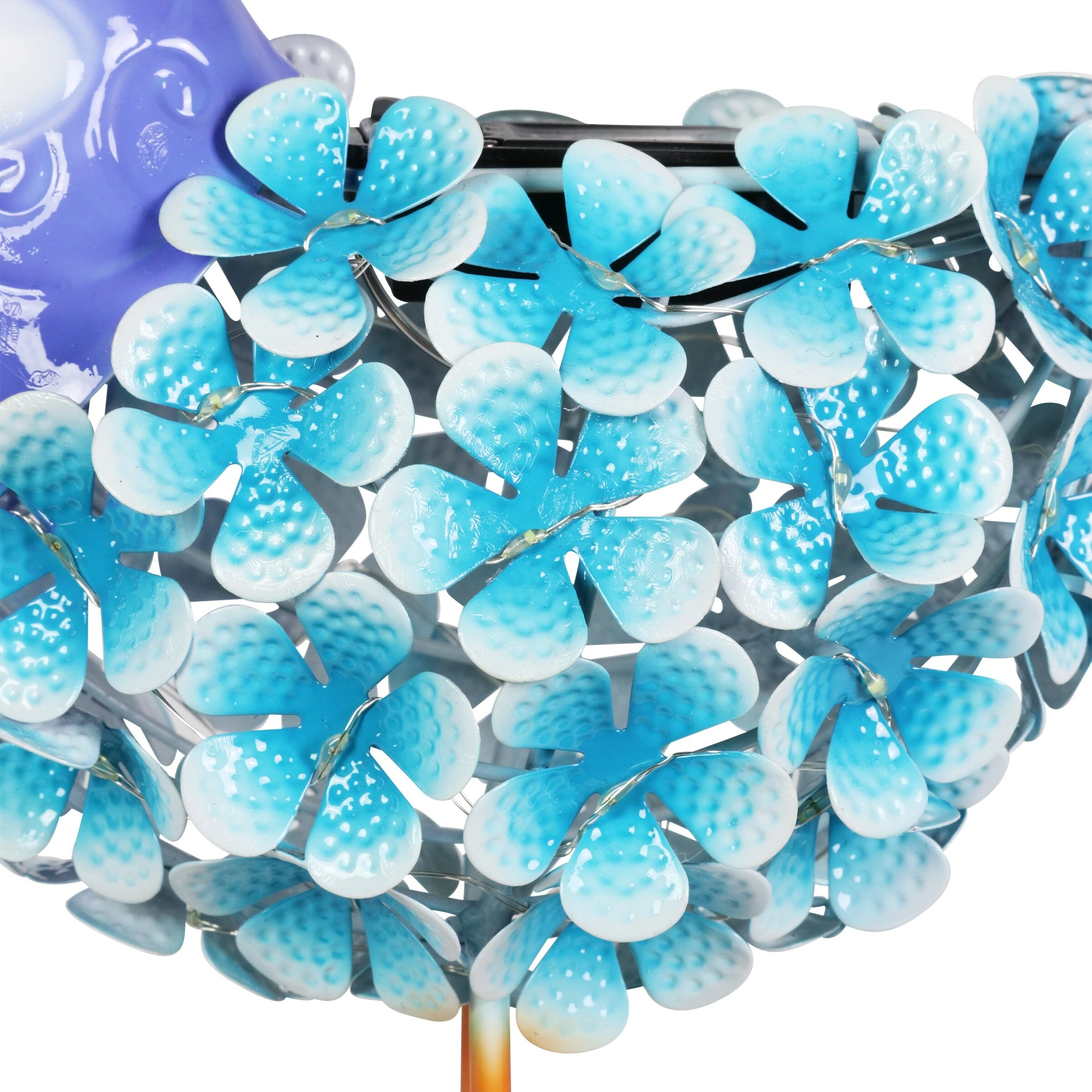 An illuminating solar blue bird statue adds charm and warmth to any garden! The metal body is constructed from hand painted flowers interspersed with 38 LED lights that will automatically glow at dusk! This adorable garden statuary makes a wonderful addition to any yard and a fabulous gift idea too.