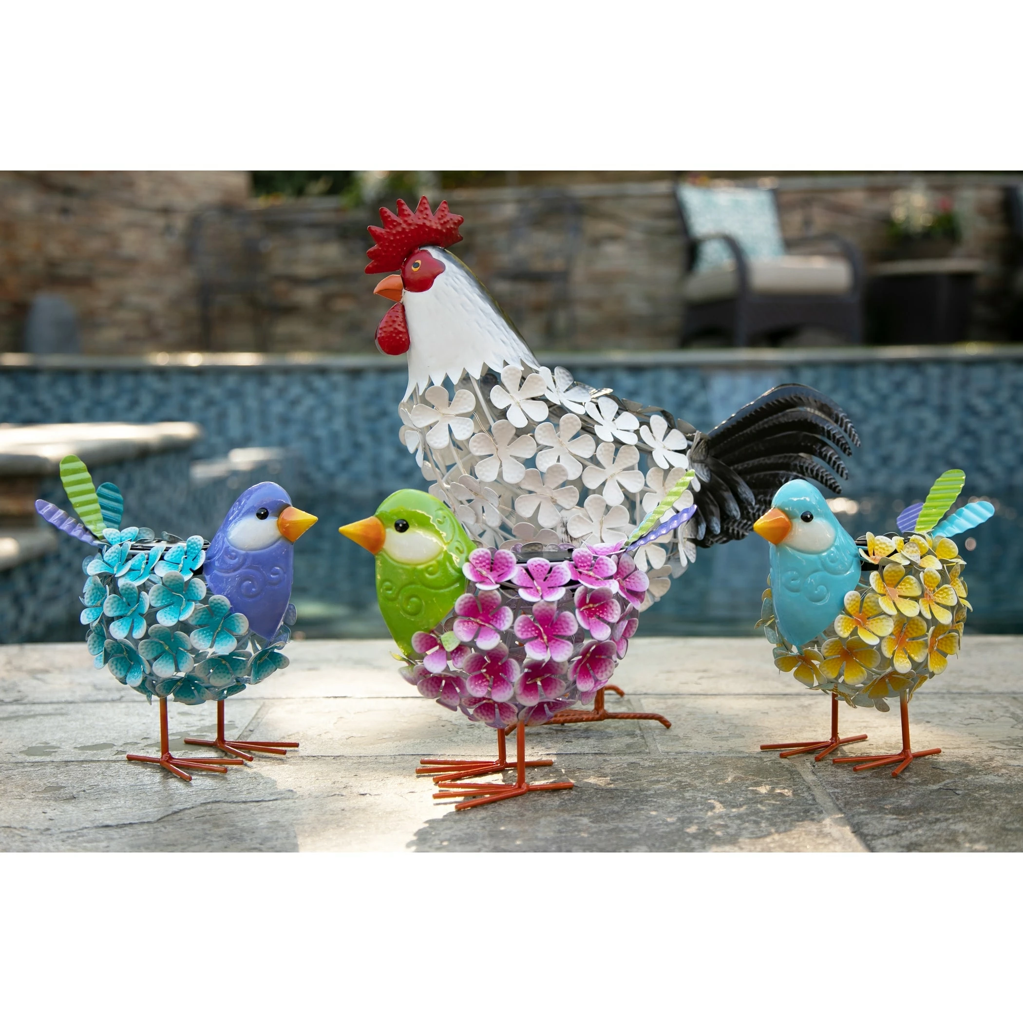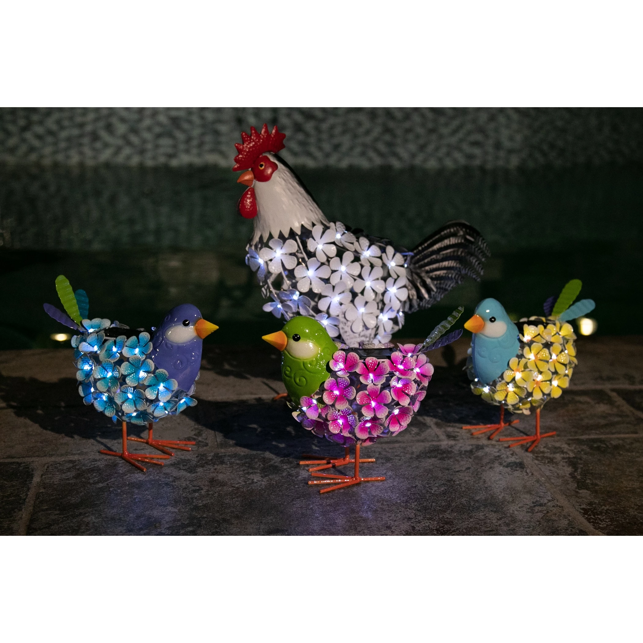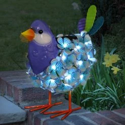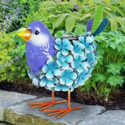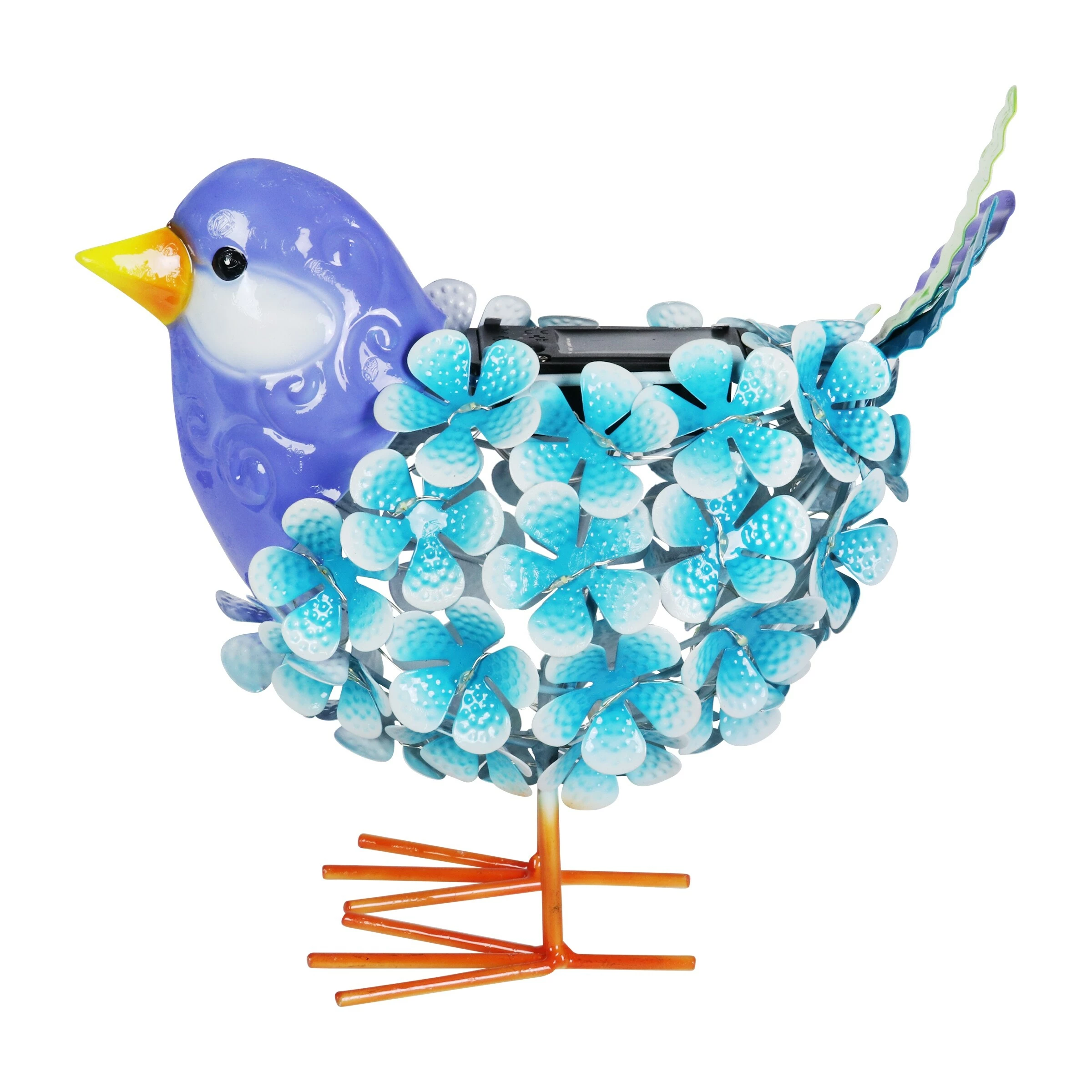 An illuminating solar blue bird statue adds charm and warmth to any garden! The metal body is constructed from hand painted flowers interspersed with 38 LED lights that will automatically glow at dusk! This adorable garden statuary makes a wonderful addition to any yard and a fabulous gift idea too.